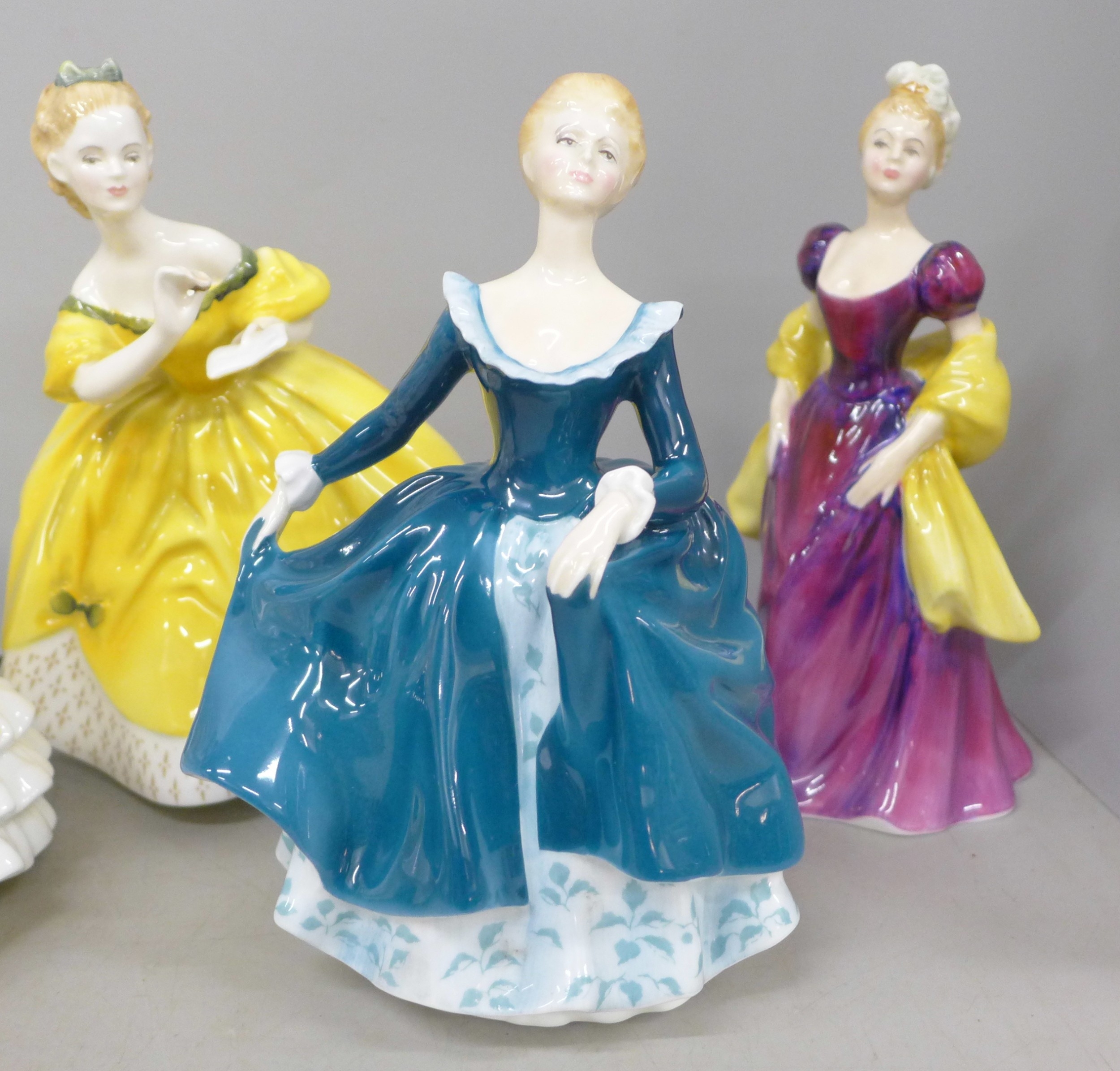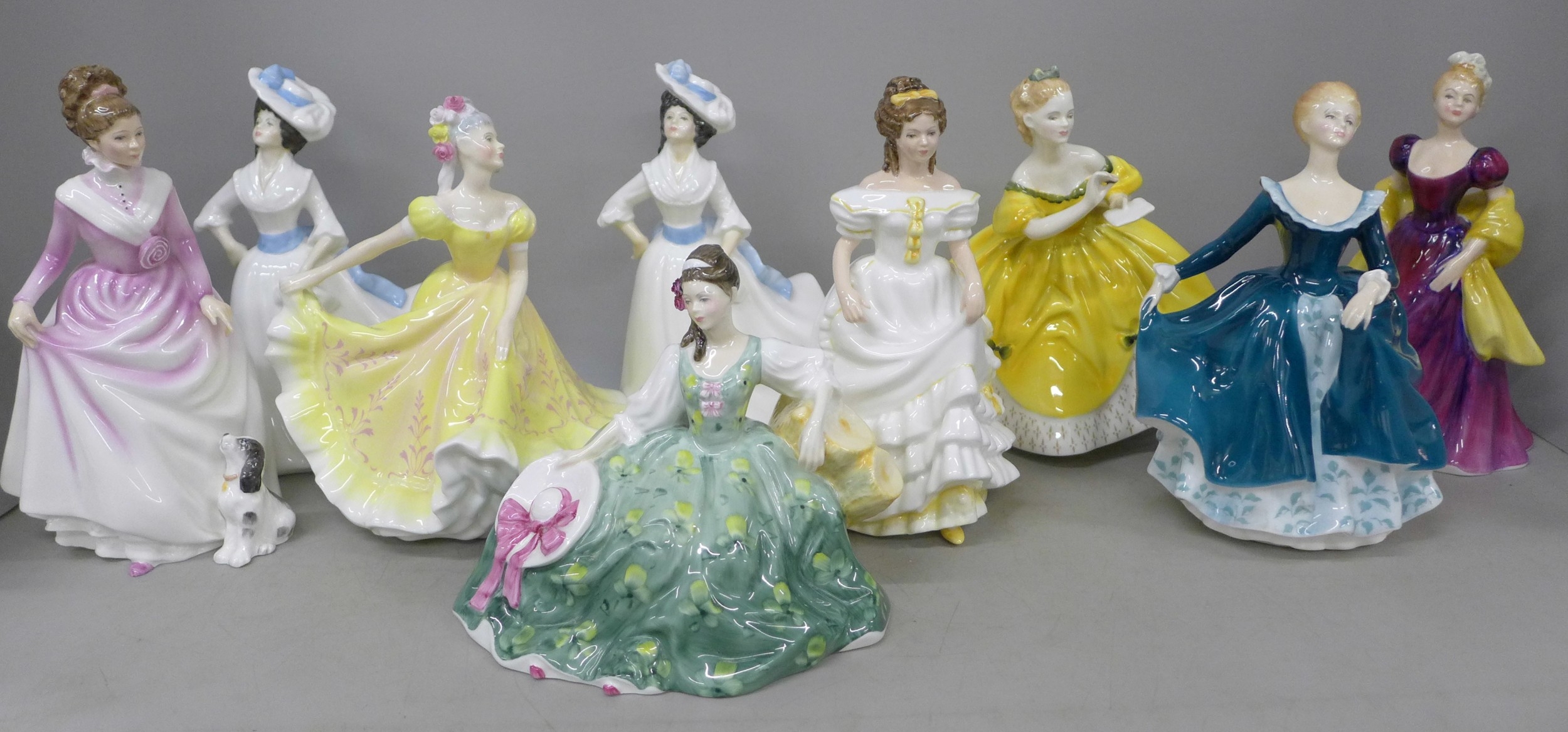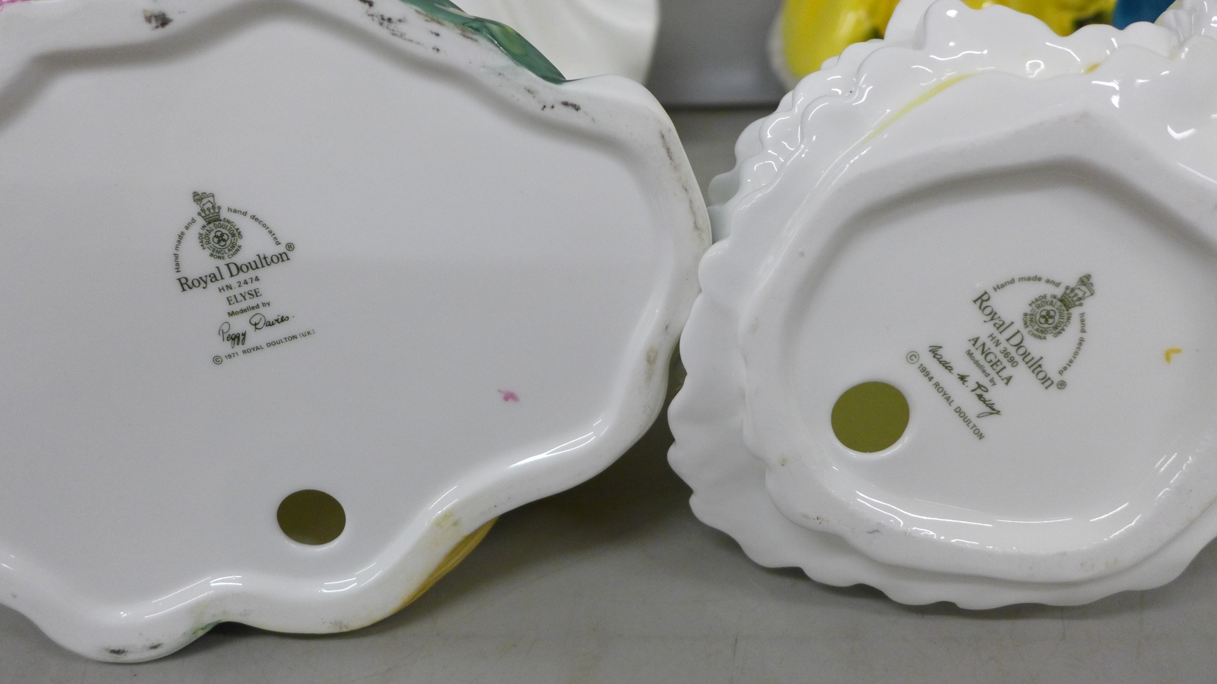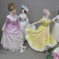 Nine Royal Doulton figures including Good Companion, Margaret x2, Ninette, Elyse, Angela, The Lost Waltz and Loretta, (one second quality)