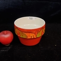 A vintage Poole pottery bowl. Designed in the no. 73 series with vibrant shades of orange and red with green detailing to rim. Branded to base. H11cm x D16cm. IN VGC