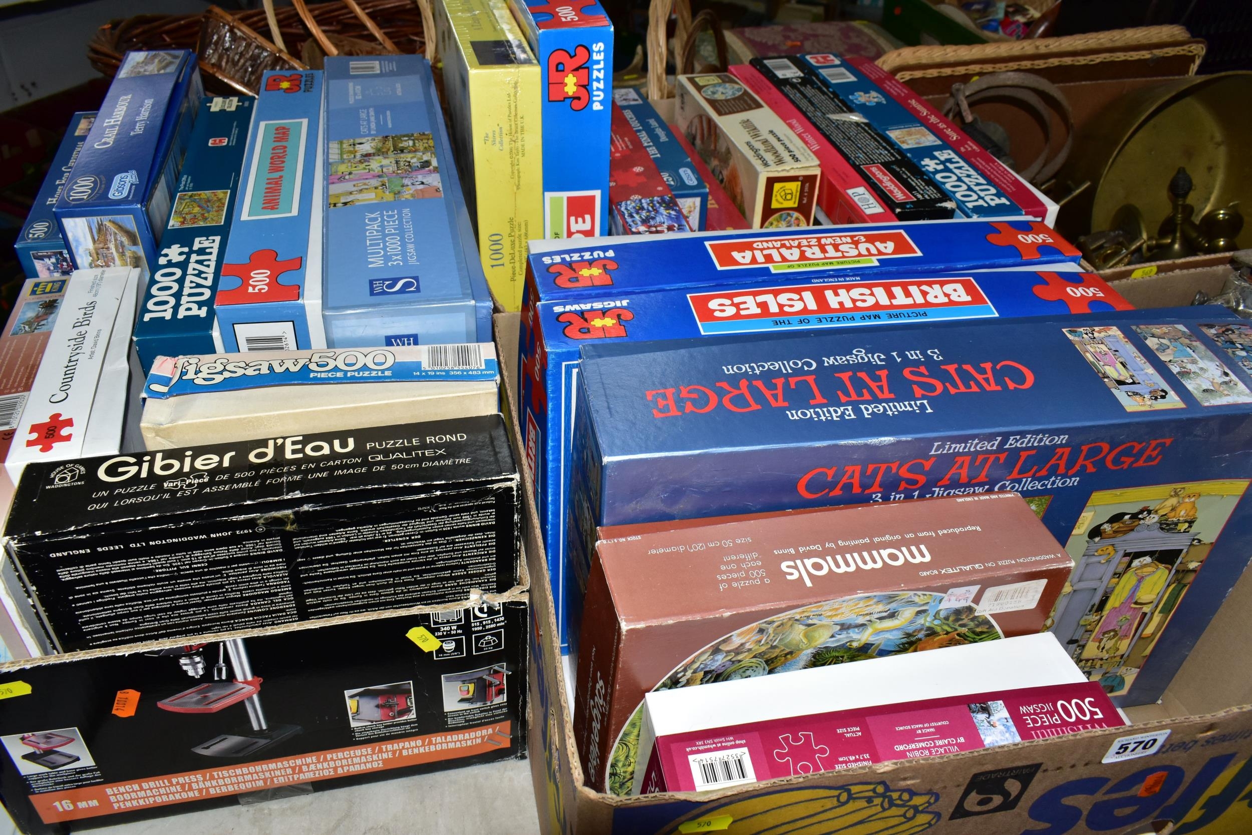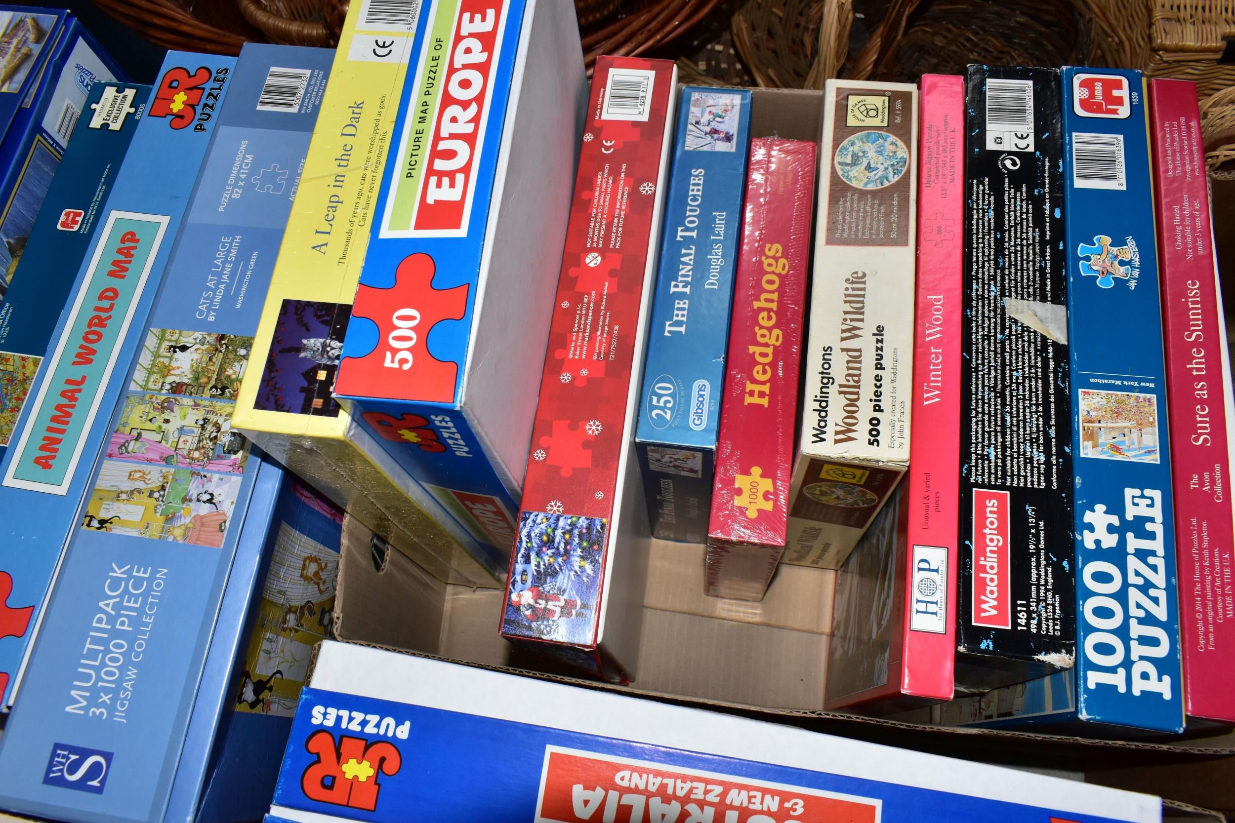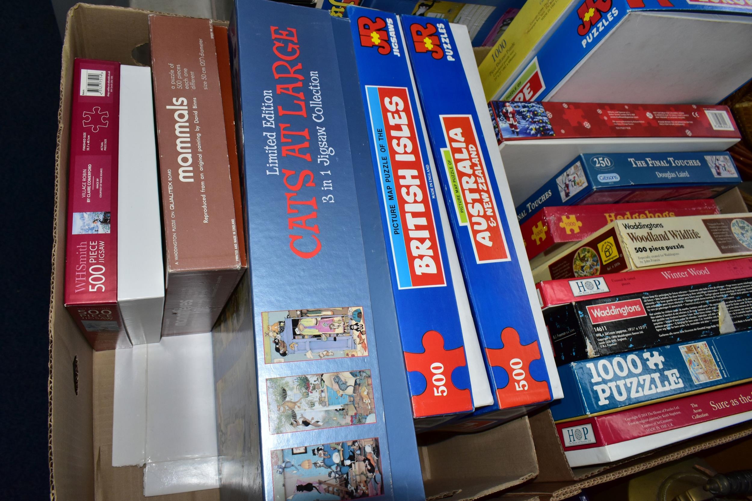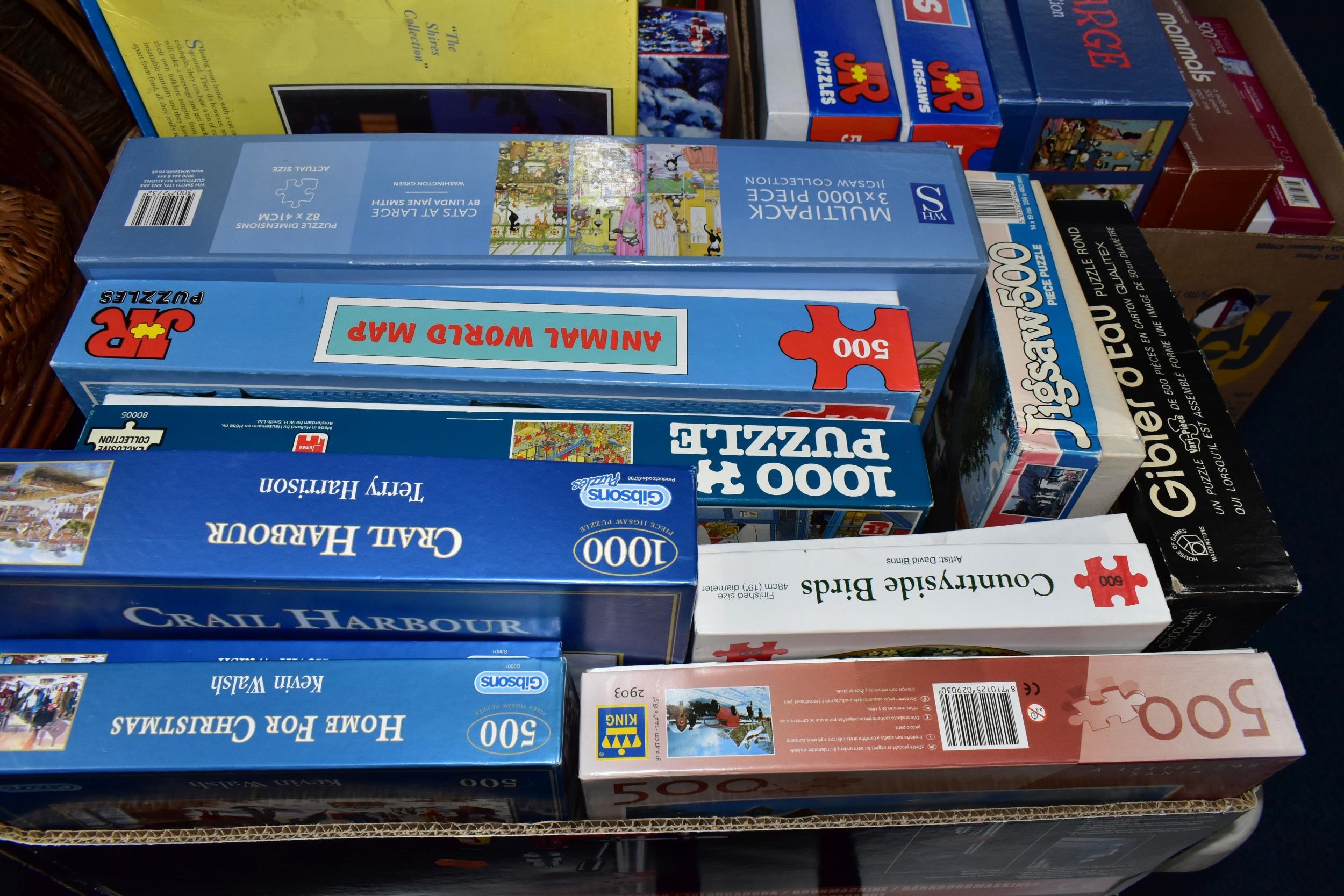 THREE BOXES OF JIGSAW PUZZLES, comprising twenty-four 500pc or 1000pc assorted boxed puzzles - contents not checked (3 boxes)