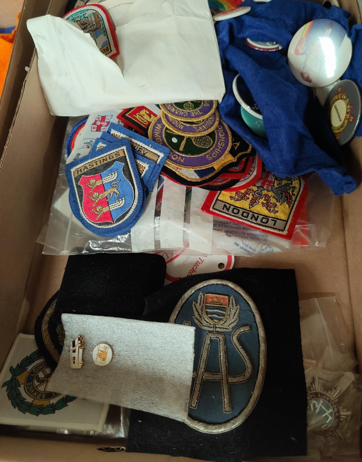 LONDON AMBULANCE SERVICE 2 blazer badges and enamel badges; other cloth badges
