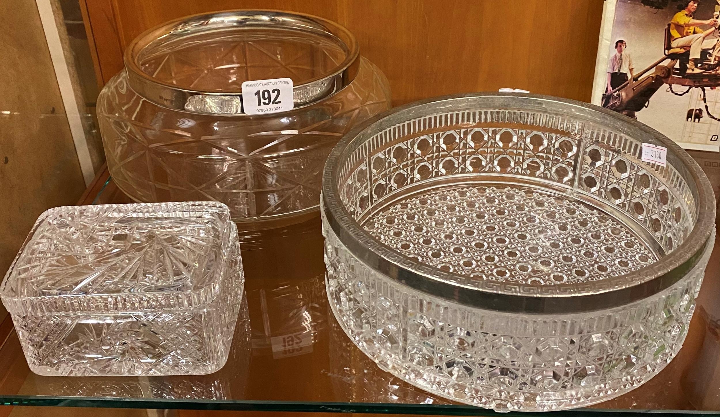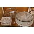 Two large silver plated fruit bowls and a Crystal Glass butter dish