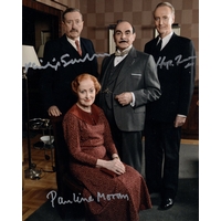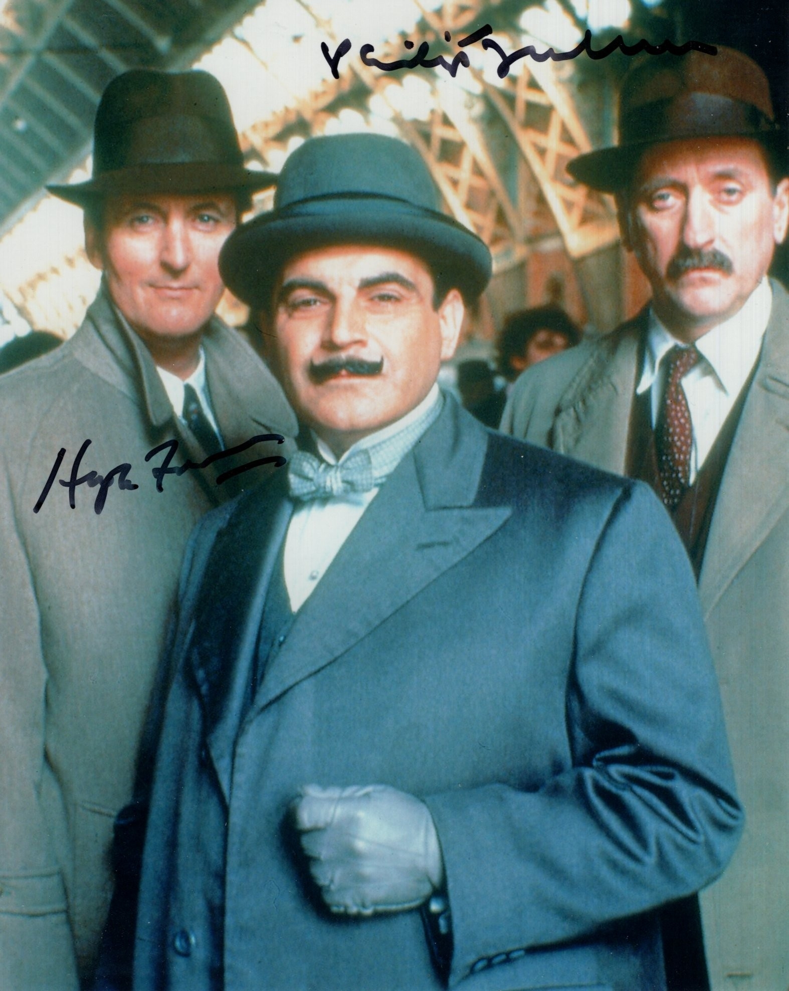 Poirot, popular TV detective series colour 8x10 photo signed by Hugh Fraser (Captain Hastings) and Philip Jackson (Inspector Japp)