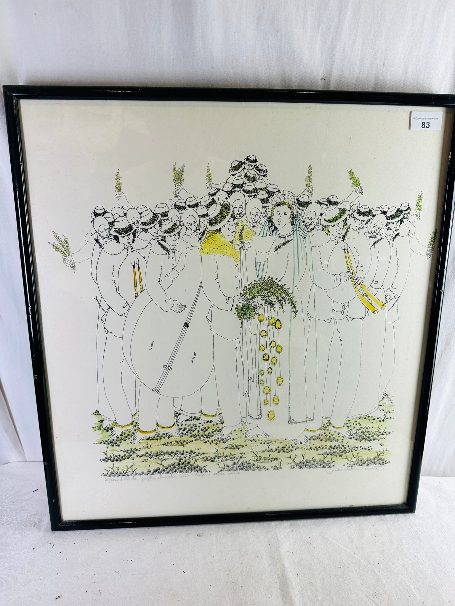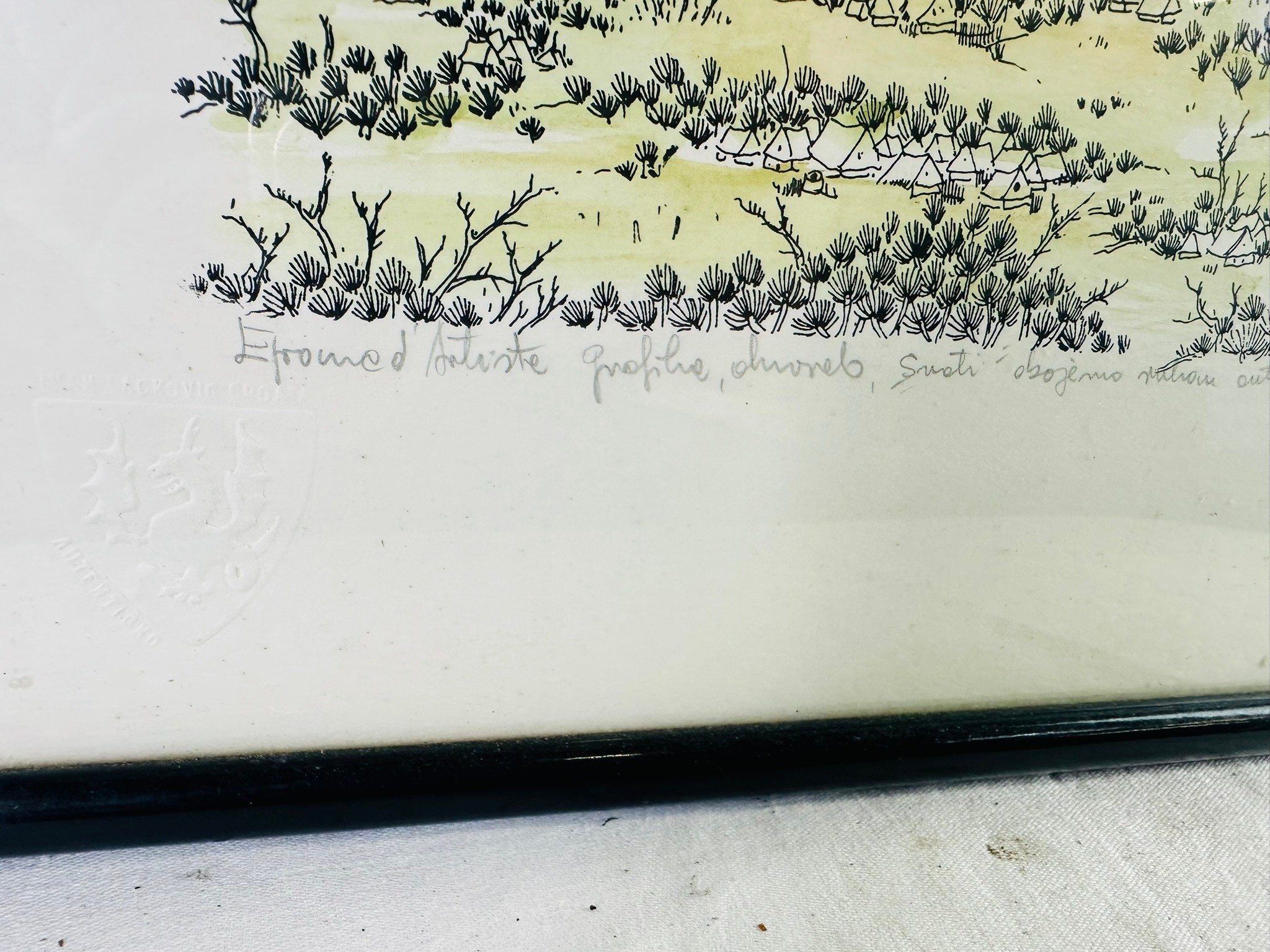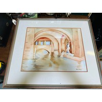 A pair of French art works signed LR with studio stamps on the LL. Framed and glazed, 21'' x 23''