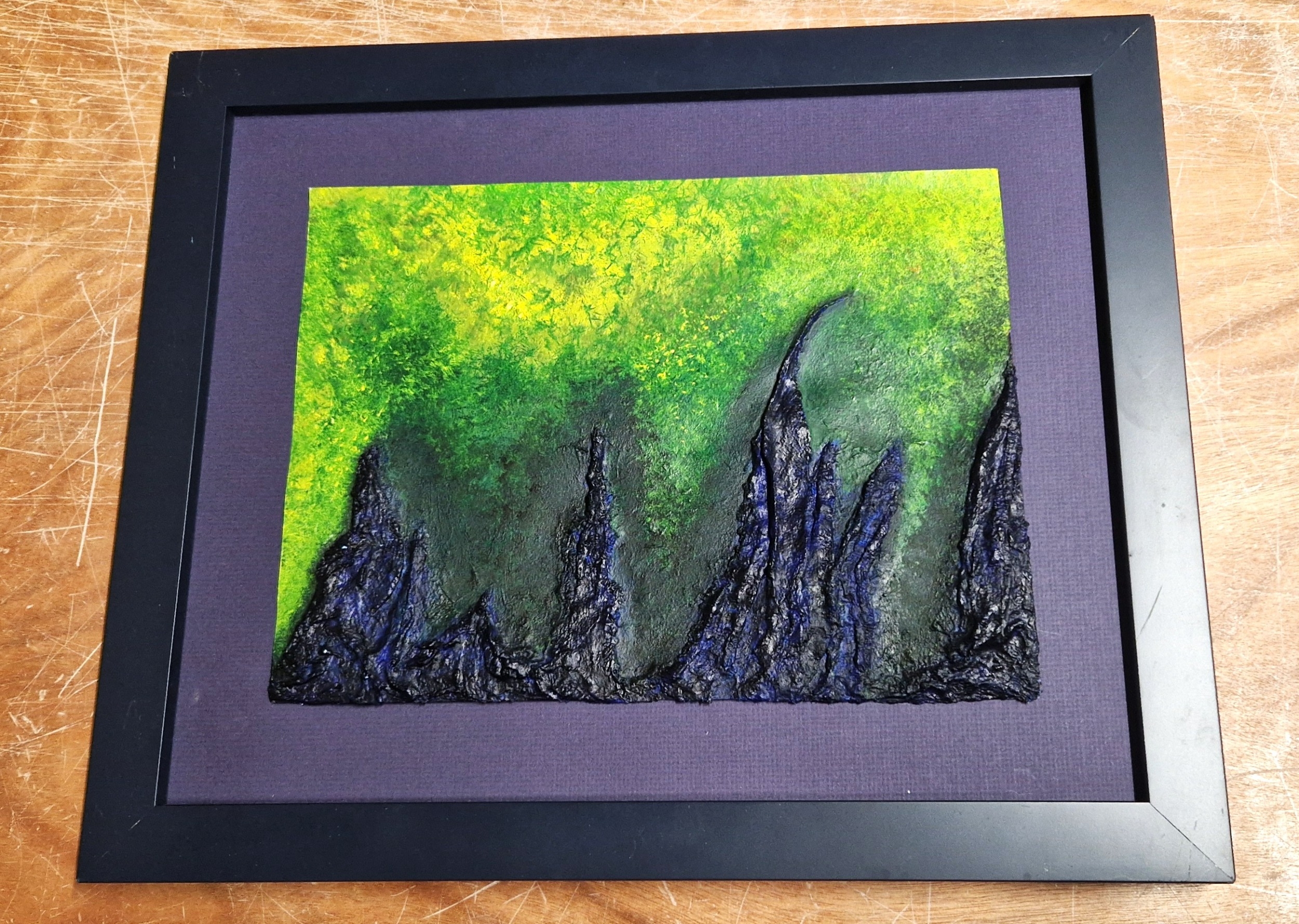 FRAMED Extra Large 49cm x 40cm ORIGINAL ACRYLIC/MULTIMEDIA PAINTING "BLUE FOREST ON TAURIS MORTENS 9" By Artist Gabriele Smolarz VIMAL.ART.UK R.R.P. £295.00