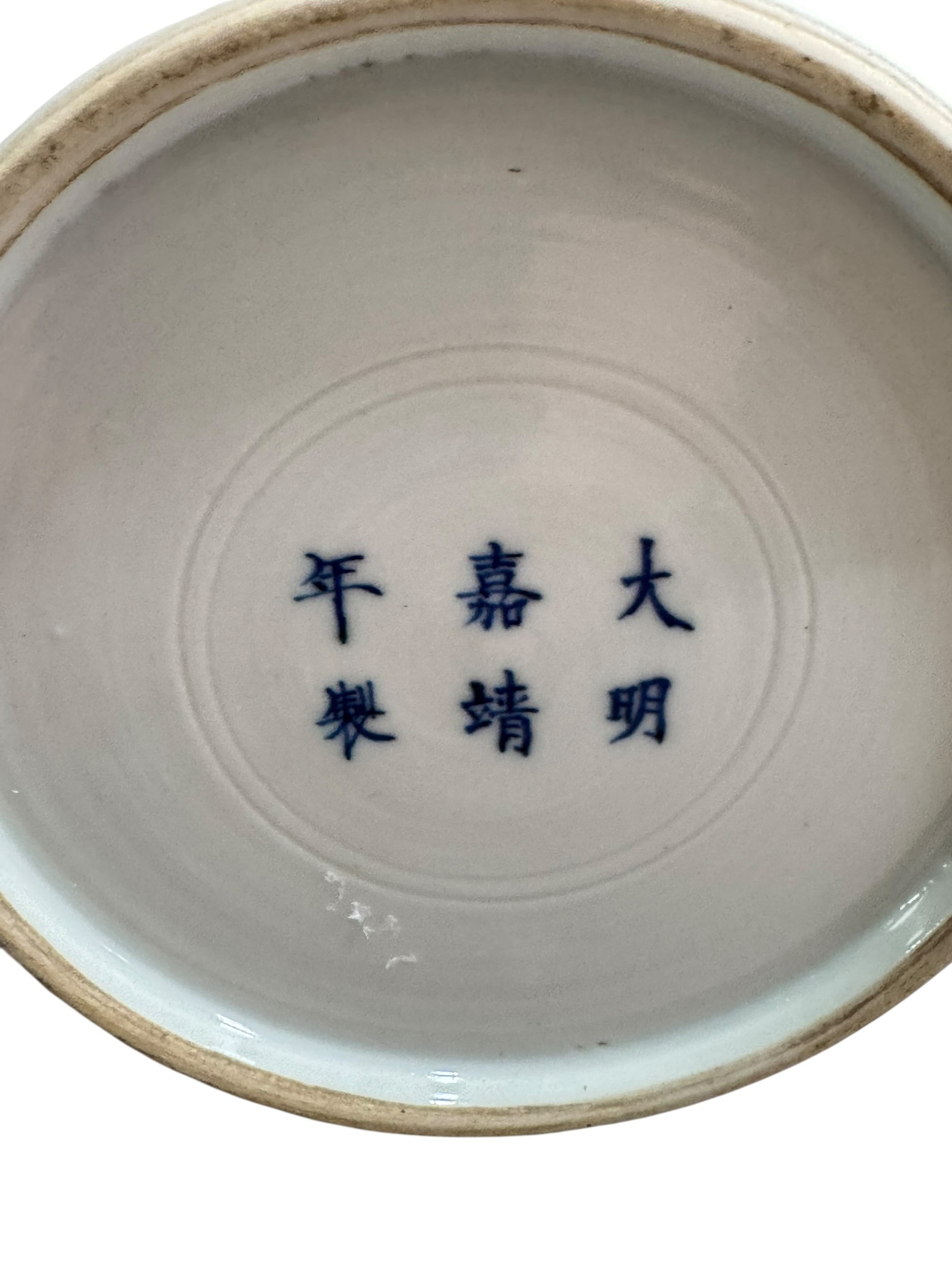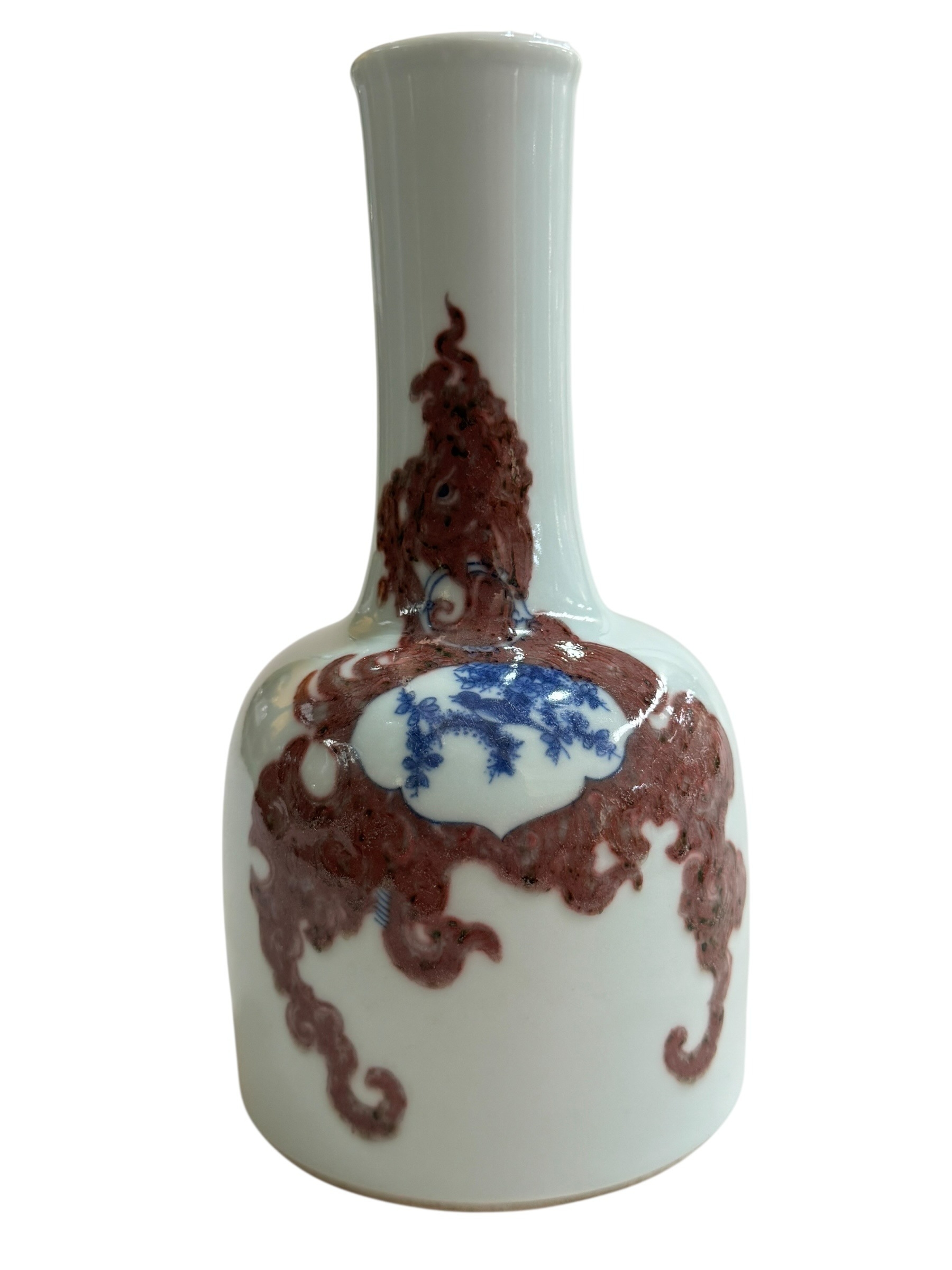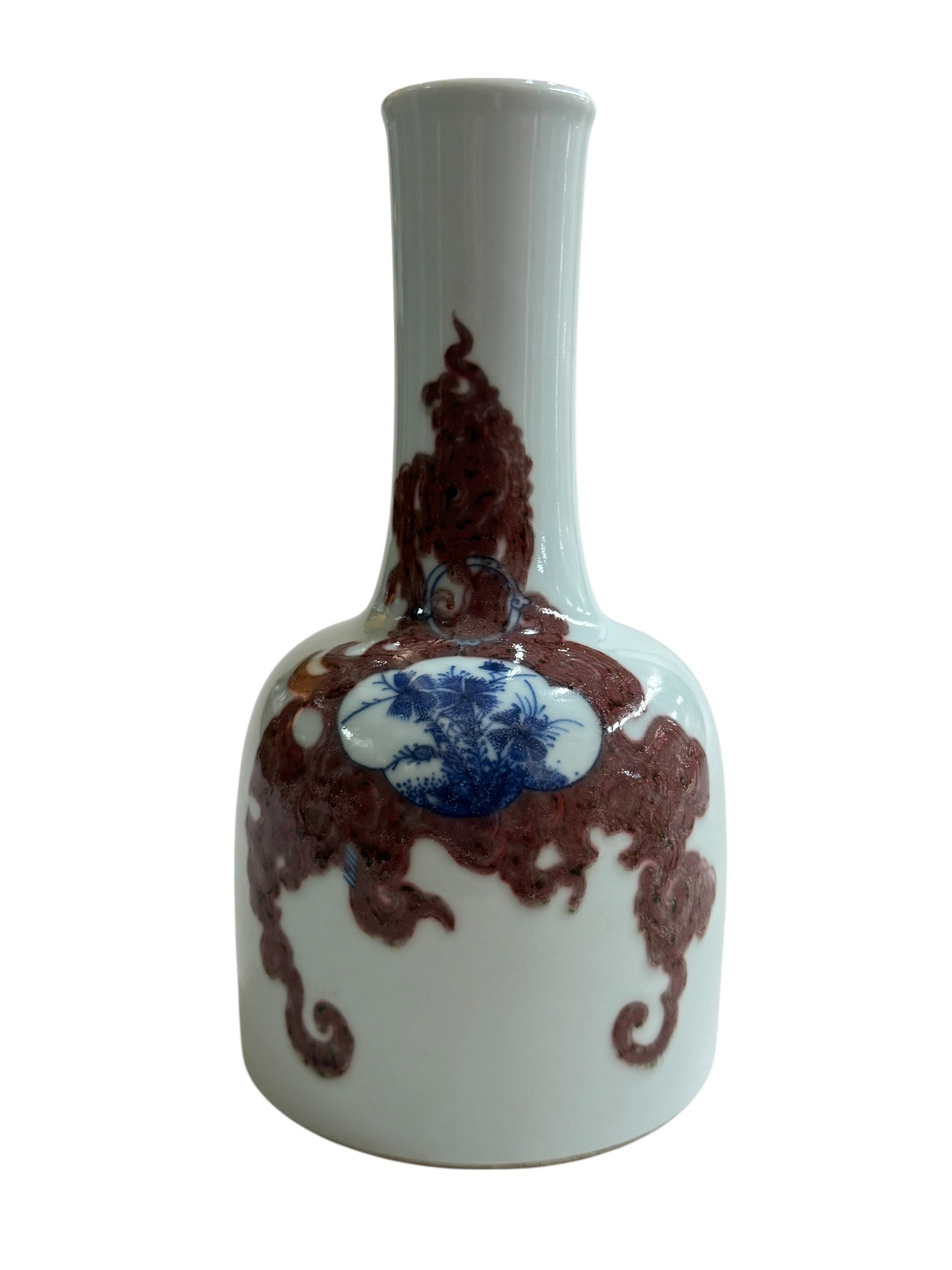 Chinese pottery mallet vase decorated with floral design, six character mark to base.