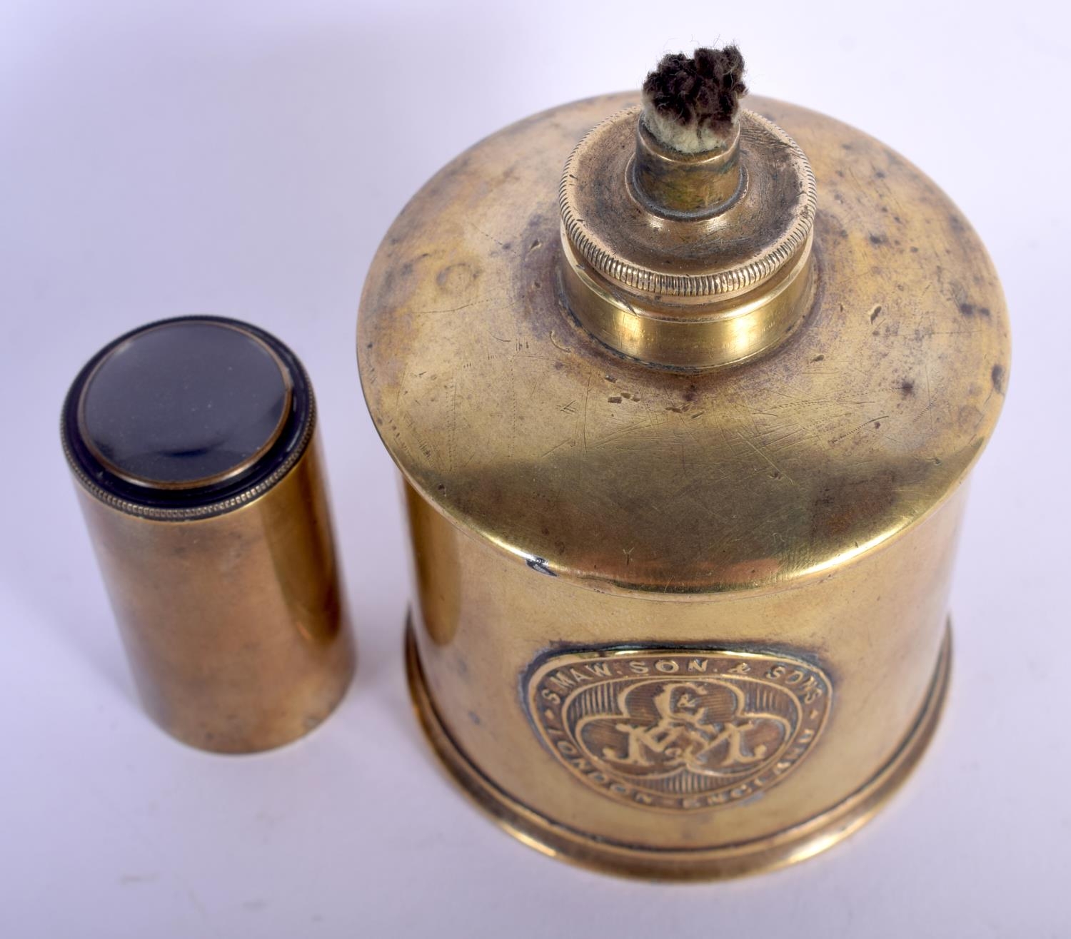 A VINTAGE S MAW SON & SONS BRASS MAGNIFYING BRASS LAMP. 11.5 cm high.