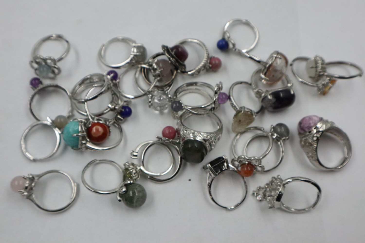 Thirty stone set adjustable rings. UK P&P Group 1 (£18+VAT for the first lot and £2+VAT for subsequent lots)
