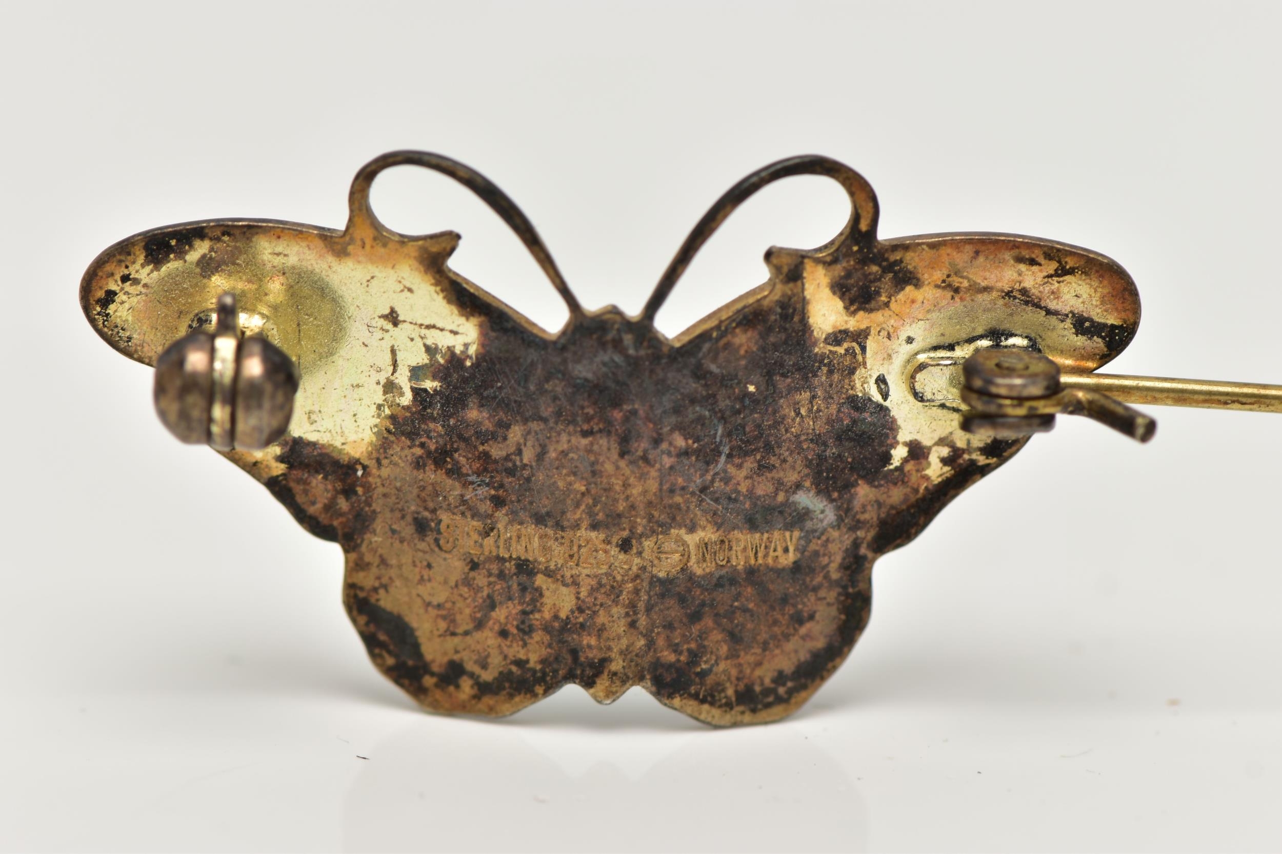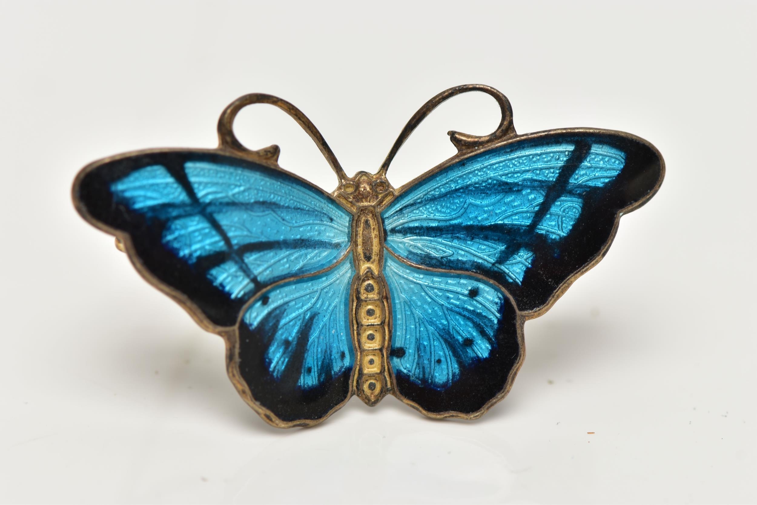 A 'HROAR PRYDZ' BUTTERFLY BROOCH, a silver brooch with light and dark blue enamel detail, fitted with a silver pin and safety clasp, stamped sterling 925s Norway, approximate gross weight 4.7 grams (condition report: general moderate wear overall condition good)