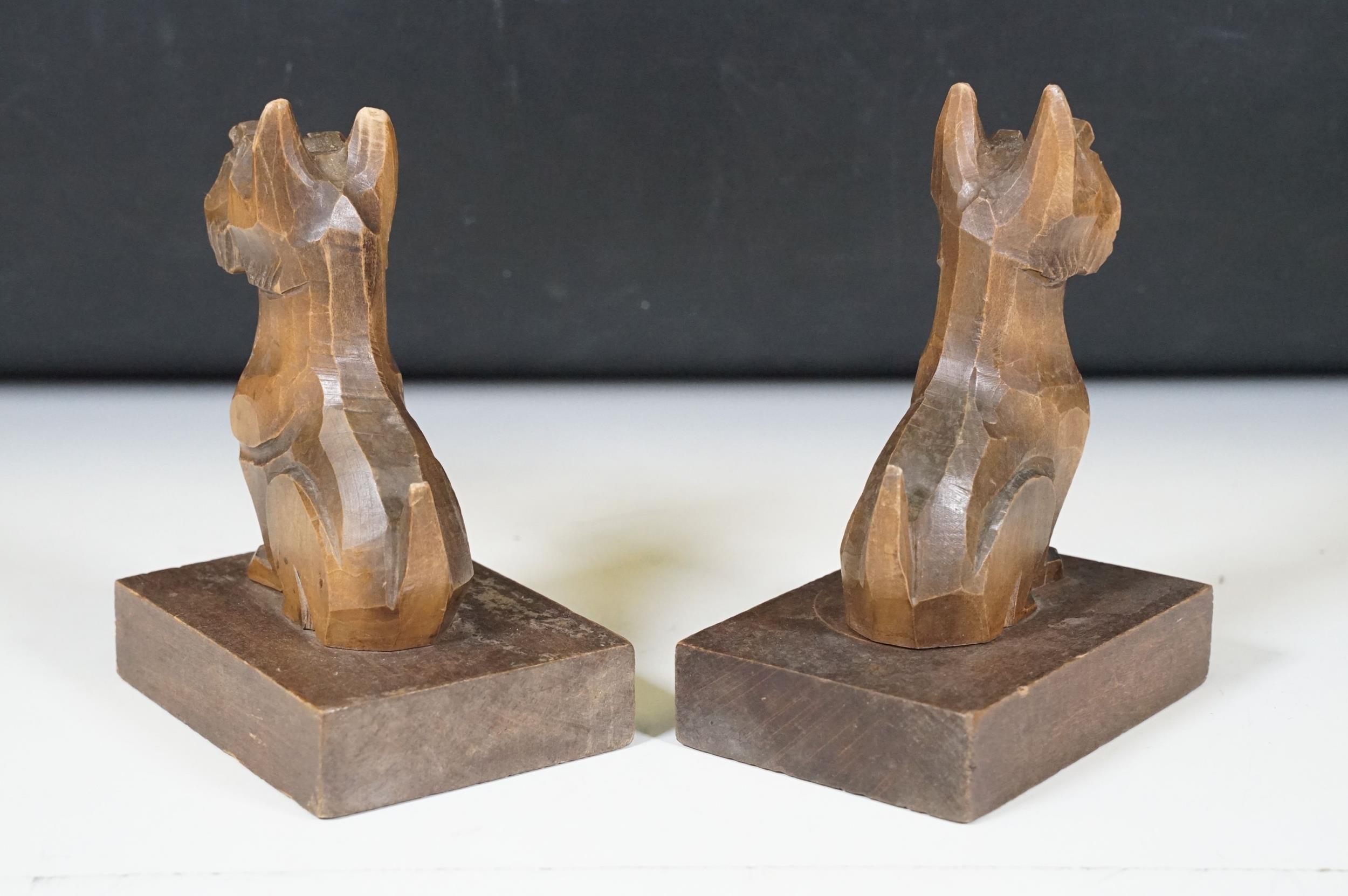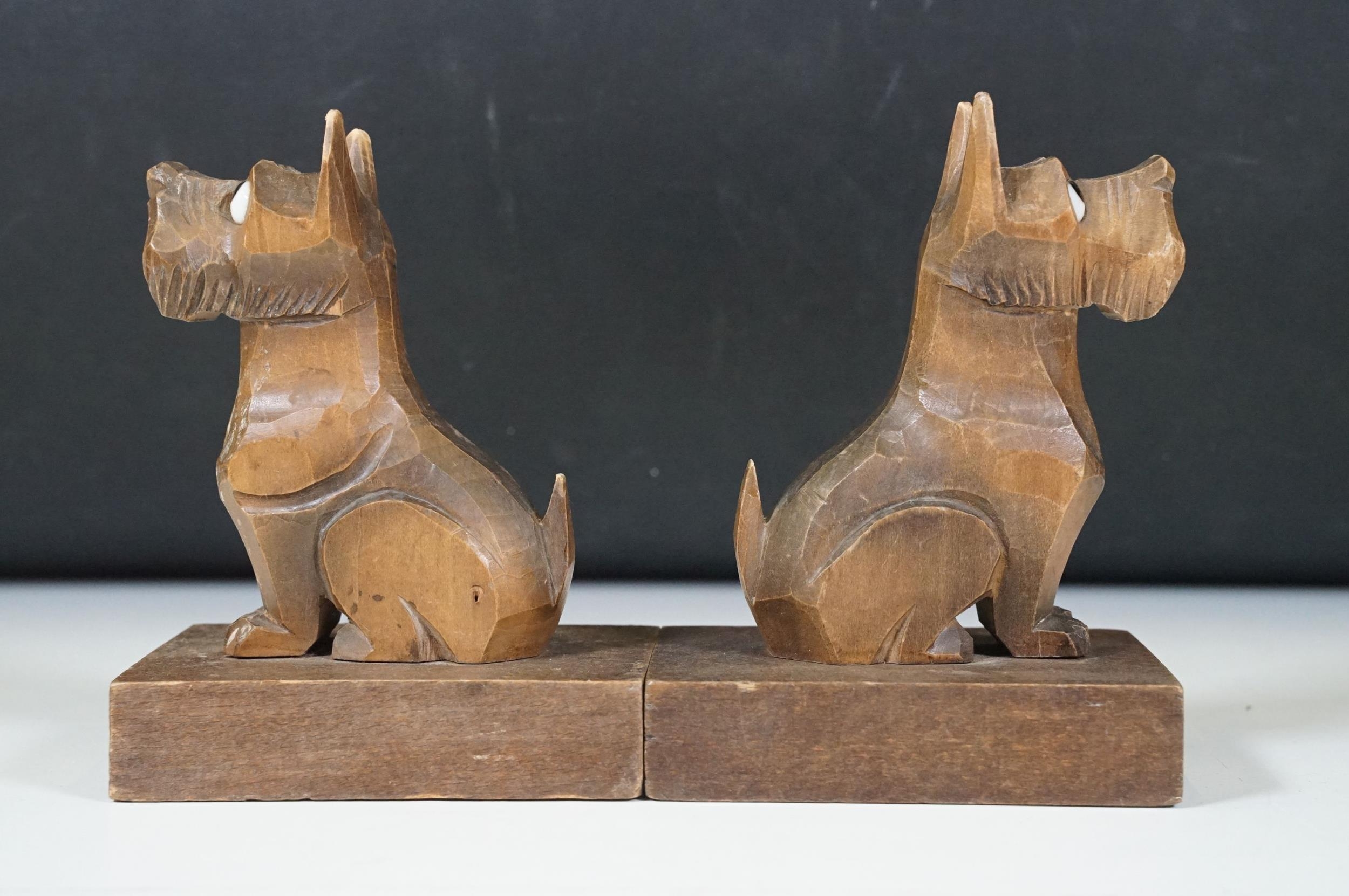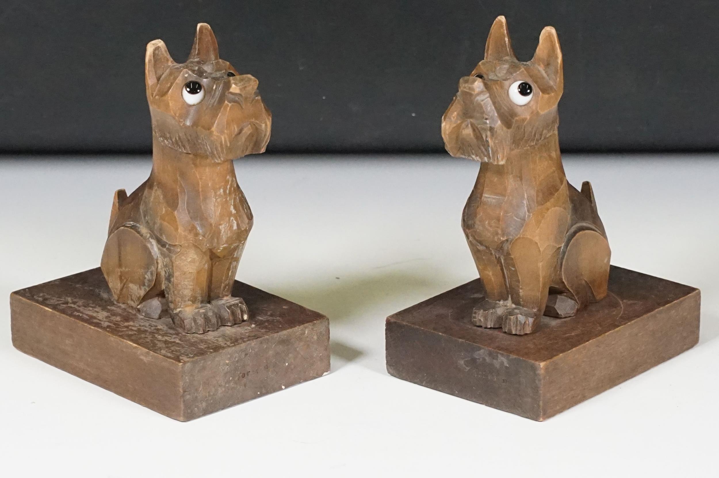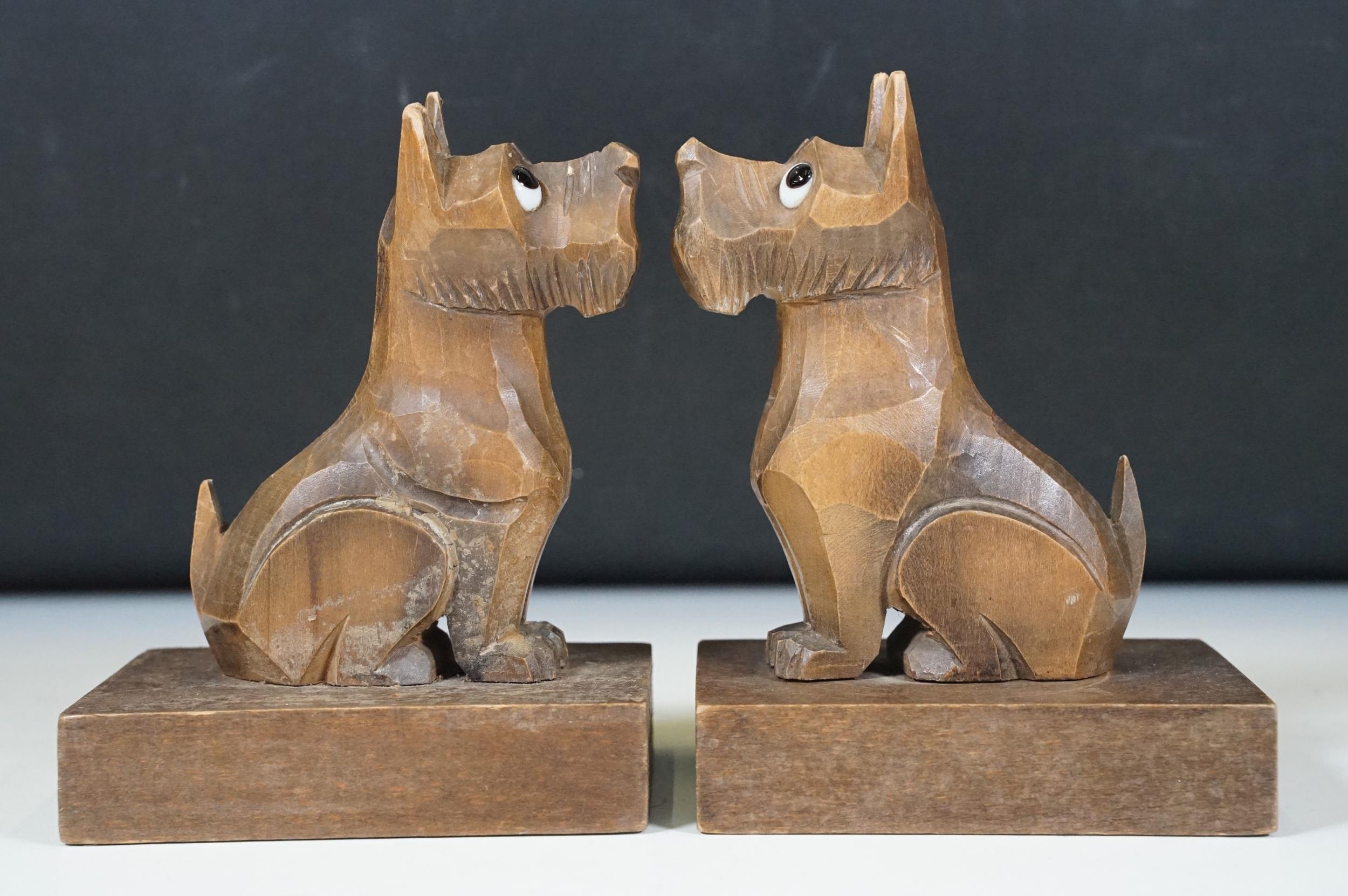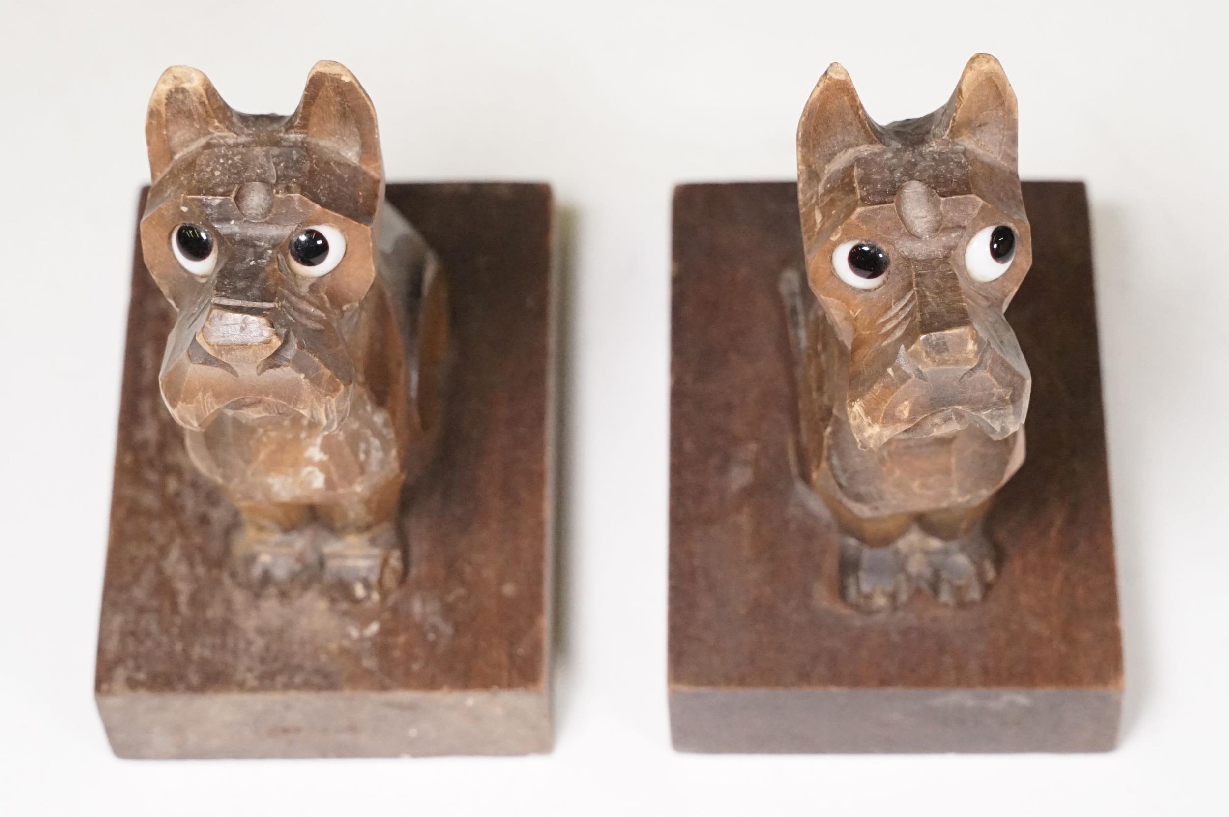 Pair of Art Deco wooden carved ‘Scottie Dog ‘ bookends, with glass eyes, 15cm high