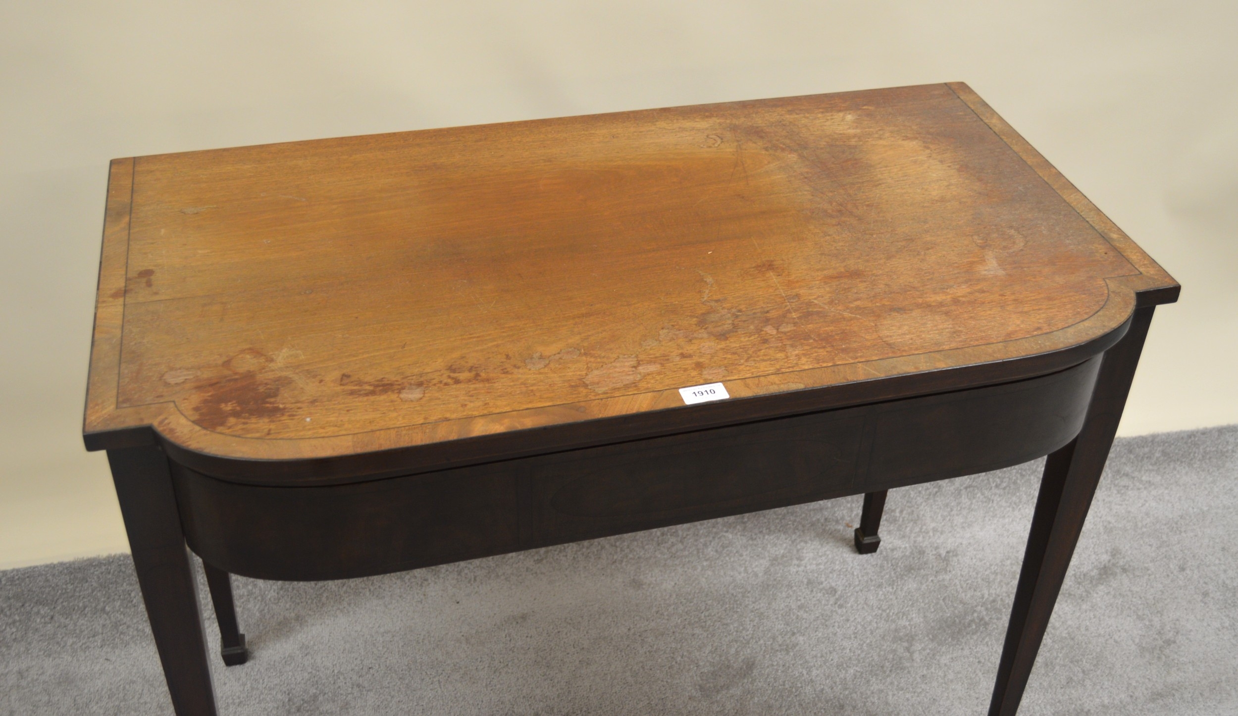 Edwardian mahogany serving table in George III style, crossbanded and inlaid with stringing, on square tapered legs, 99 x 53 x 74cm