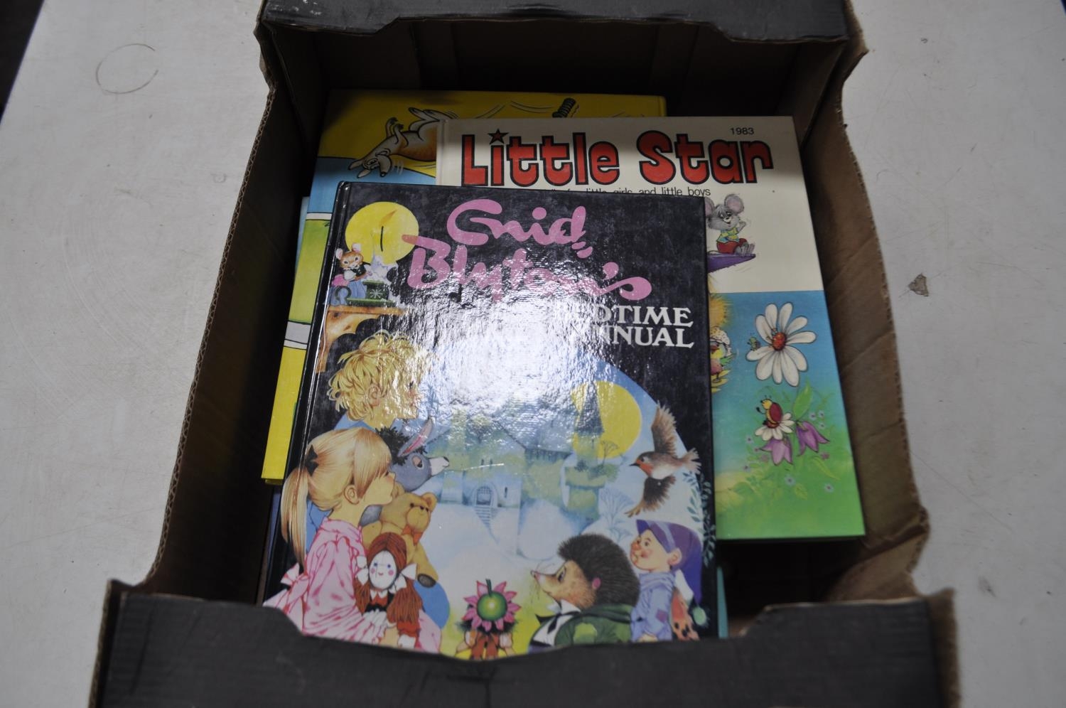 A BOX OF MISC VINTAGE CHILDREN'S ANUALS INC. ENID BLYTON, LITTLE STAR AND OTHERS
