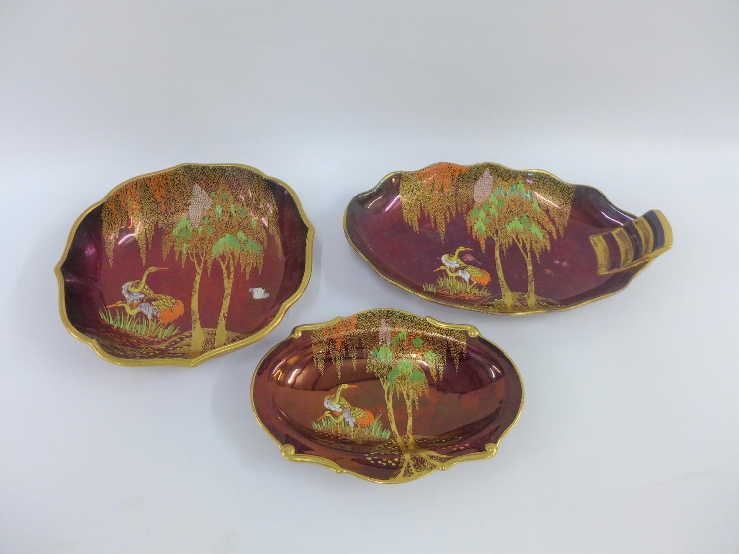 Three Carlton Ware Rouge Royale Weeping Willow pattern dishes (3)