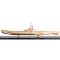 the 17½in. solid cast hull with fins, propellers and superstructure with snorkel, periscope, etc., mounted on two turned brass columns to ebonised display base -- 29in. (48cm.) long