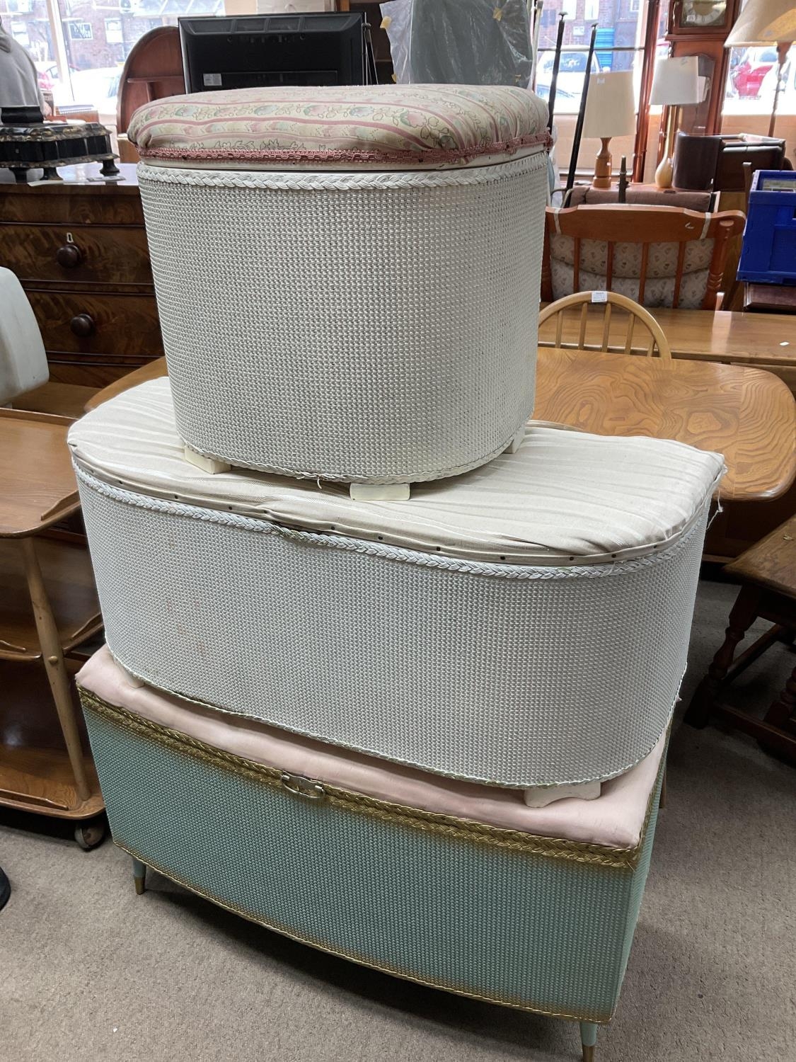 3 vintage Lloyd Loom blanket chests.