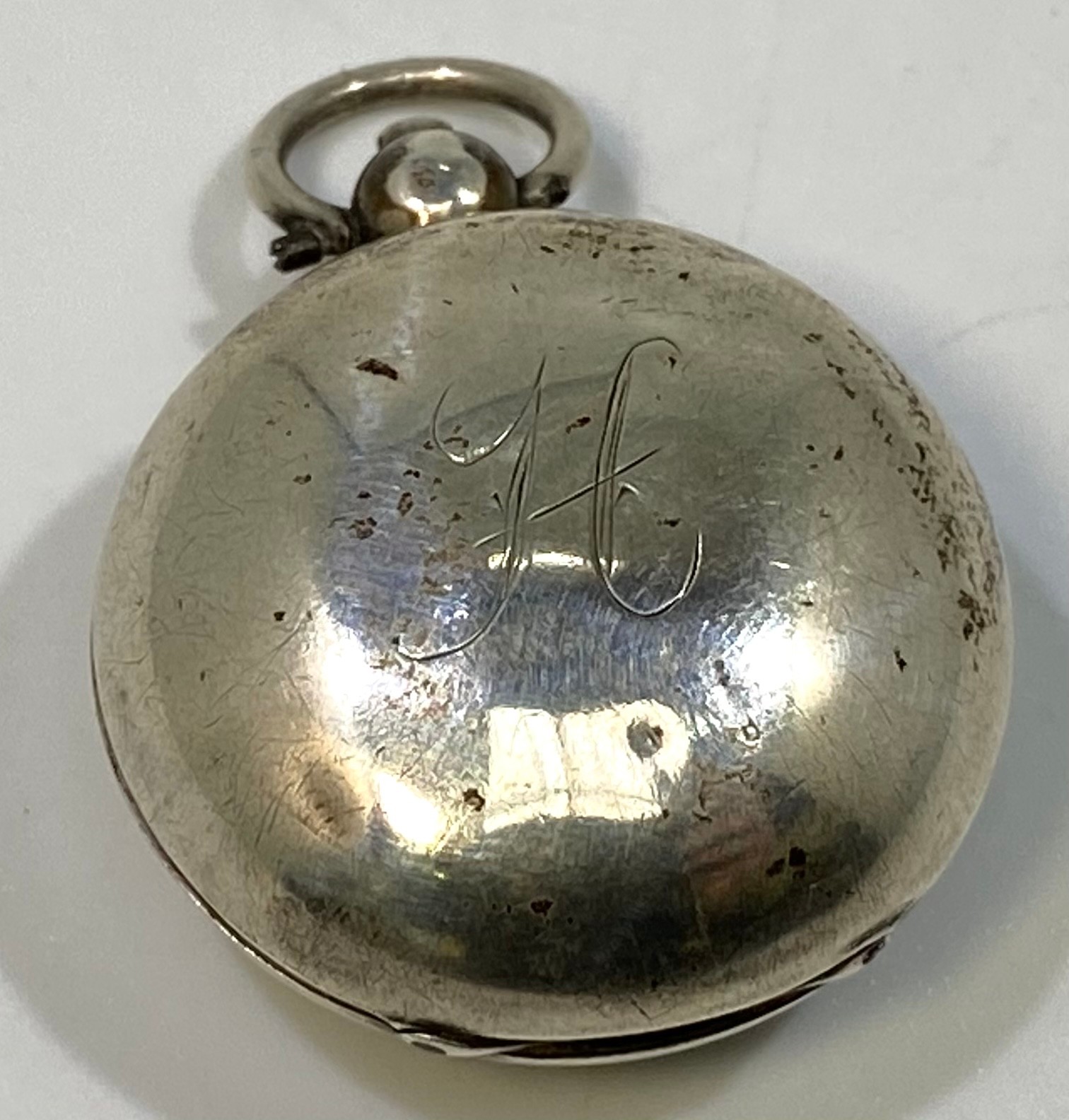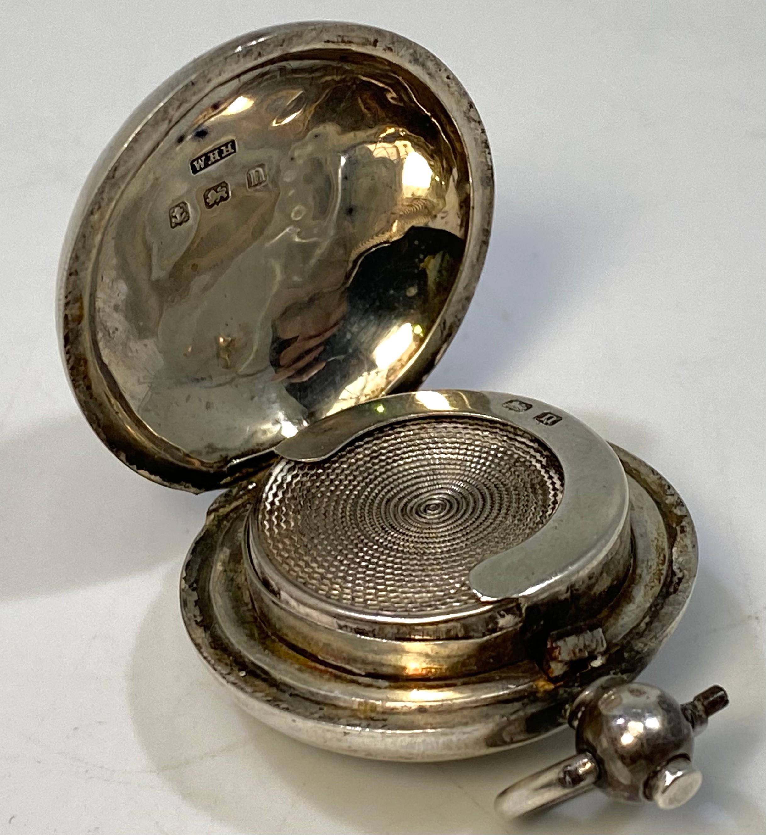A circular silver sovereign case with one side engraved with an ‘H’, Birmingham, 1912, makers William Hair Haseler, 15g