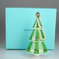 A boxed Tiffany & Co Japanese porcelain Christmas Tree bauble, height 9.5cm approx, comes with Tiffany & Co brass hanger, both come with Tiffany & Co fabric pouches, tissue and ribbon (1)