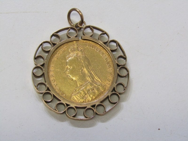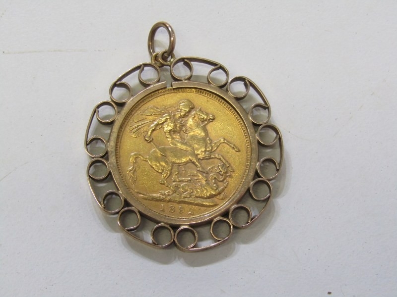 VICTORIAN MOUNTED SOVEREIGN, 1892 Victorian gold sovereign in a 9ct gold mount, 11.1 grams