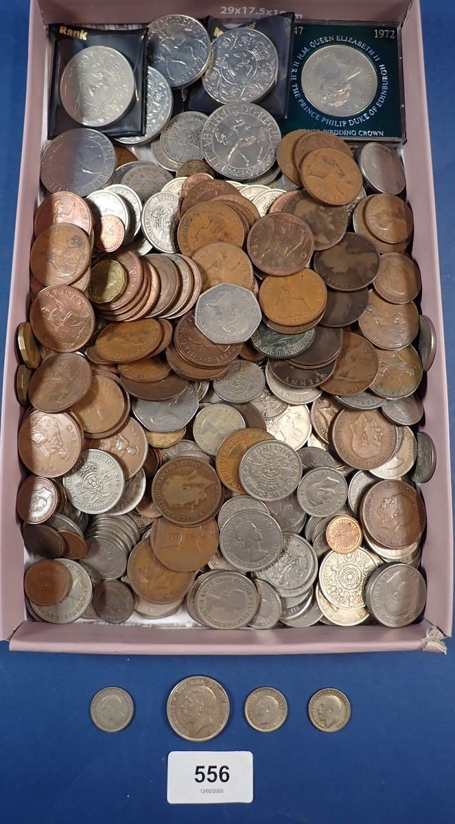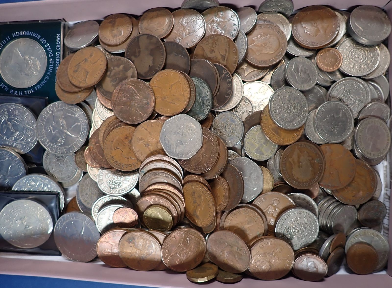 A group of British coins to include Victoria-Elizabeth II, pennies, half pennies, sixpences, shillings, commemorative crowns etc, silver content includes George V 1936 florin, sixpences etc