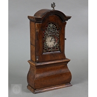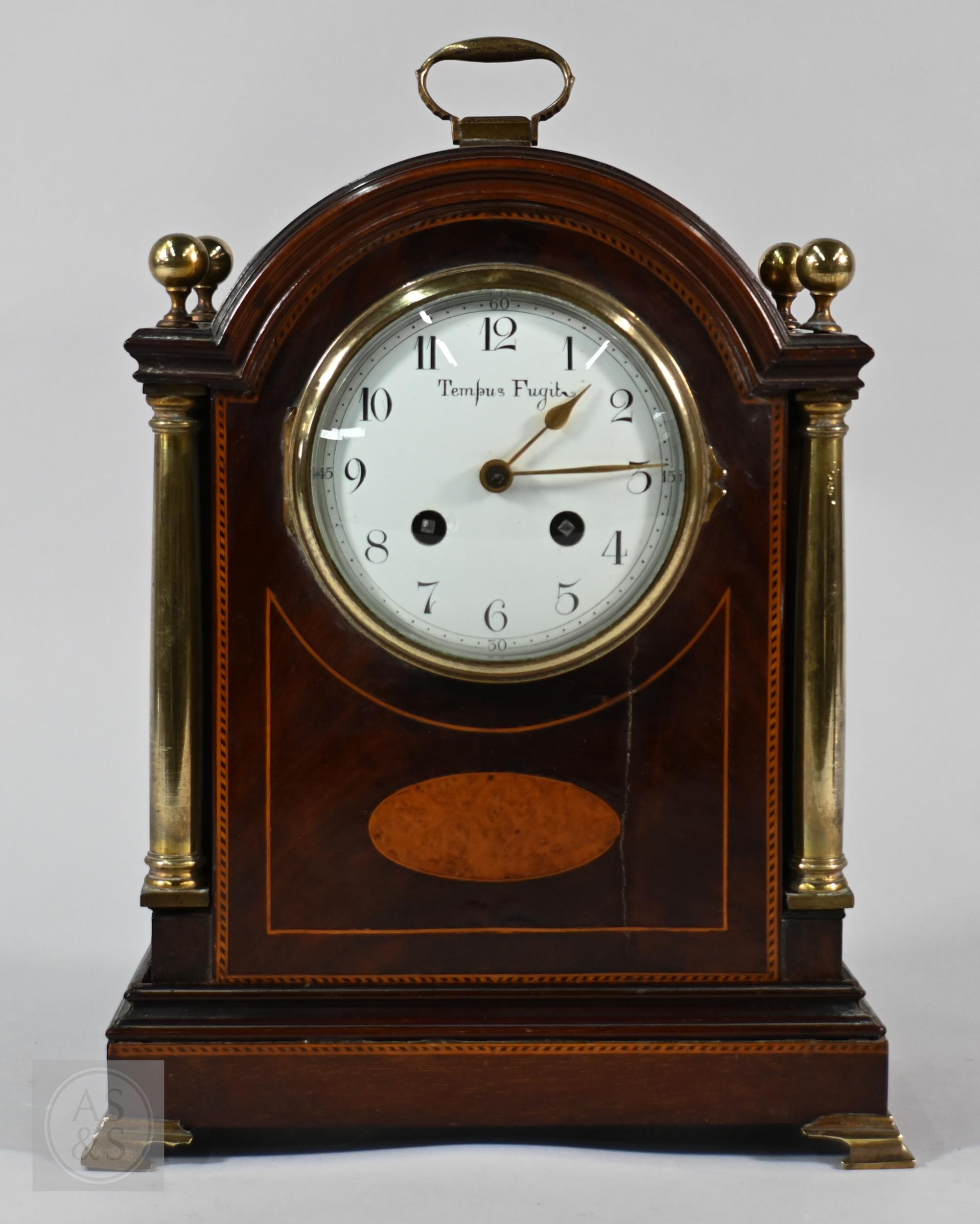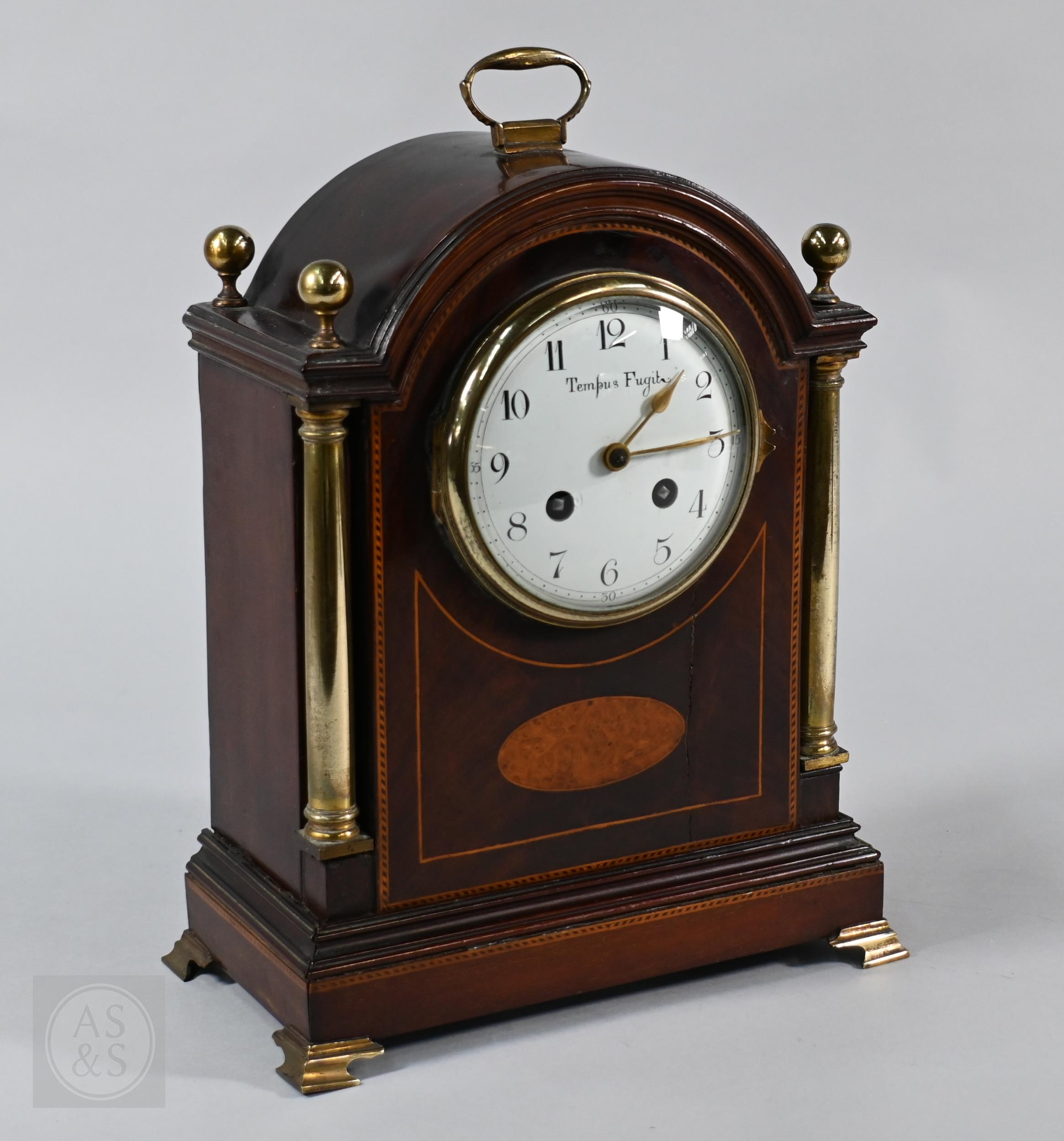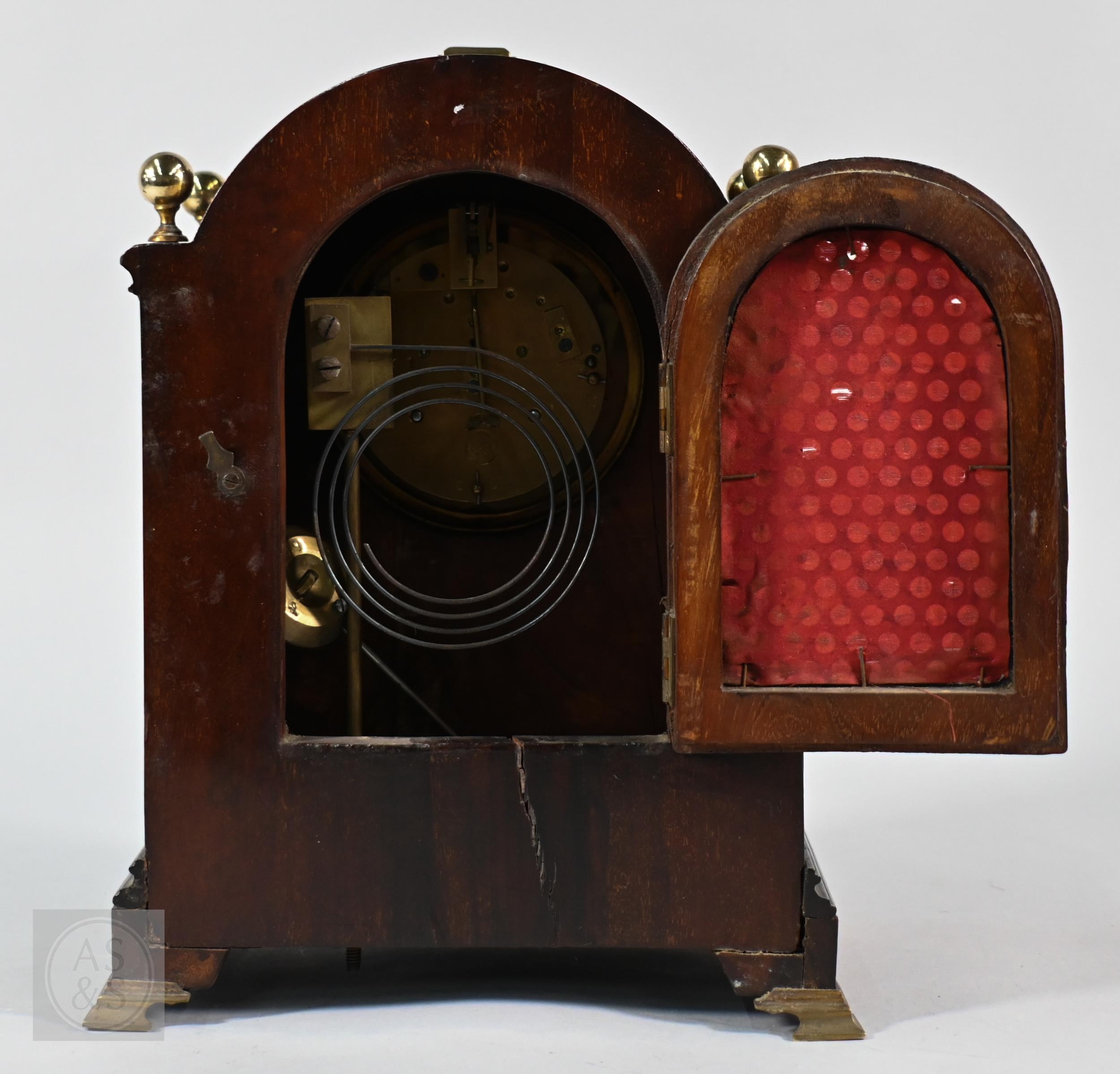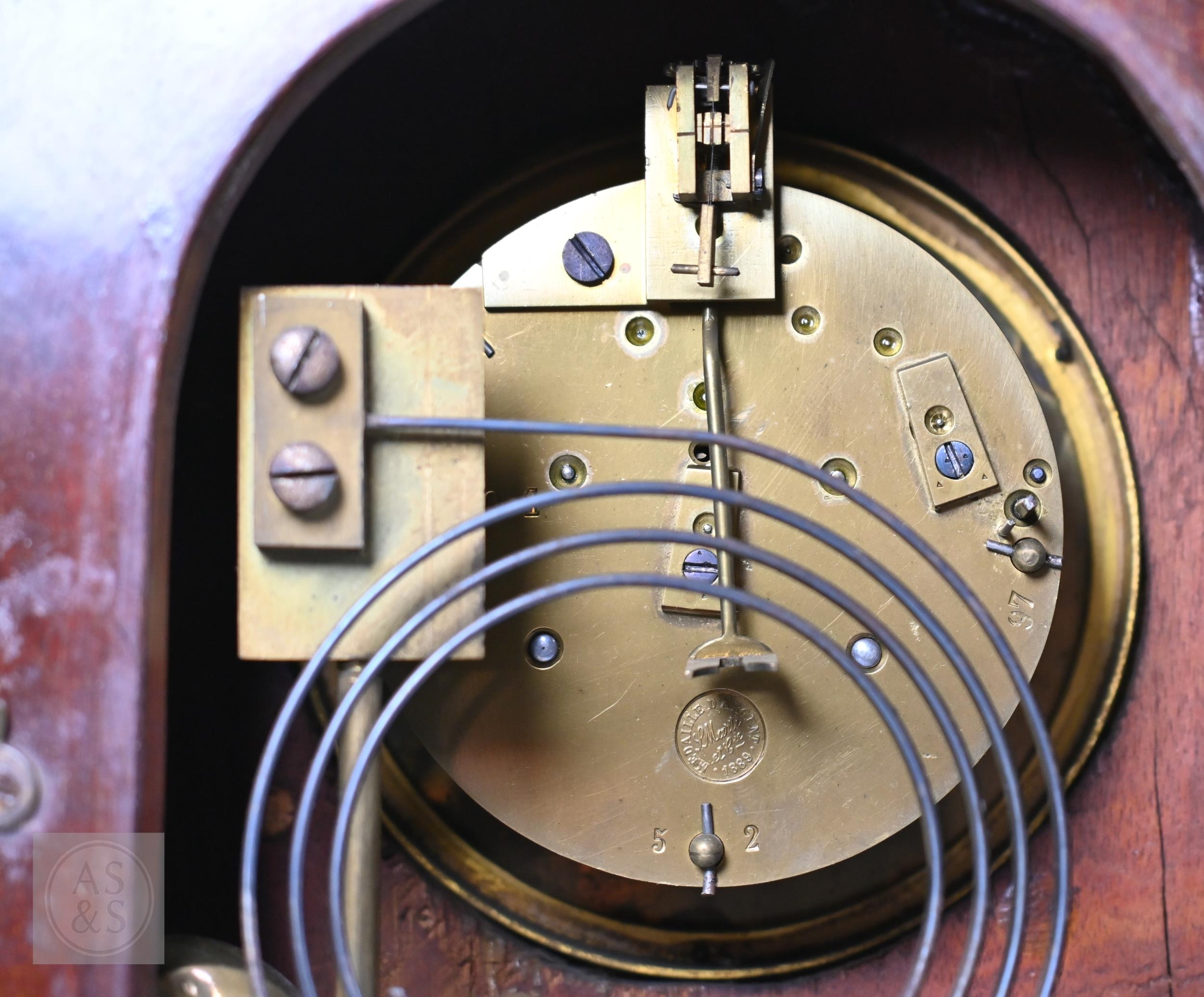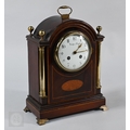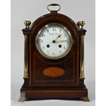 A French brass mounted satinwood bracket clock, the 8-day twin train movement with Arabic numeral dial and gilt hands, 28 cm h, with associated wall bracket (2)