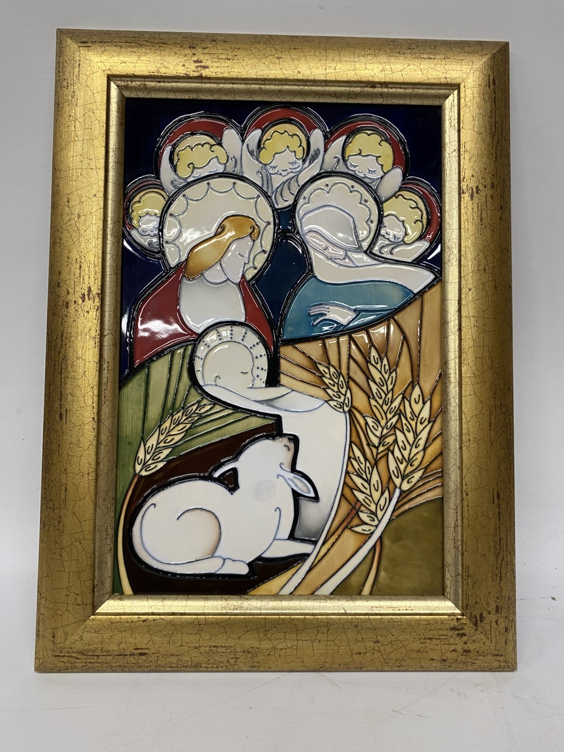 A MOORCROFT FRAMED NATIVITY PLAQUE, LIMITED EDITION. 16/50, SIGNED, 2012, 40CM X 29CM