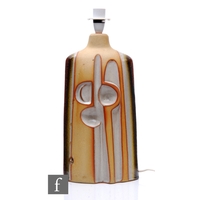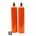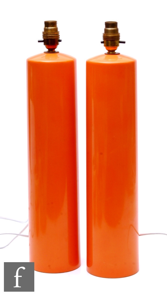Unattributed maker - A pair of 1960s/70s lacquered ceramic orange lamp bases, of slender cylindrical form, heights 42cm. (2)
