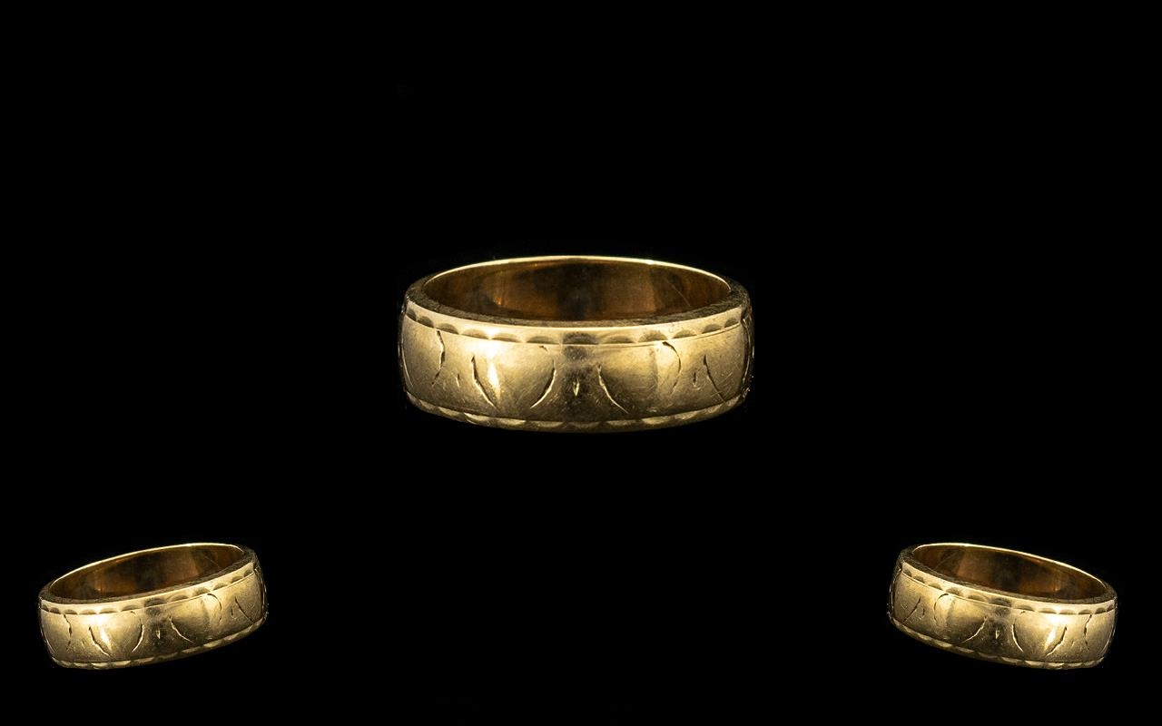9ct Gold Embossed Ladies Wedding Band