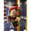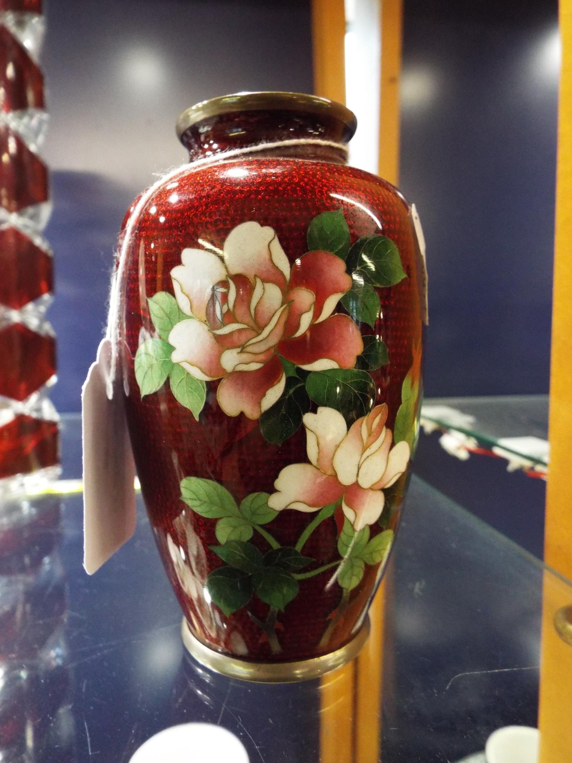 A mid-20th century Japanese akatsuki ginbari cloisonne vase with lush rose decoration