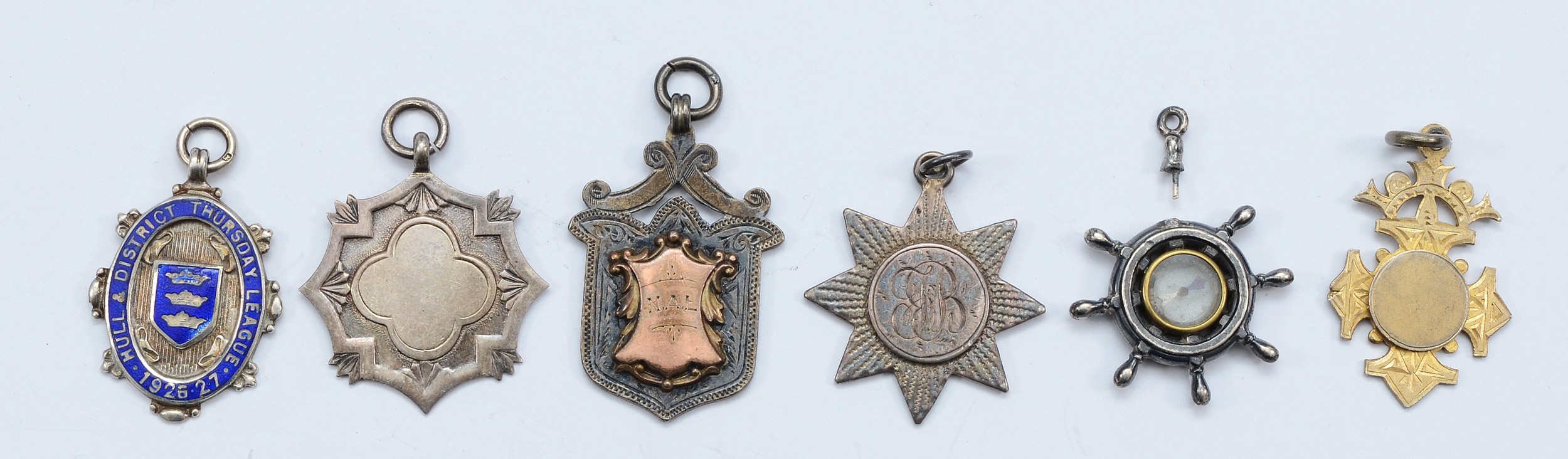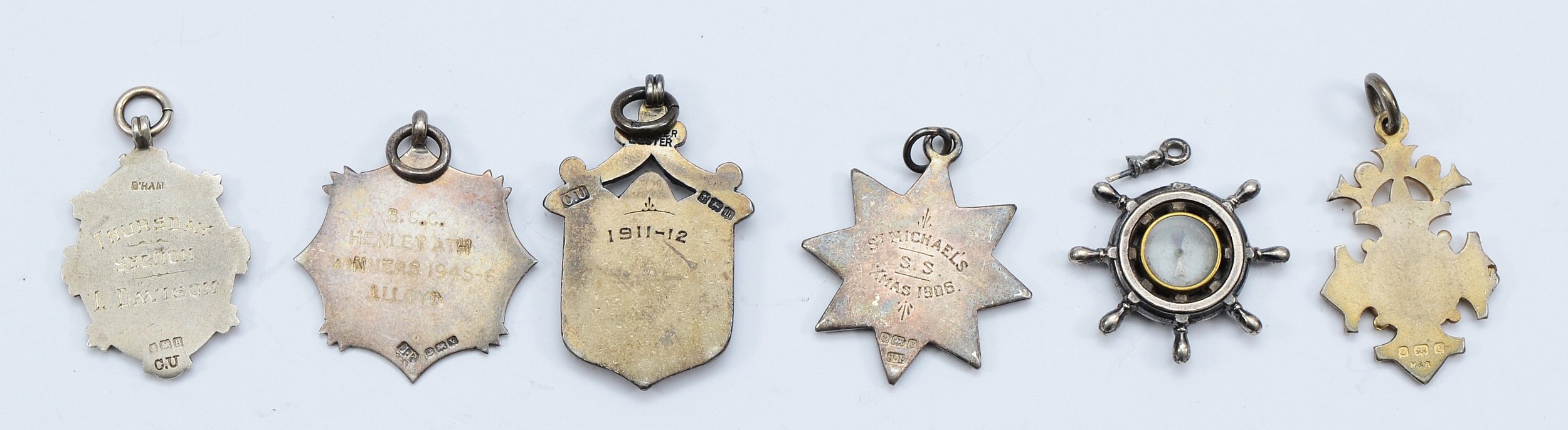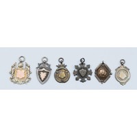 Six various silver watch fobs and medals, various dates, 48gm