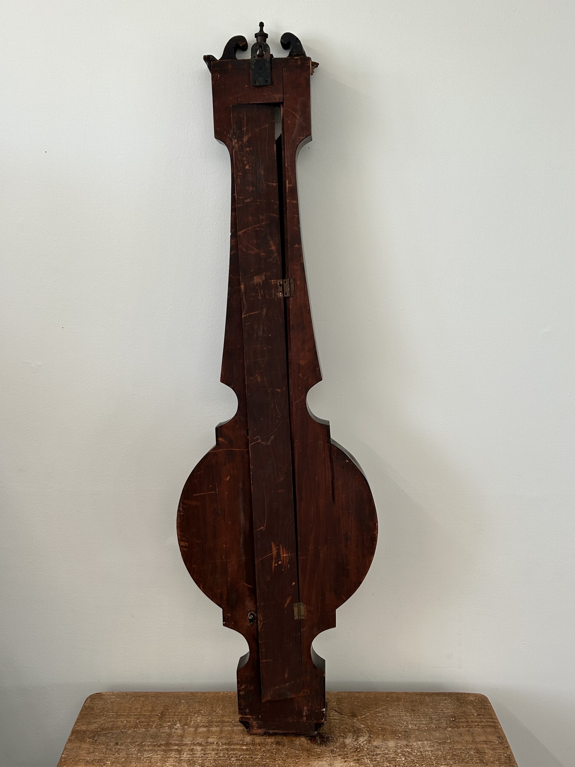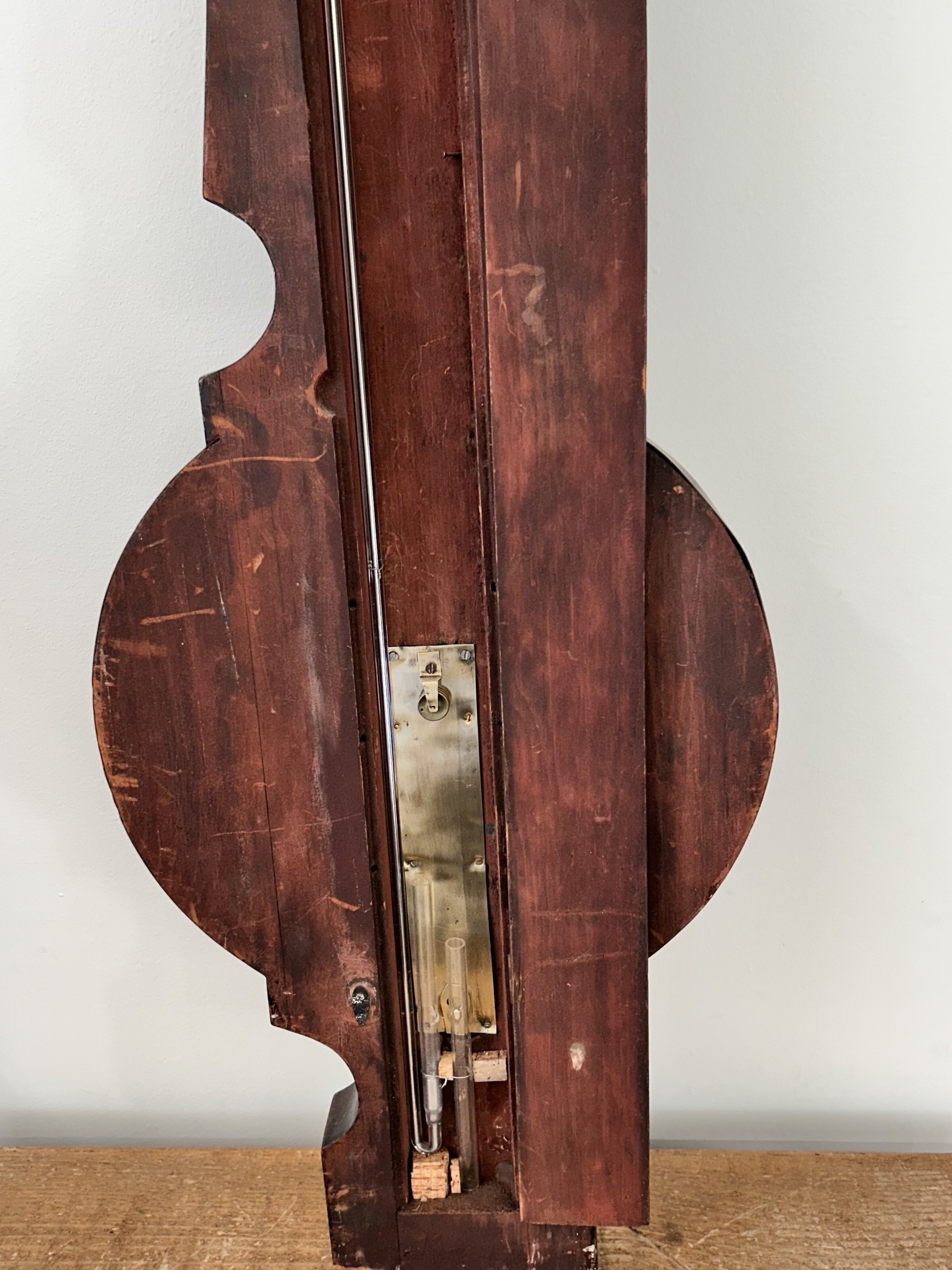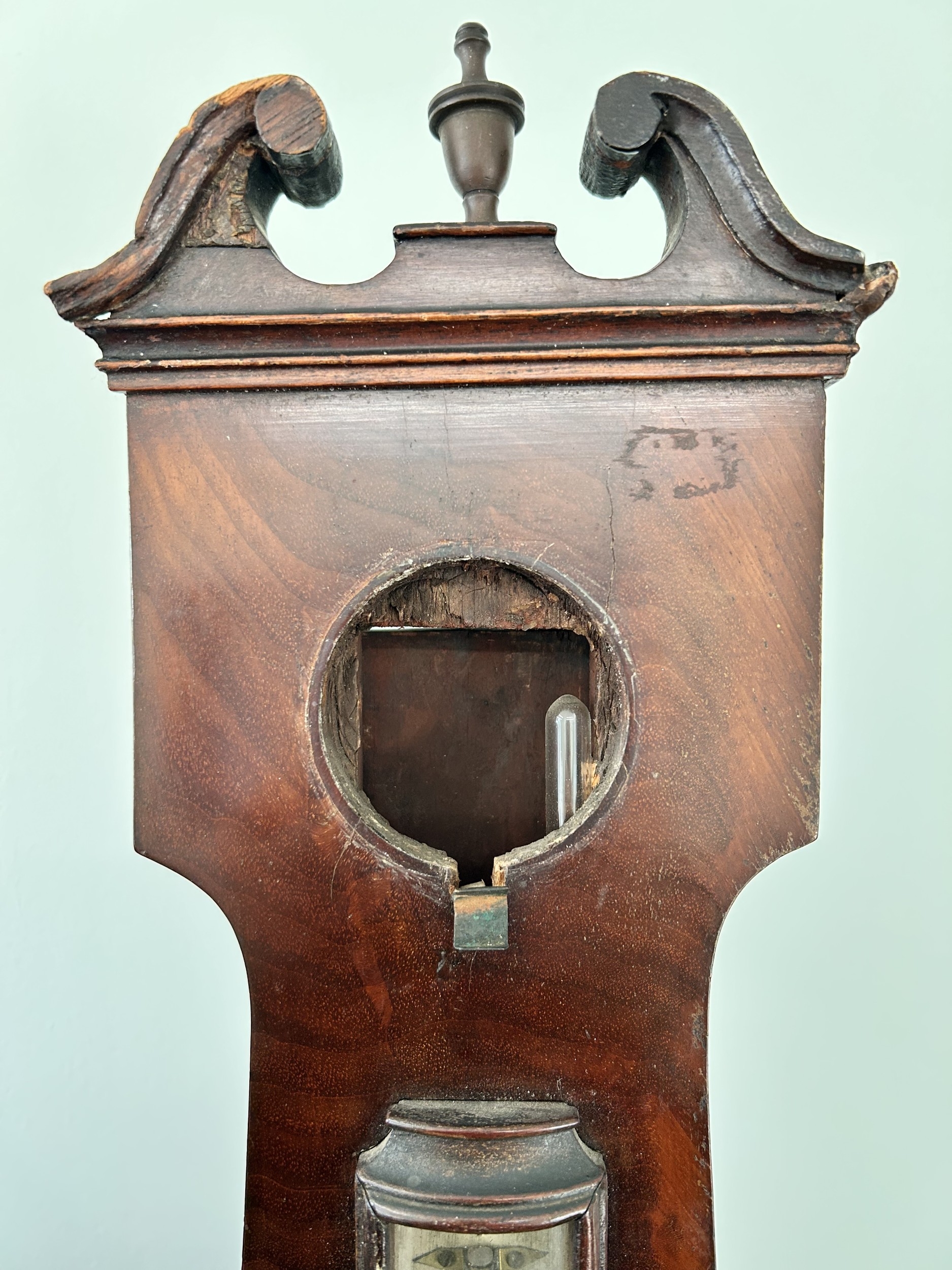 An antique mahogany banjo barometer, 43" high (not complete and requires repair)