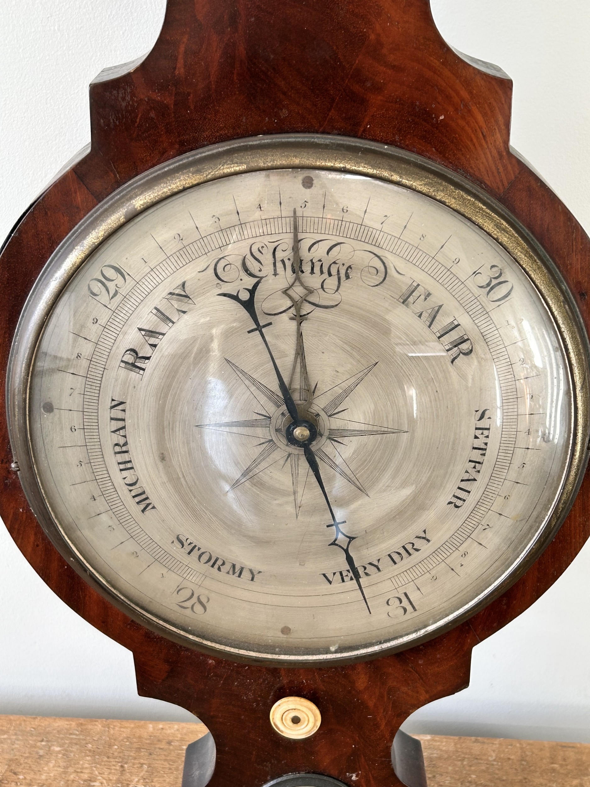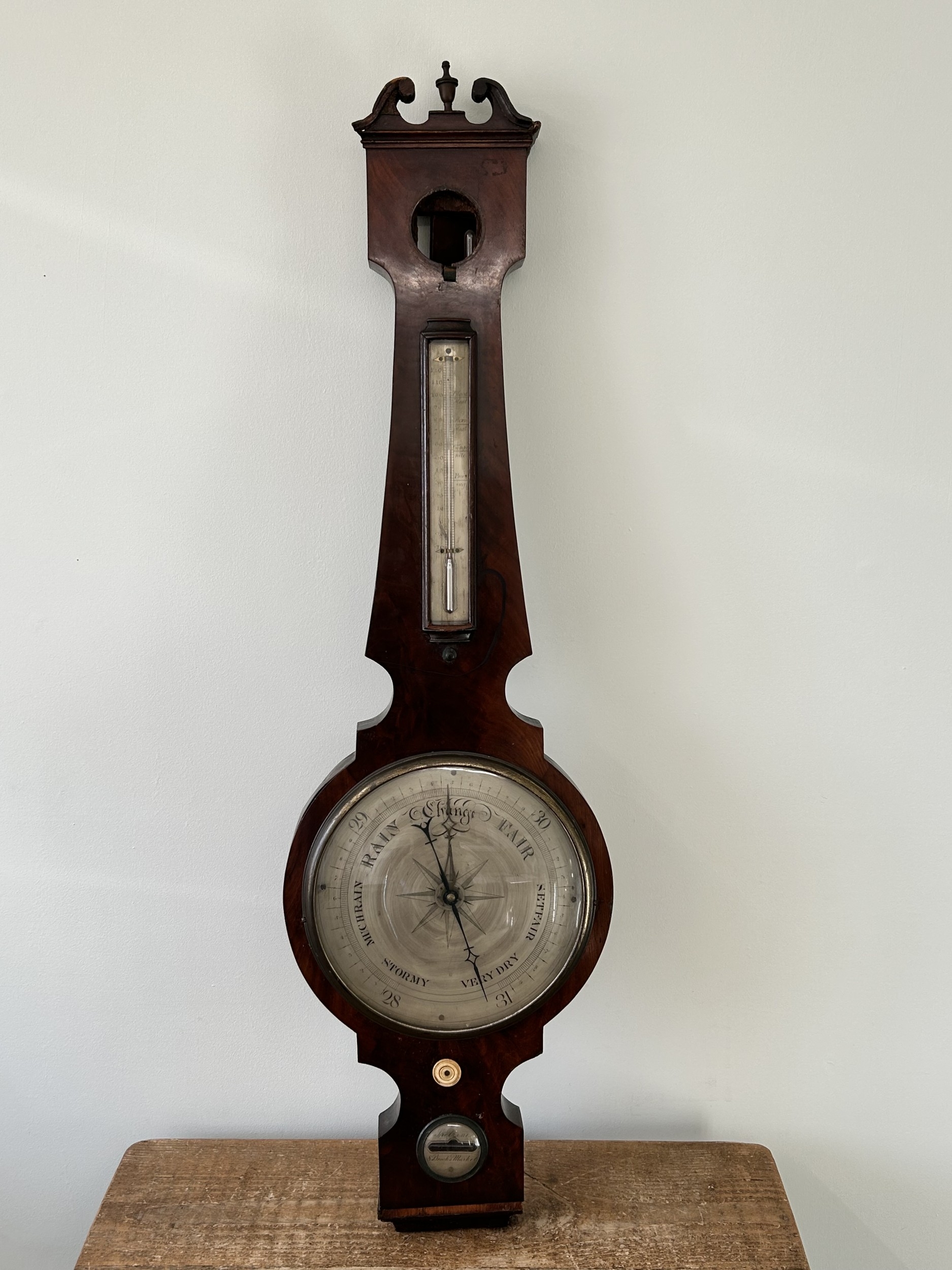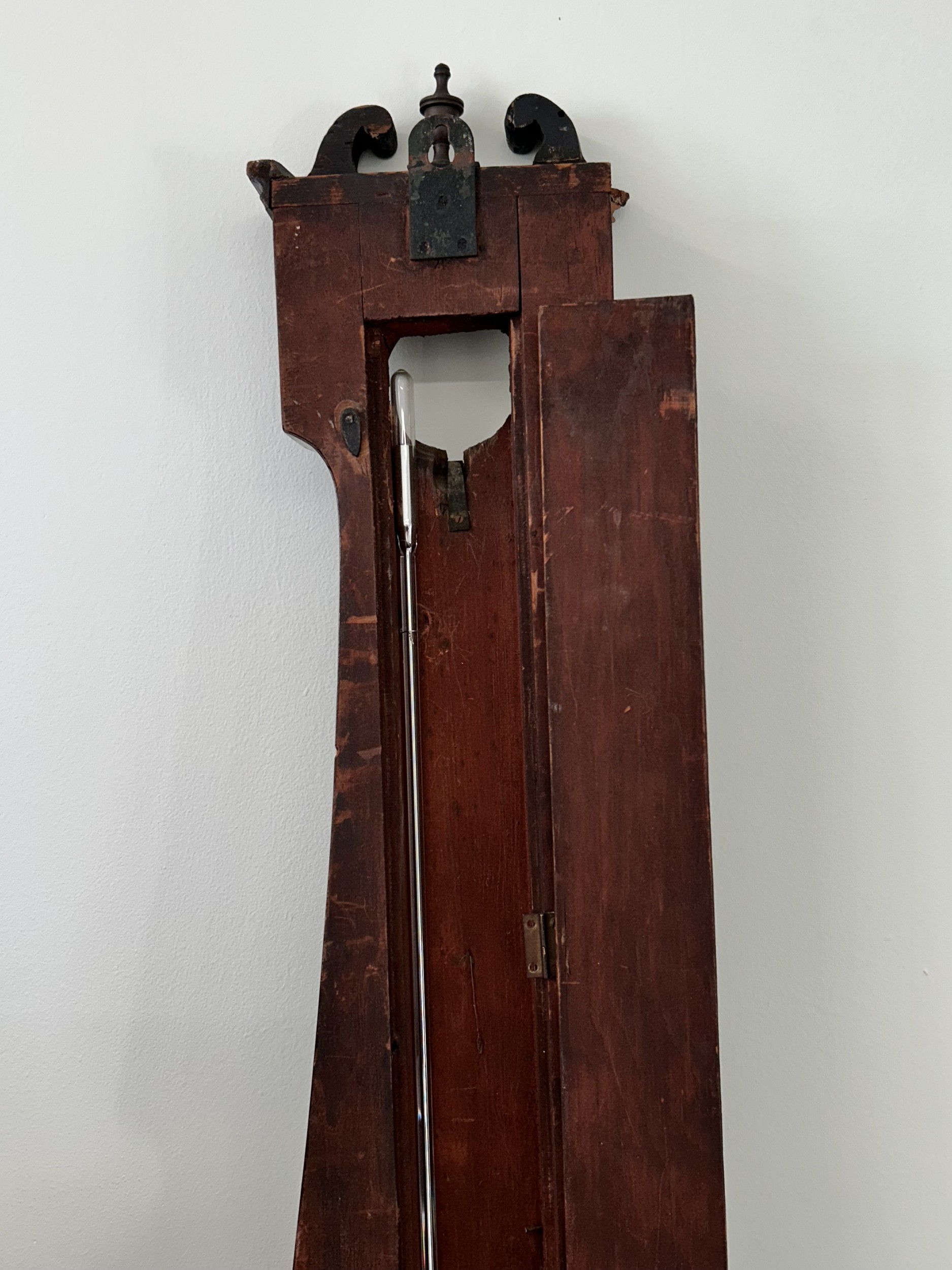 An antique mahogany banjo barometer, 43" high (not complete and requires repair)