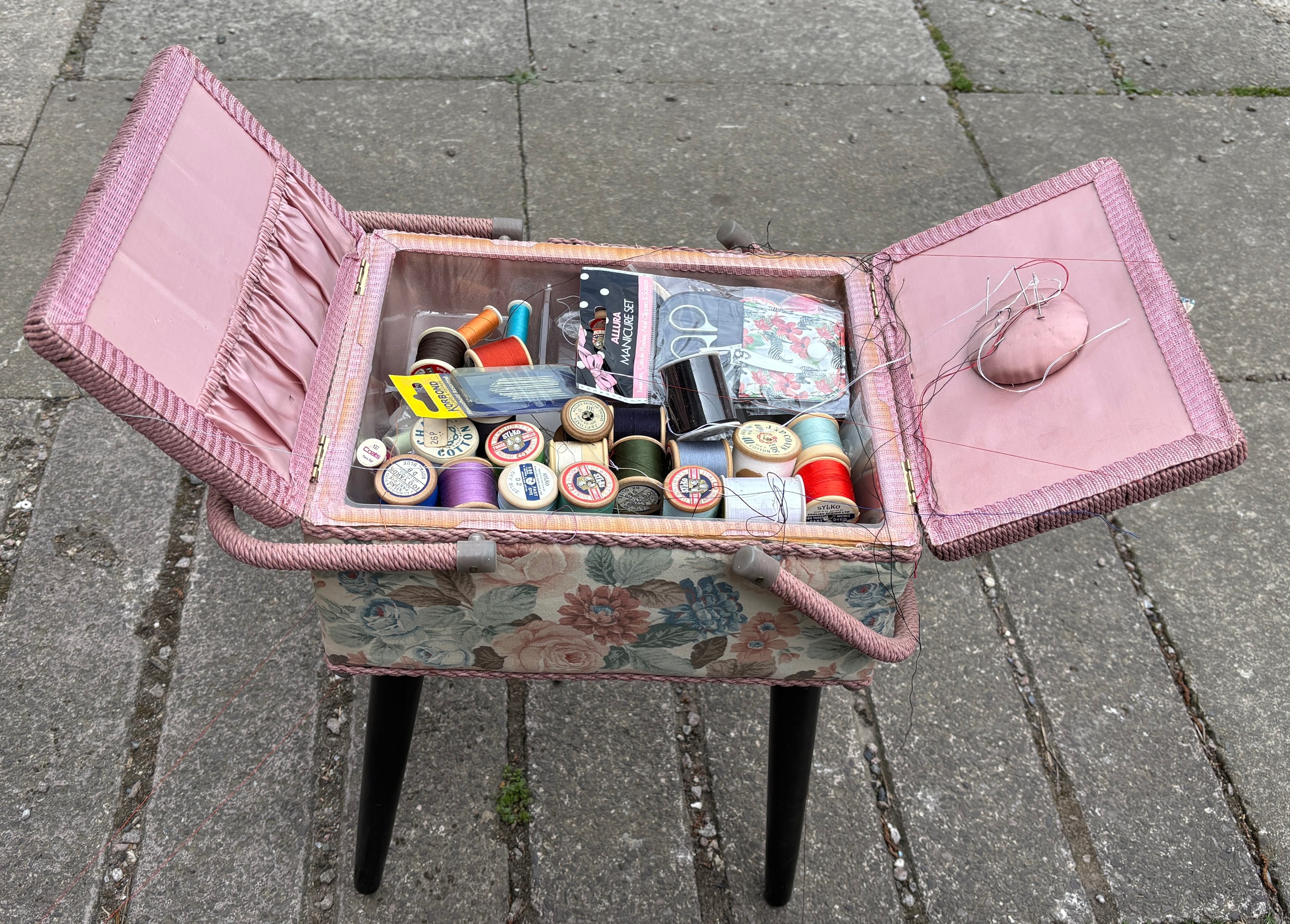 FLORAL FABRIC NEEDLEWORK BOX