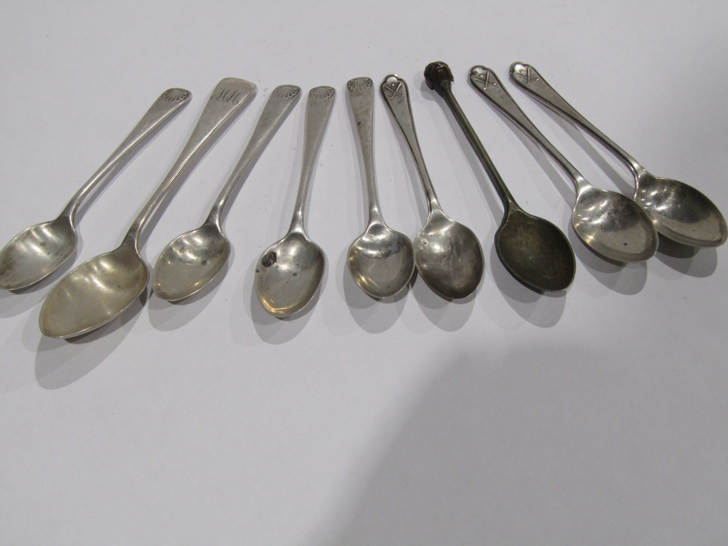 A collection of eight silver teaspoons (117 gms) and one other with dog's head finial (9)