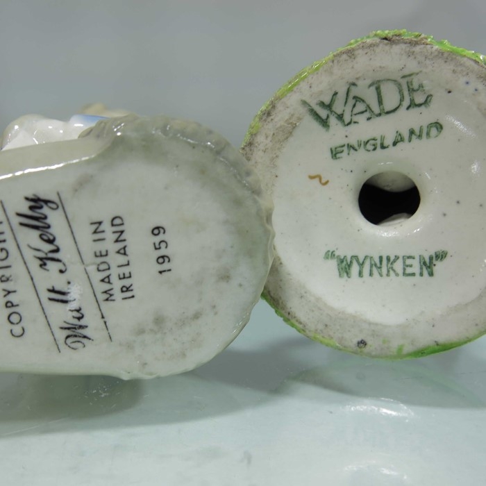 William Harper for Wade, 'Pogo' possum figure, circa 1959, printed marks, 8.5 cm high, together with a Wade figure 'Wynken' circa 1948, with applied flowers, green printed mark, 7.5cm high (2)