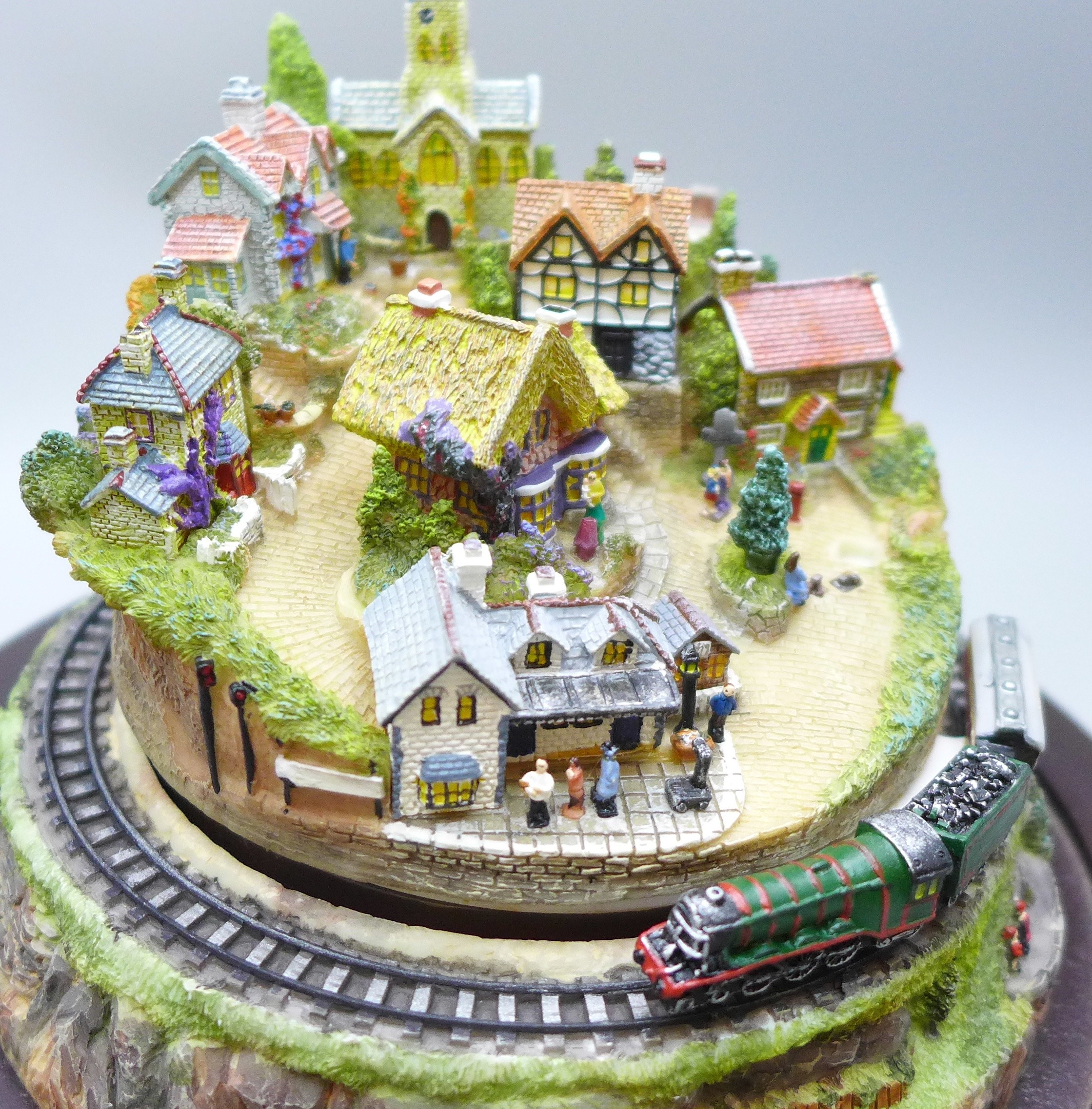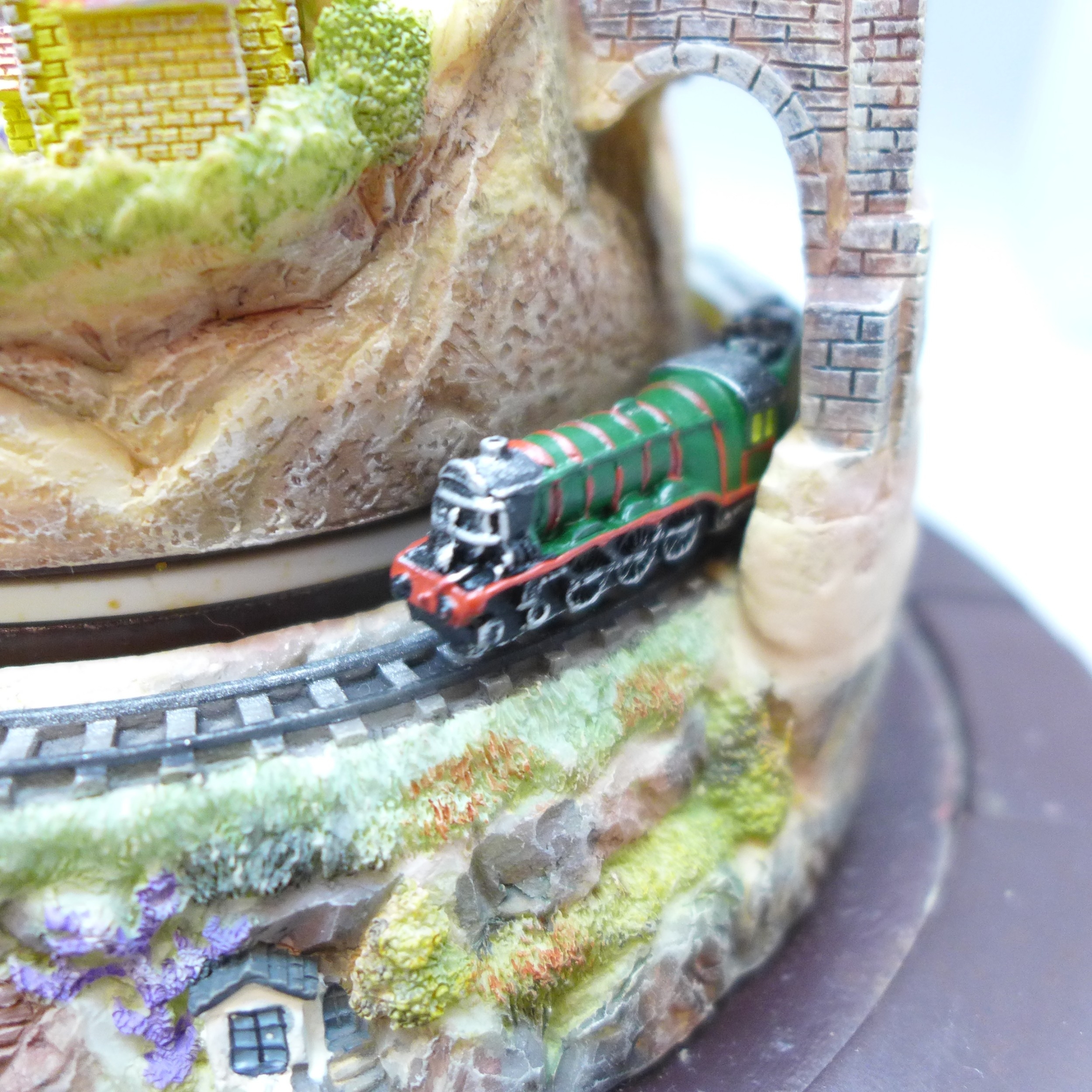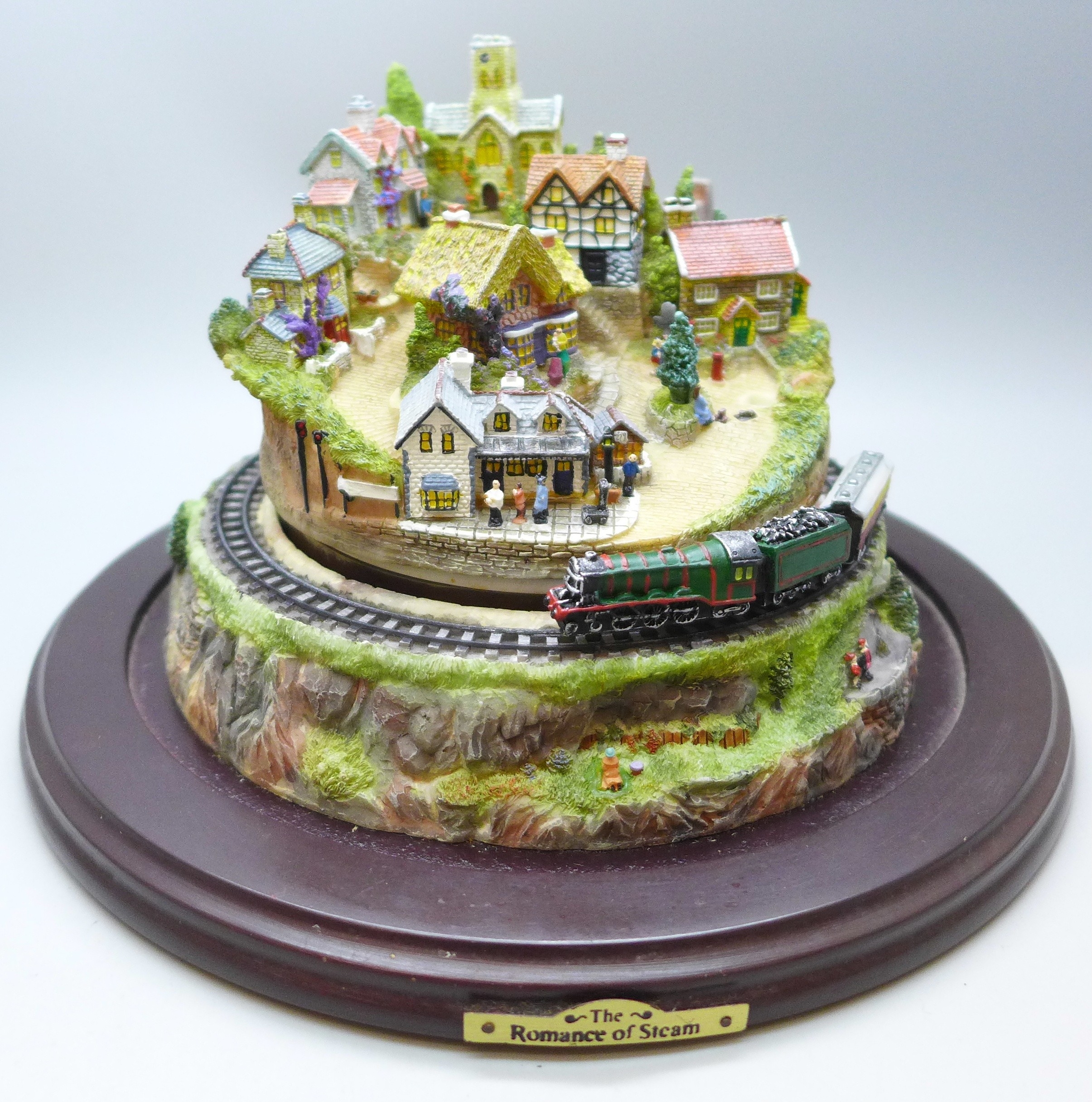 A Bradford Exchange novelty railway diorama, The Romance of Steam, Flying Scotsman with glass dome *THIS LOT IS NOT AVAILABLE FOR PACKING AND POSTING