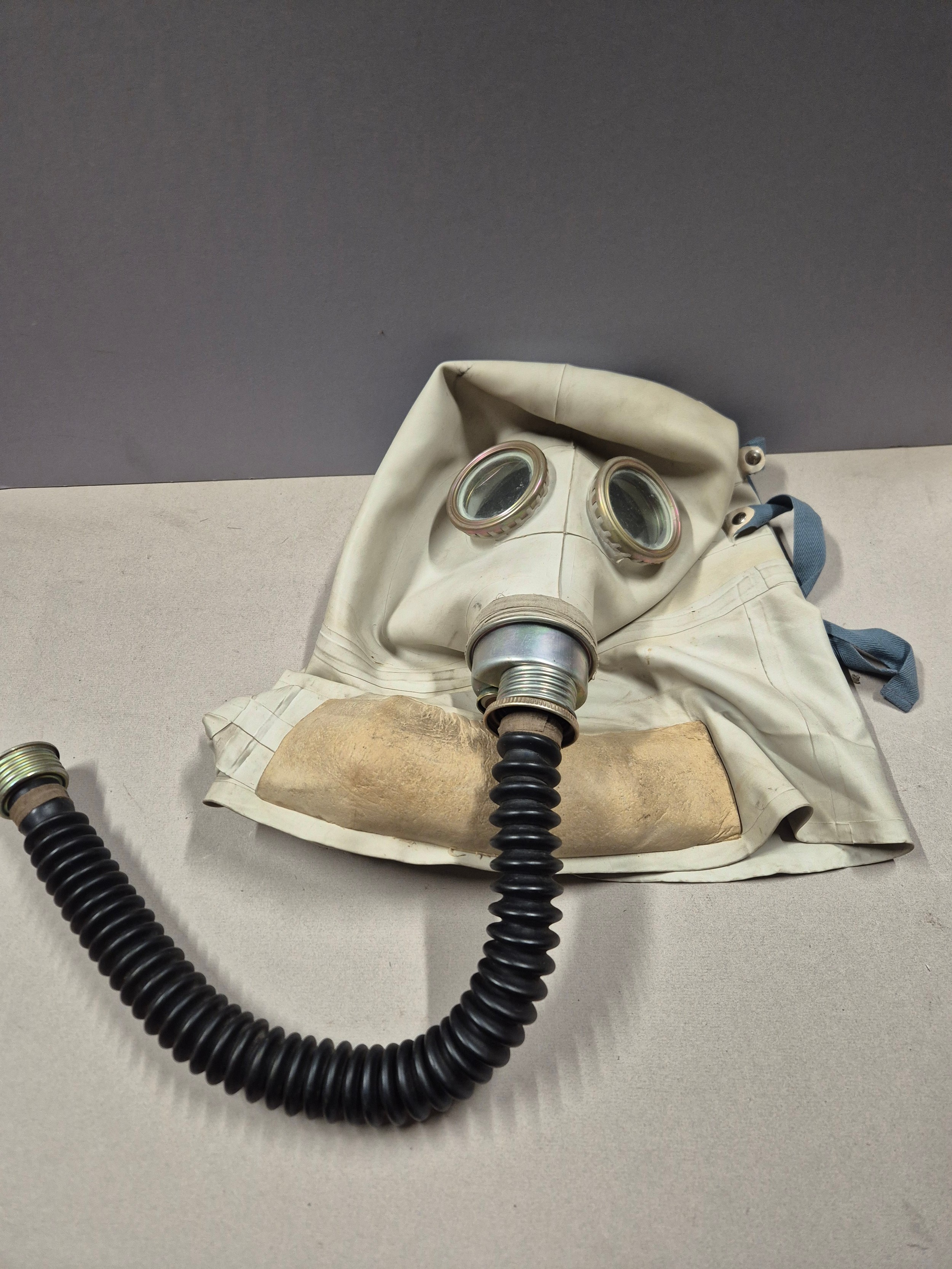 Vintage gas mask - Bulgarian or Polish licence version of the Soviet GP-5 gas mask, with elephant man mask, hose and filter marked VII-83-3.