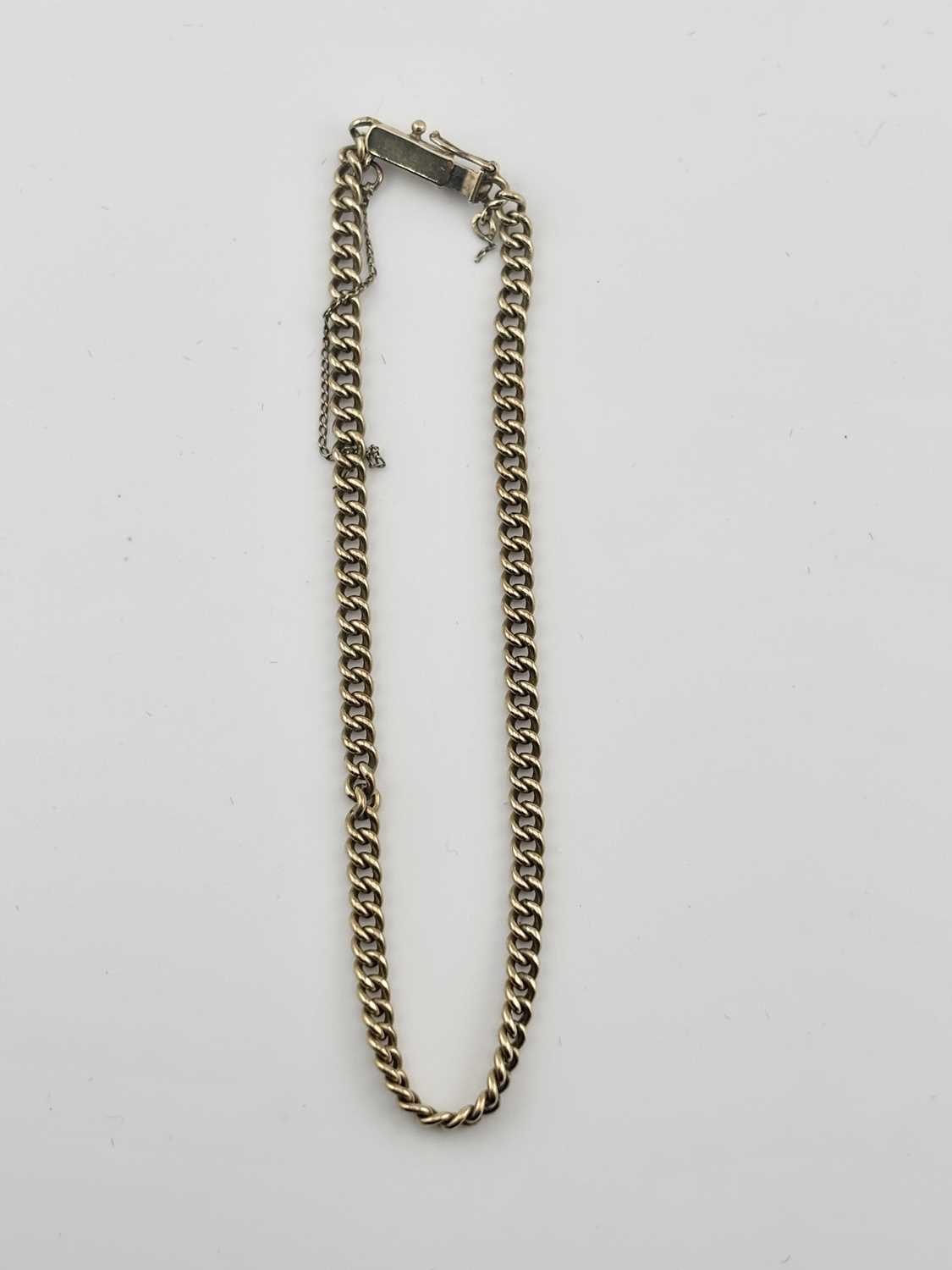 A gold-coloured metal chain link bracelet, security fastening with keeper, gross weight 8 grams (1)