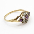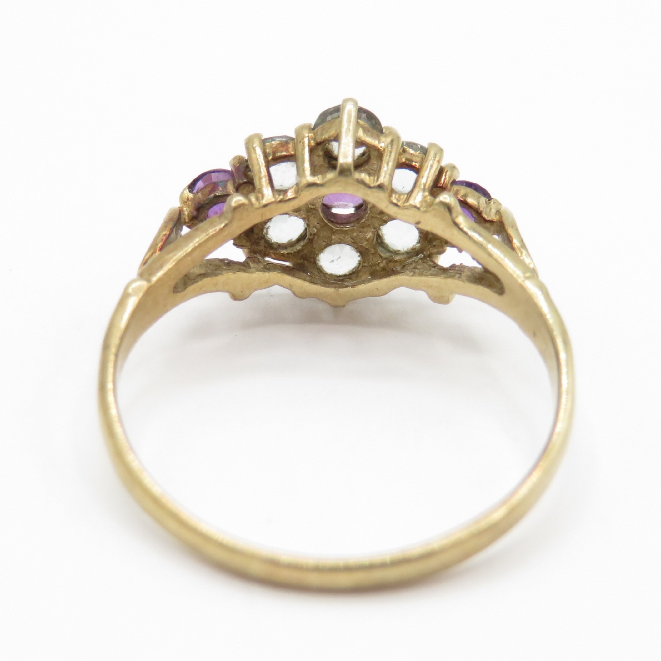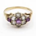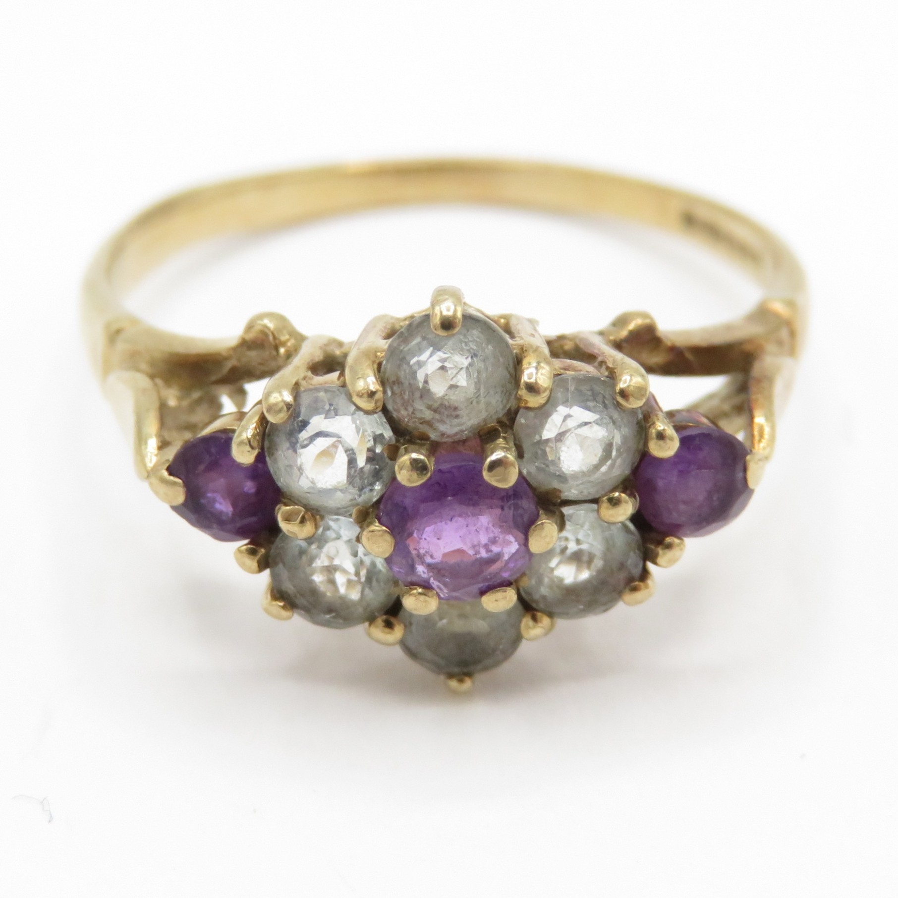 9ct gold amethyst and quartz cluster ring (1.9g) Size M 1/2