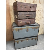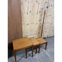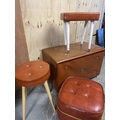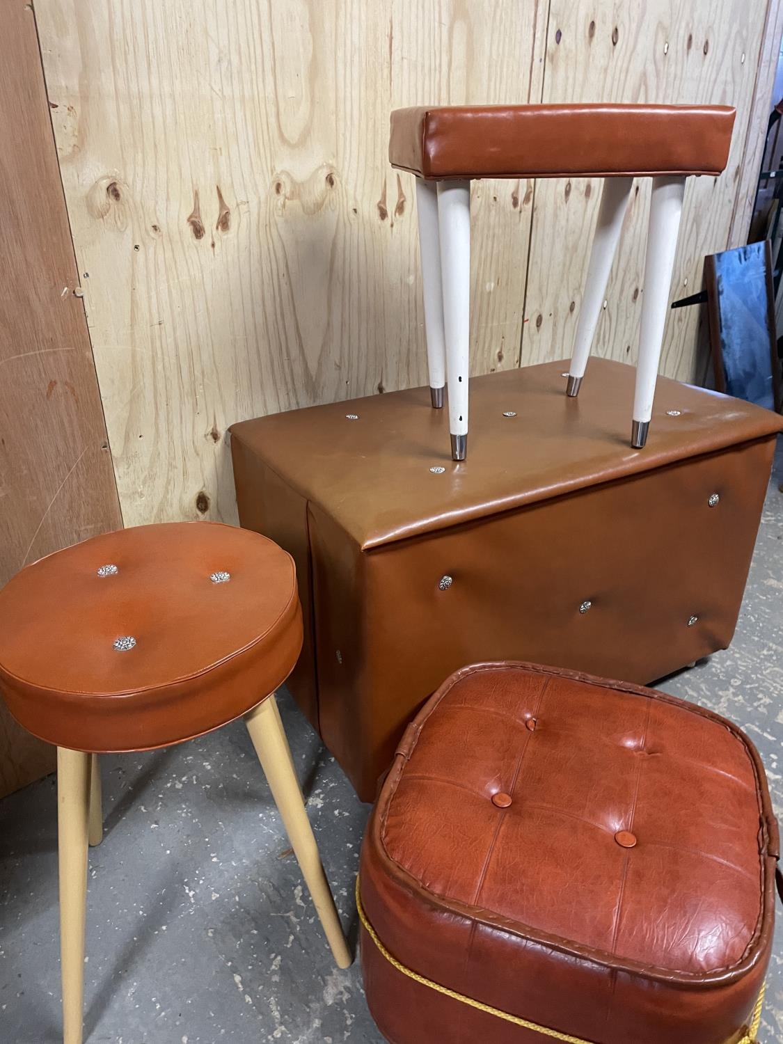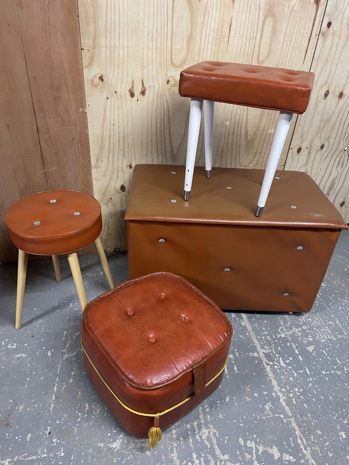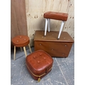 A Orange / brown retro ottoman together with three stools
