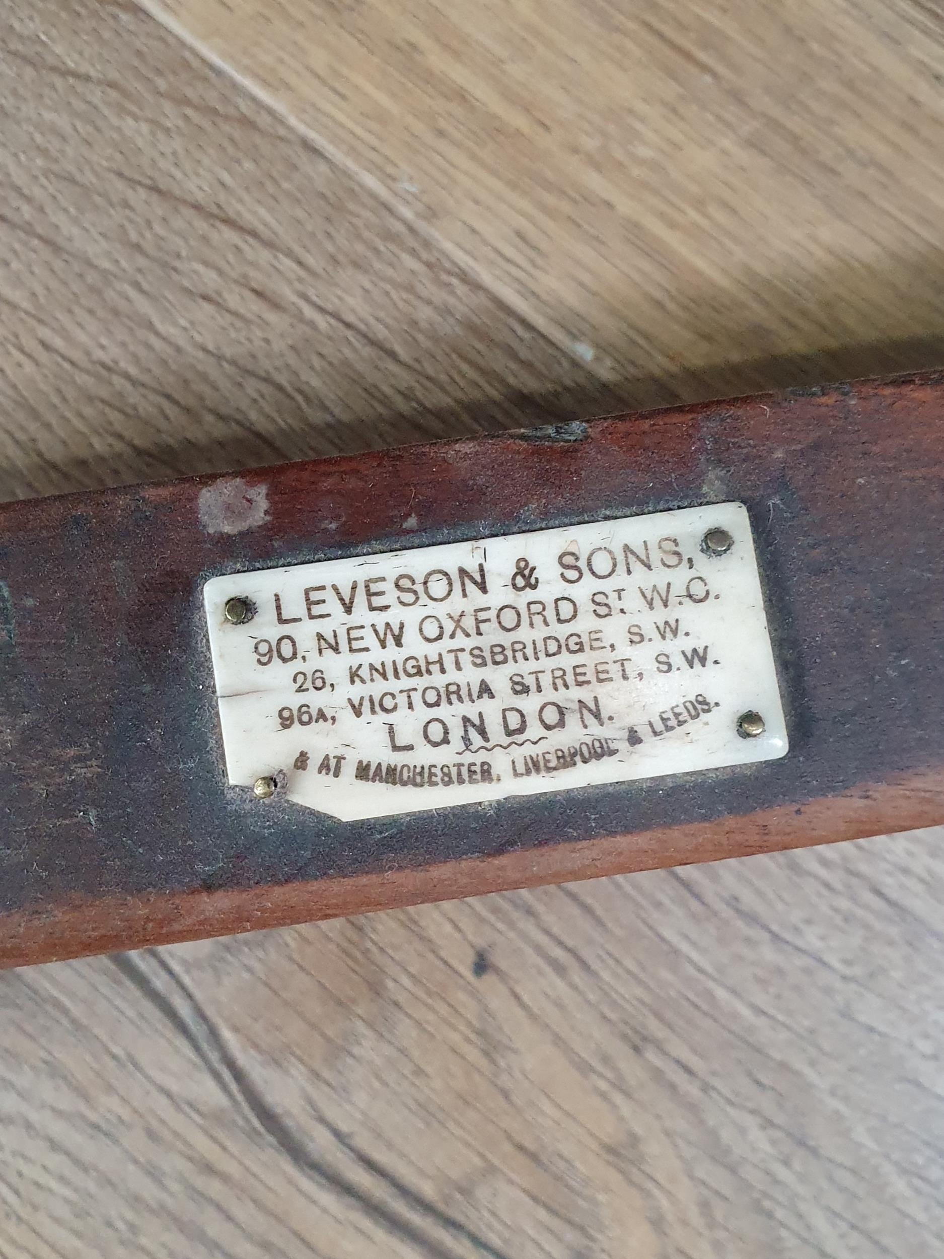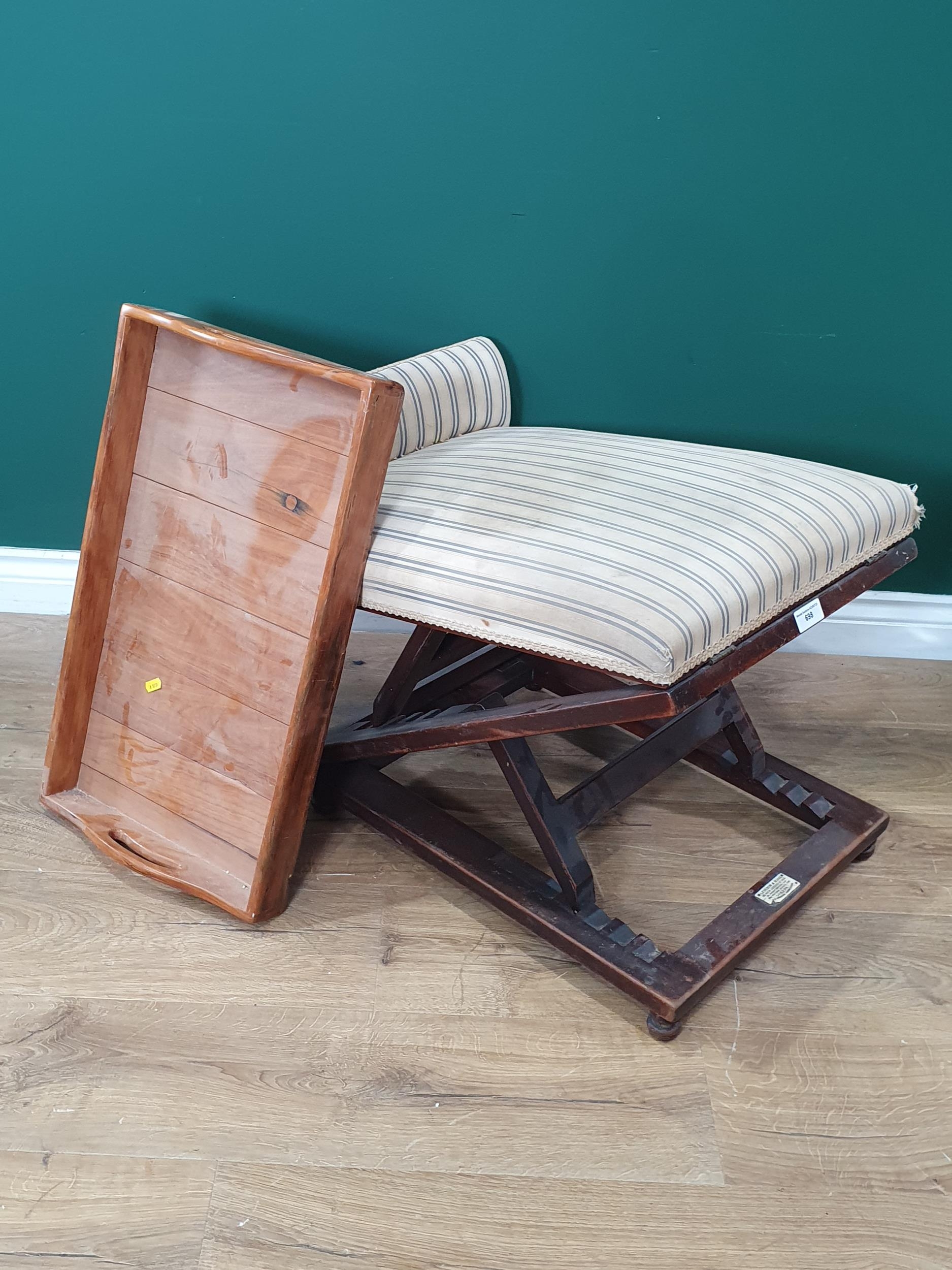 A folding Gout Stool by Leveson & Son, London and an olive wood Tray