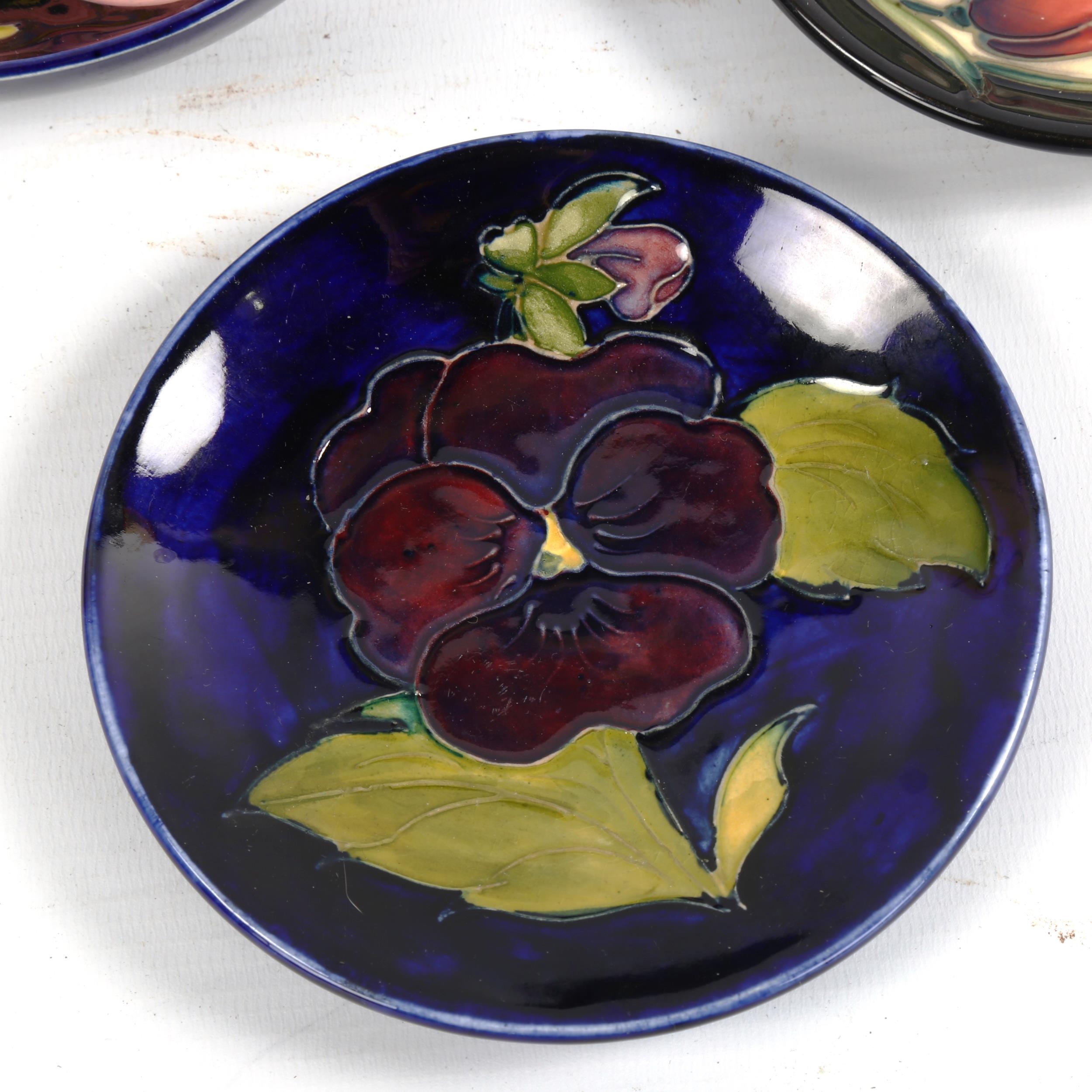 MOORCROFT POTTERY - a Magnolia design bowl, diameter 14cm, and 2 other small Moorcroft Potter pin dishes (3)
