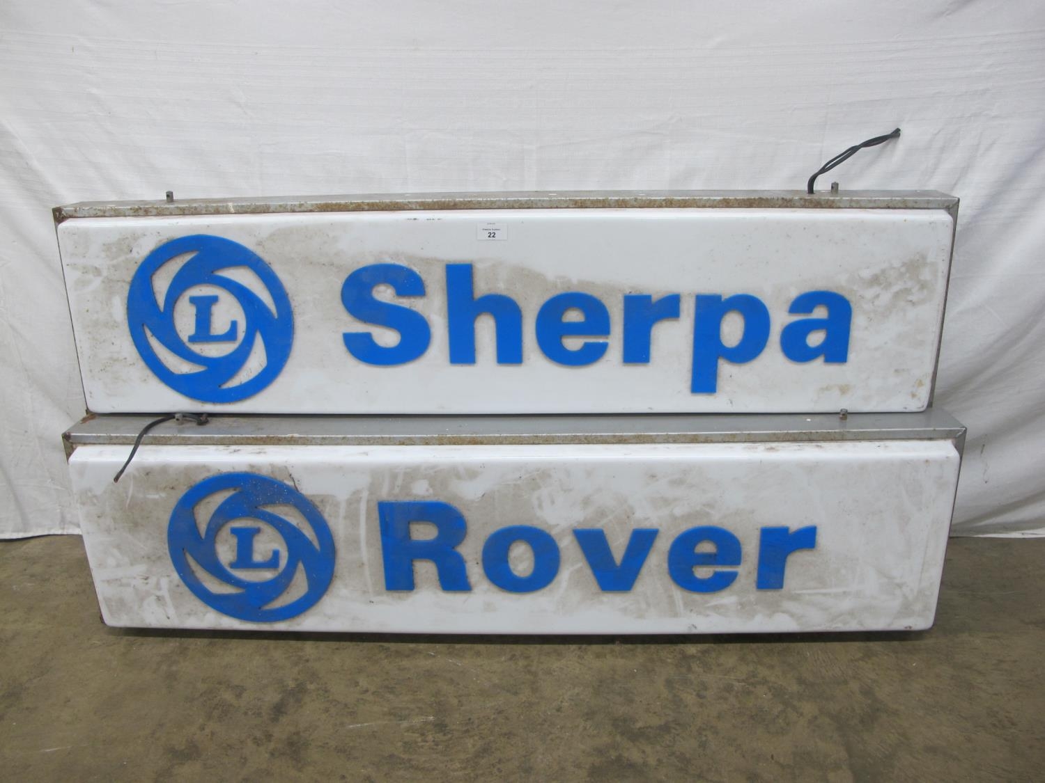 Two Leyland light up dealership signs for Rover and Sherpa - 123cm x 15cm x 31cm tall (untested)