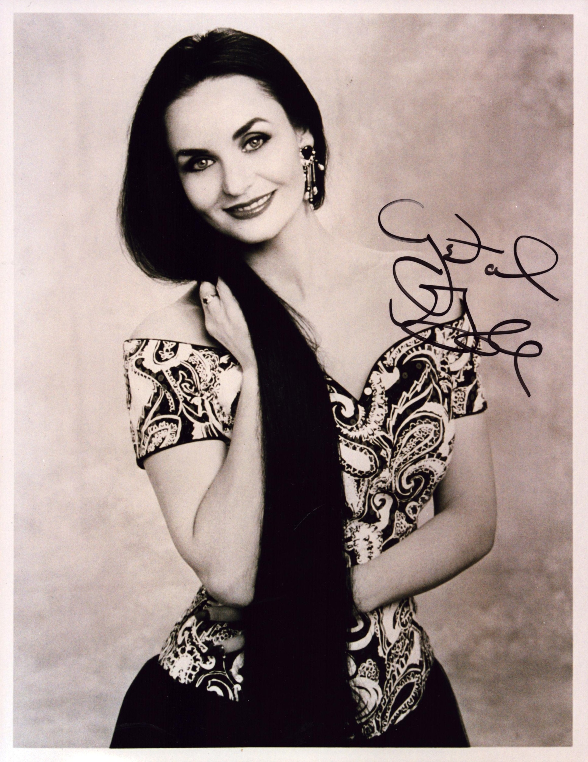 Crystal Gayle signed 10x8inch black and white photo.