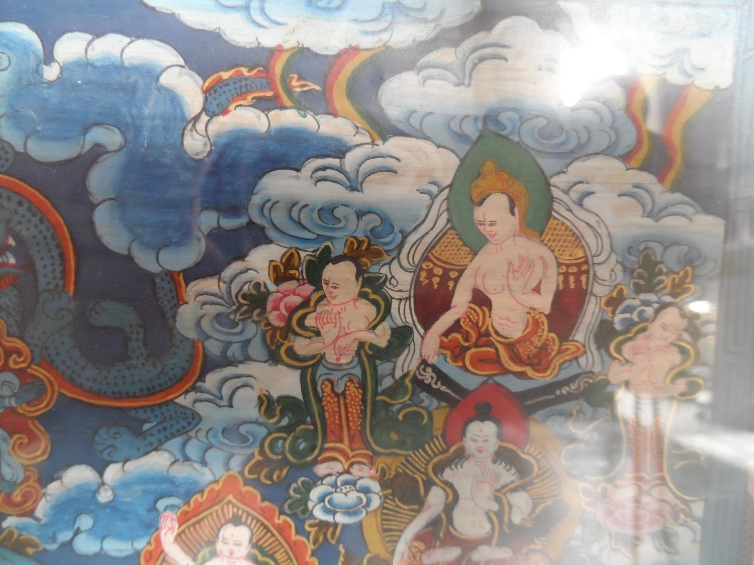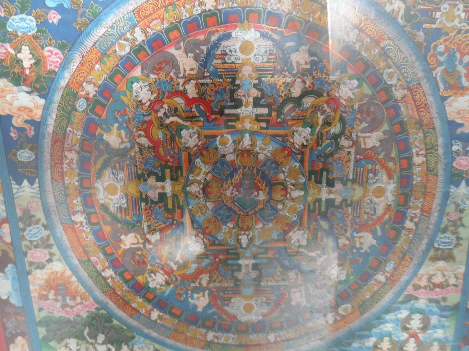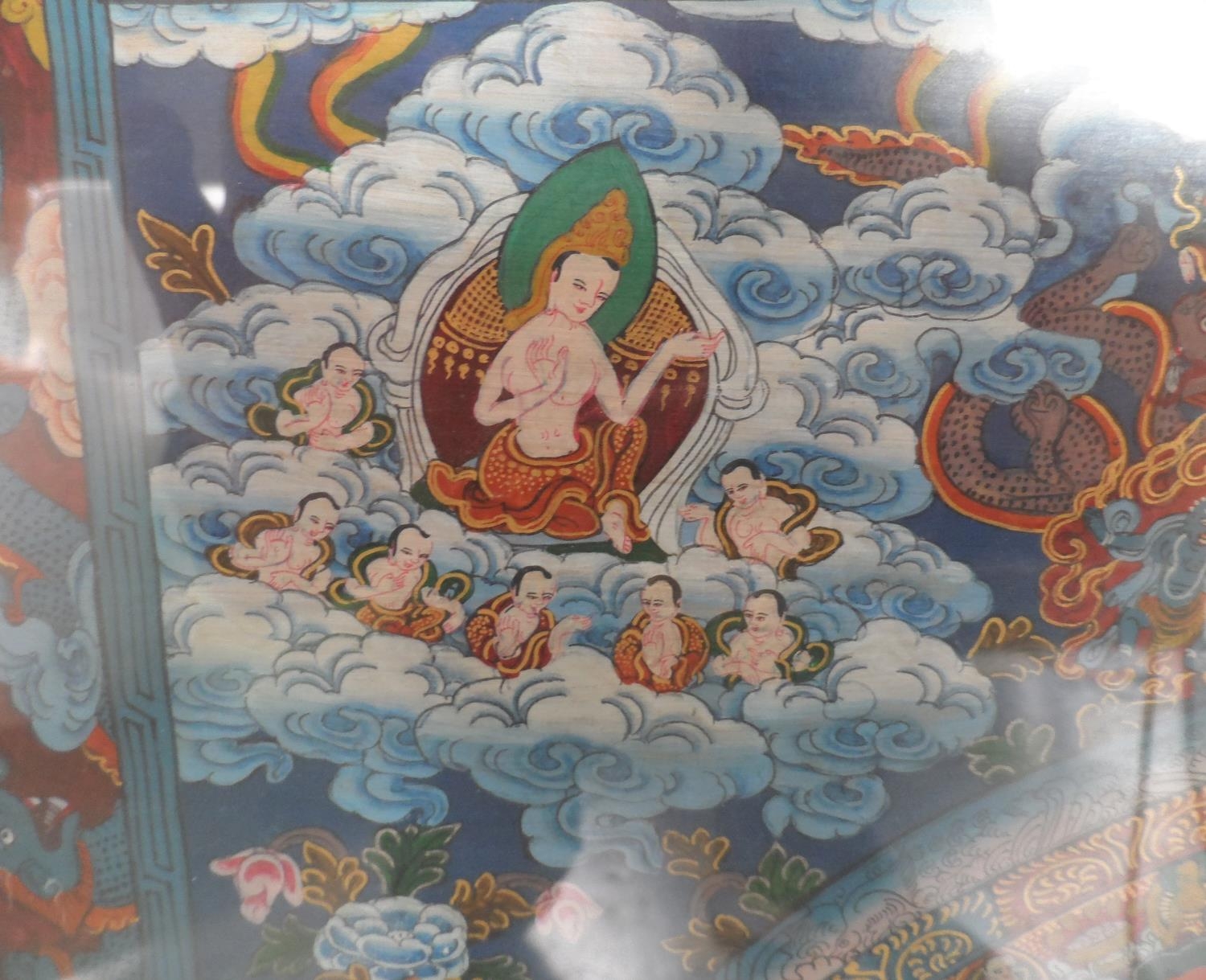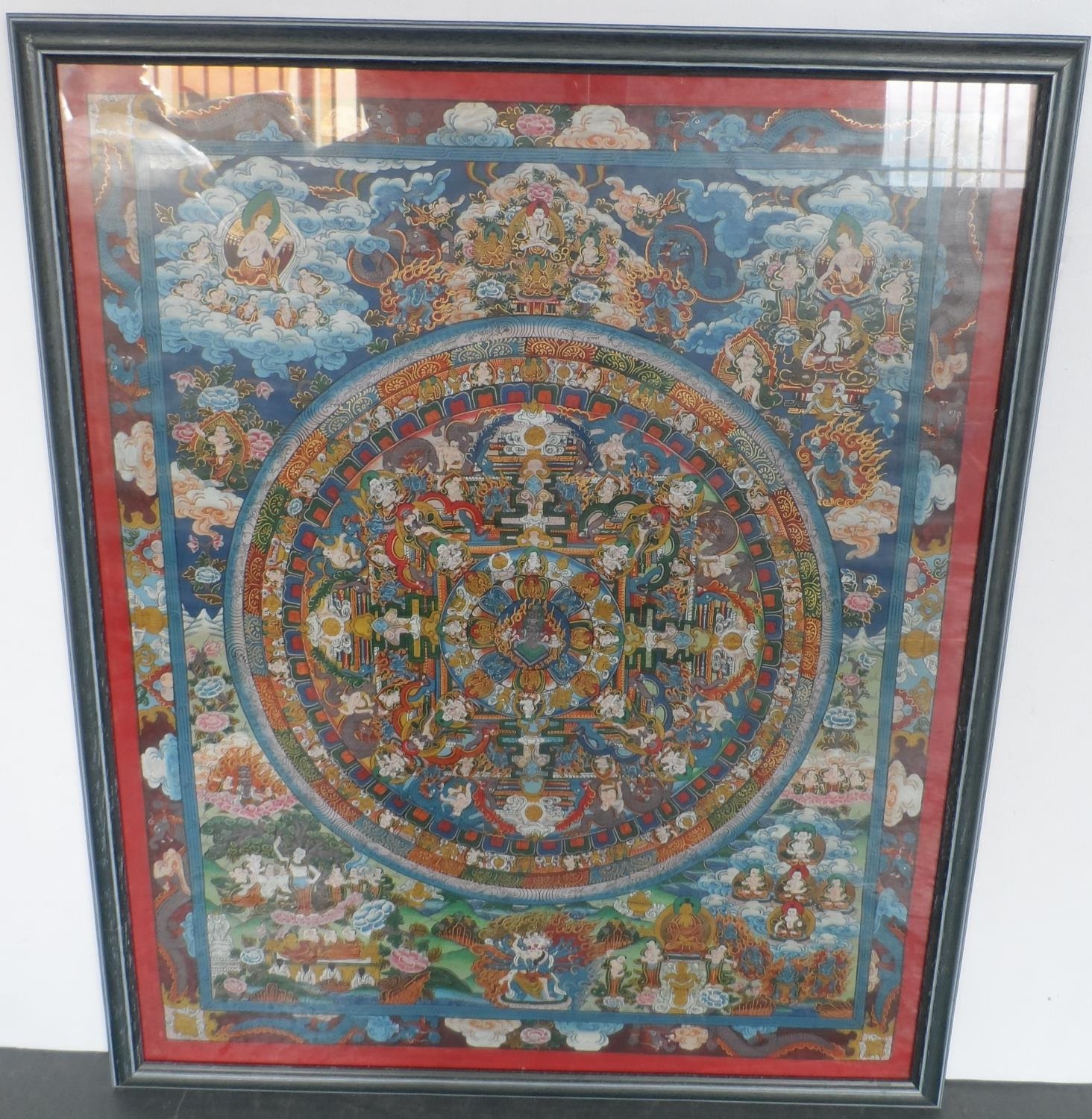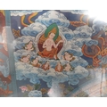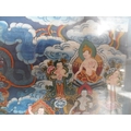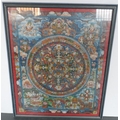 Finely detailed, Asian gouache painting with huge amount of figures and symbols, framed and glazed,