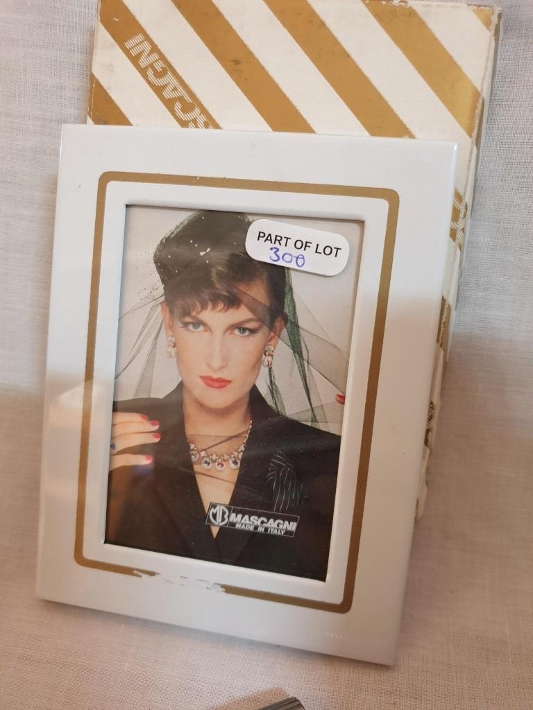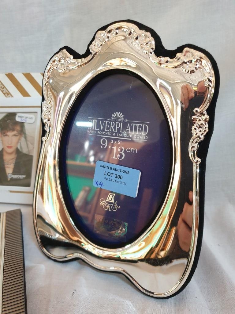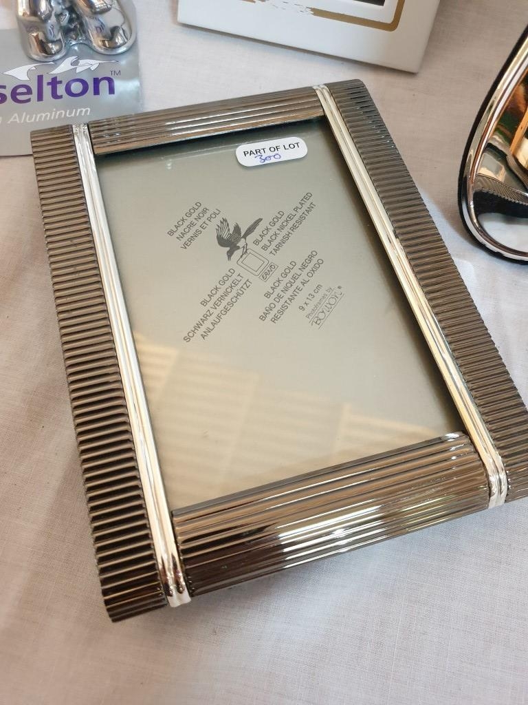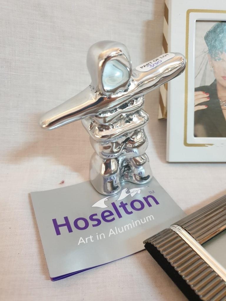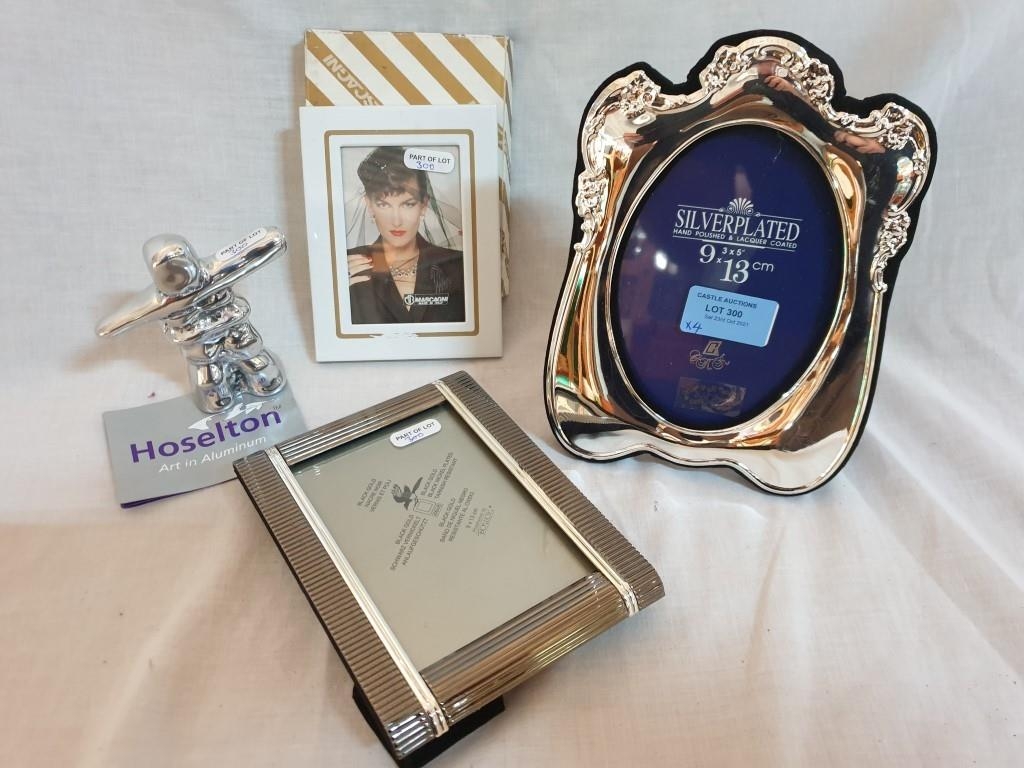 Decorative Silver plated Picture Frame (20cm x 14.5cm Overall) 2 x Other Picture Frames and a "Hoselton" Aluminium Art Figure (Hand Made in Canada) (4)