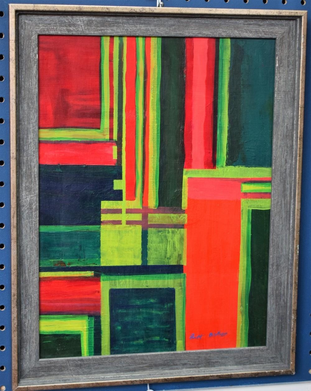 Brett Oldham (Modern British School) Art Concrete, Red, Yellow, Green signed, oil on board, 40cm x 30cm