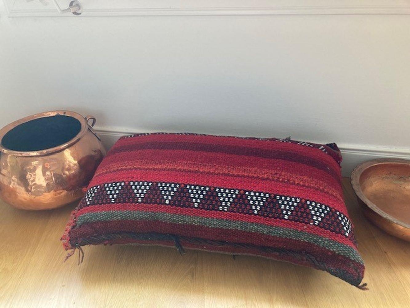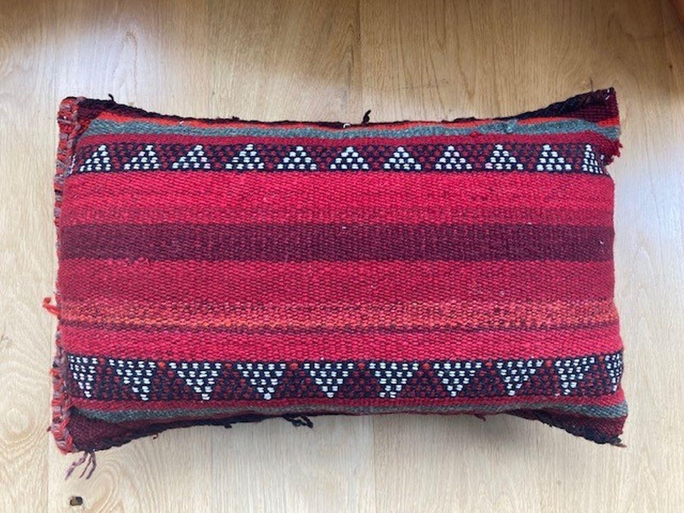 A SMALL BEDOUIN HANDWOVEN CUSHION, from Kuwait. 65 x 40cm