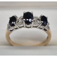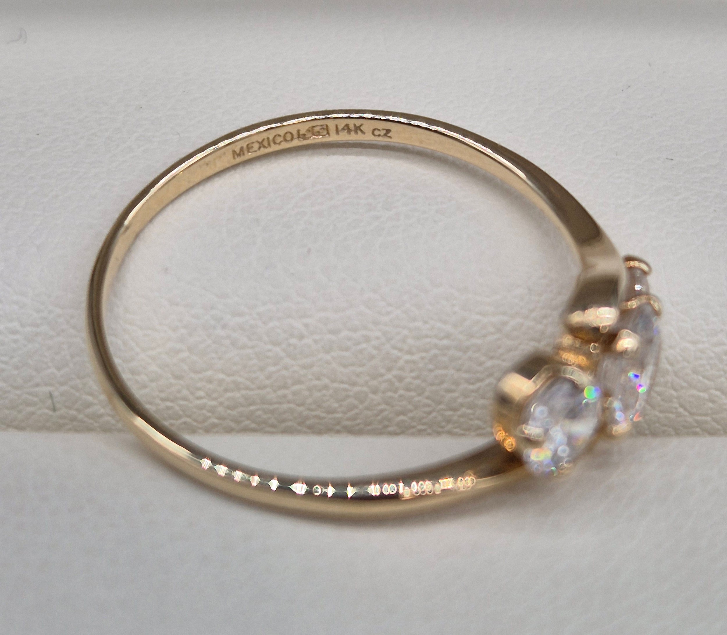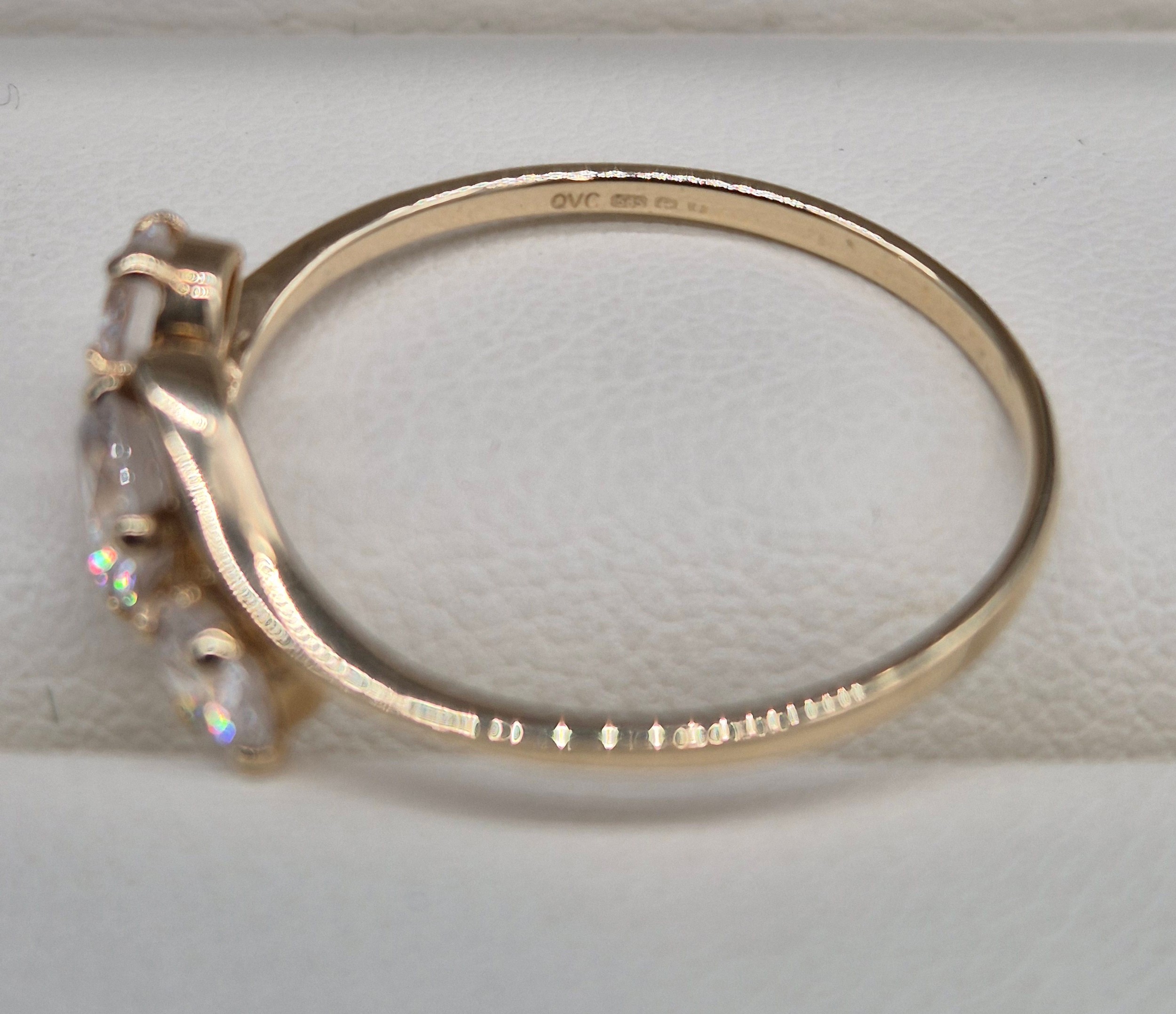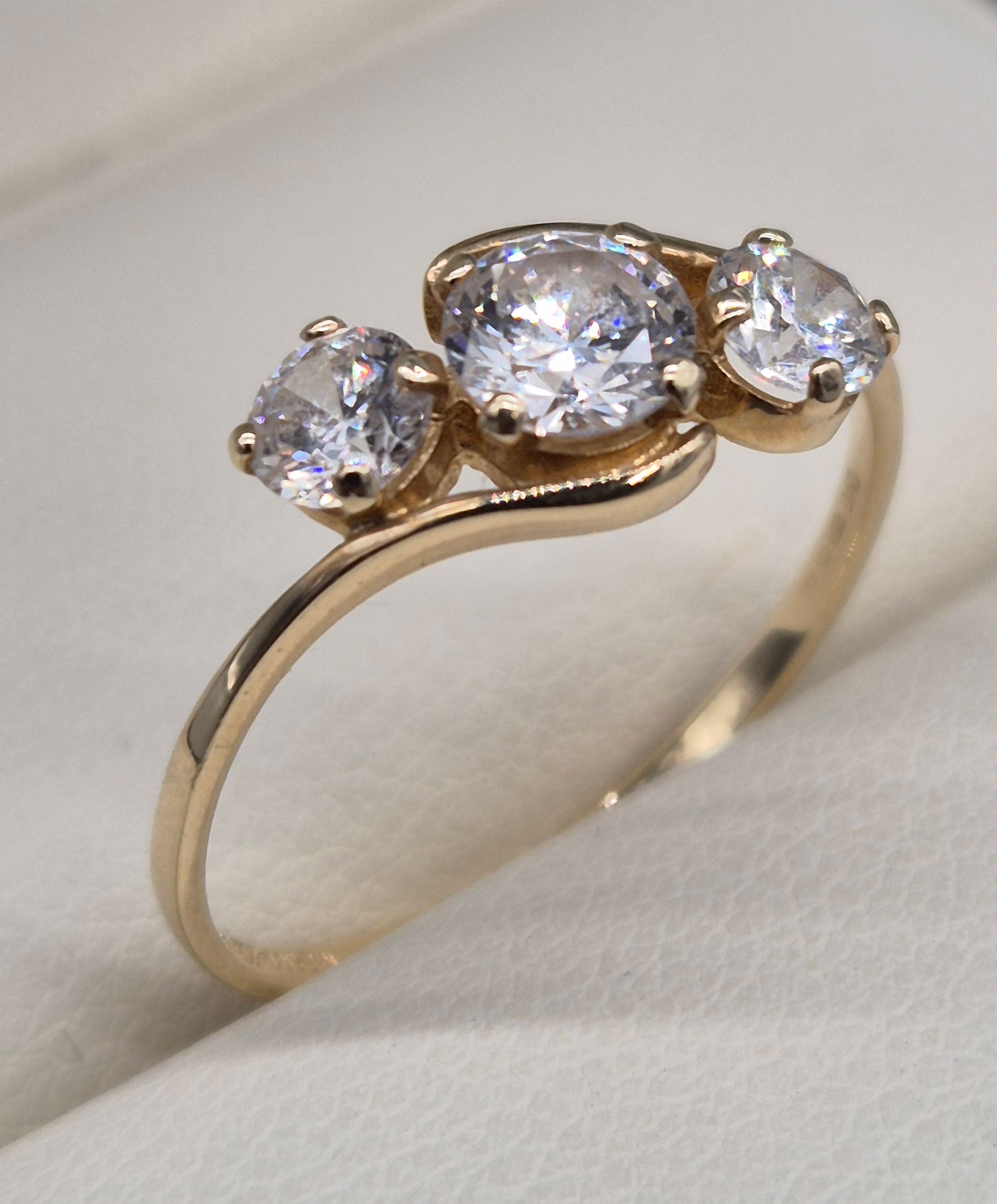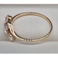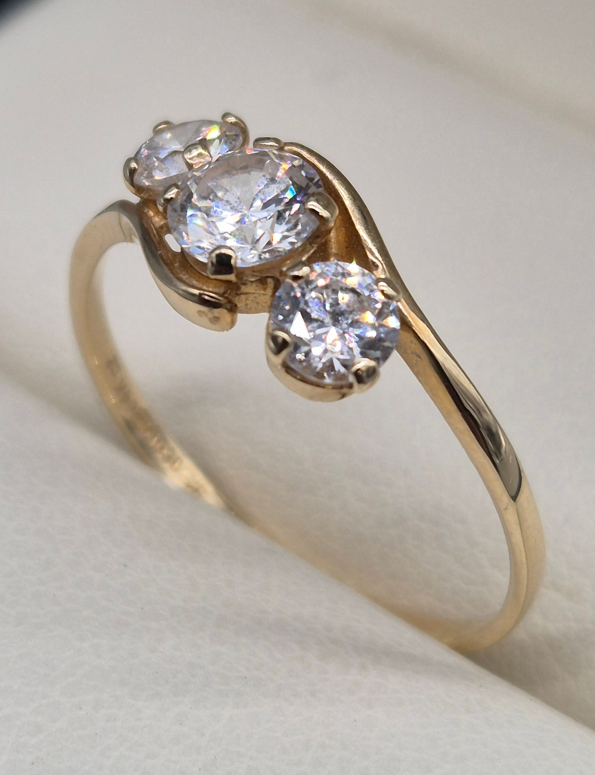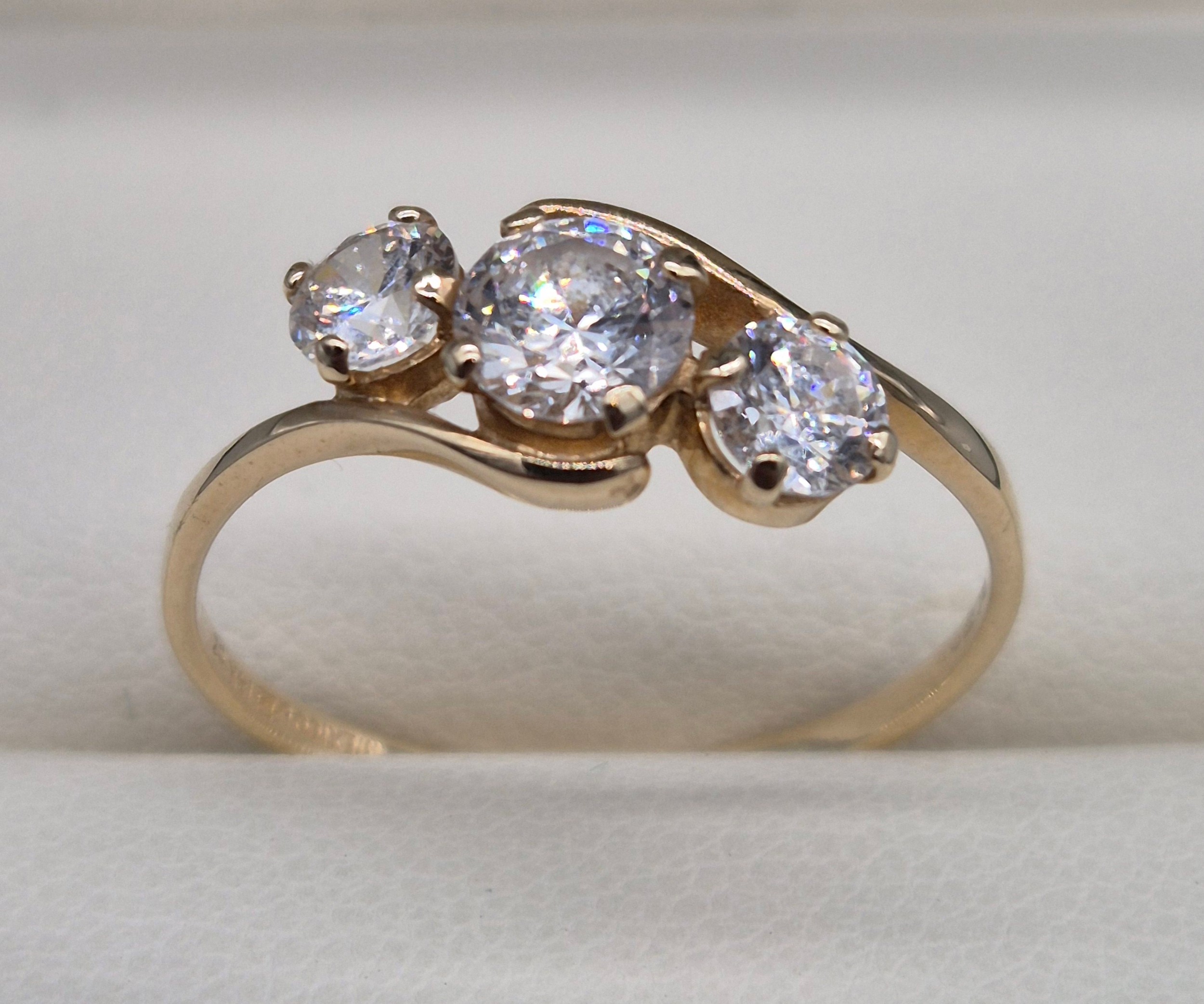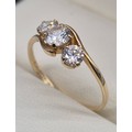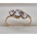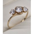 14ct yellow gold and CZ Stone ring. Three round cut CZ Stones. 1.76grams. Ring size Q.