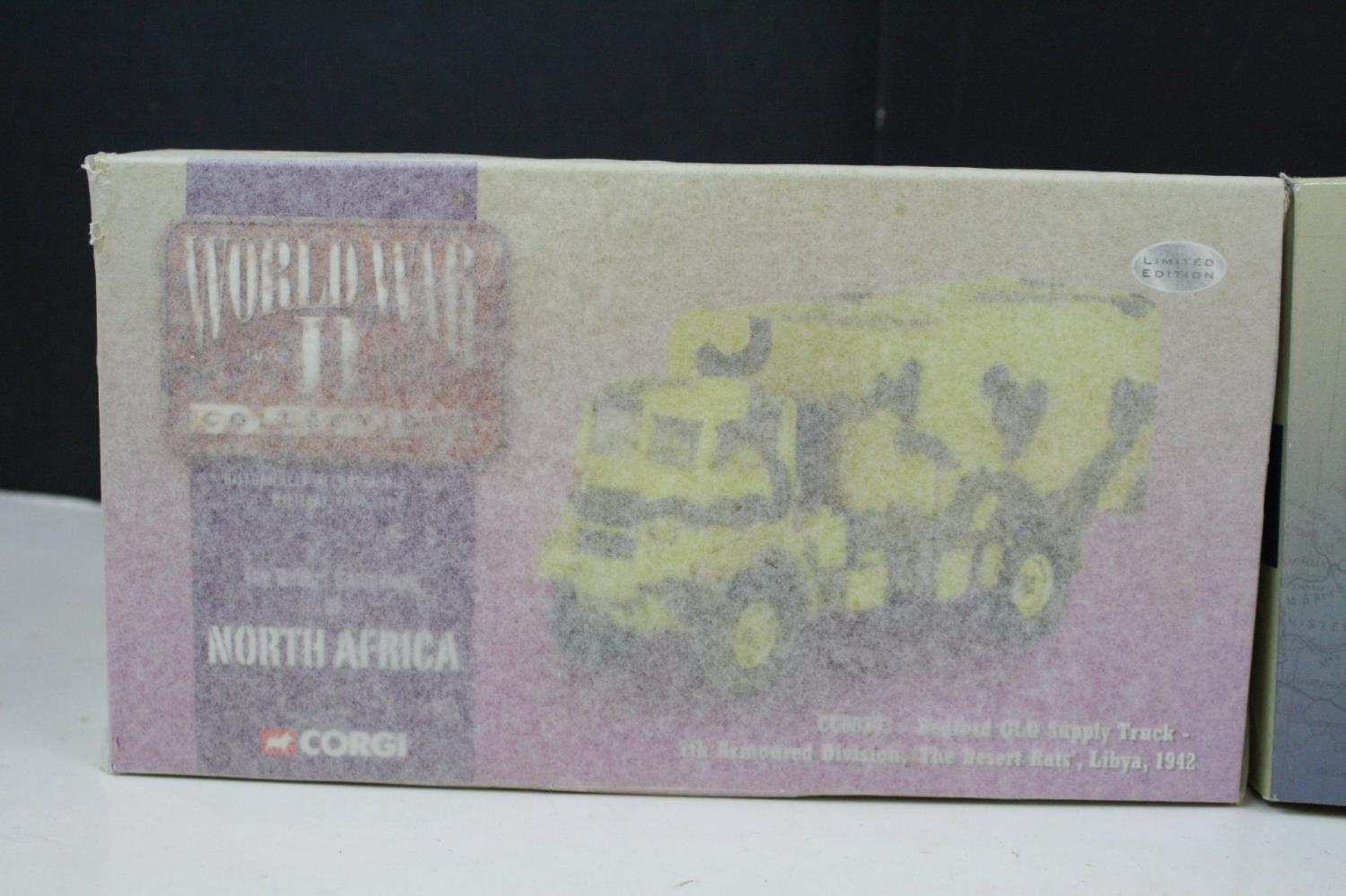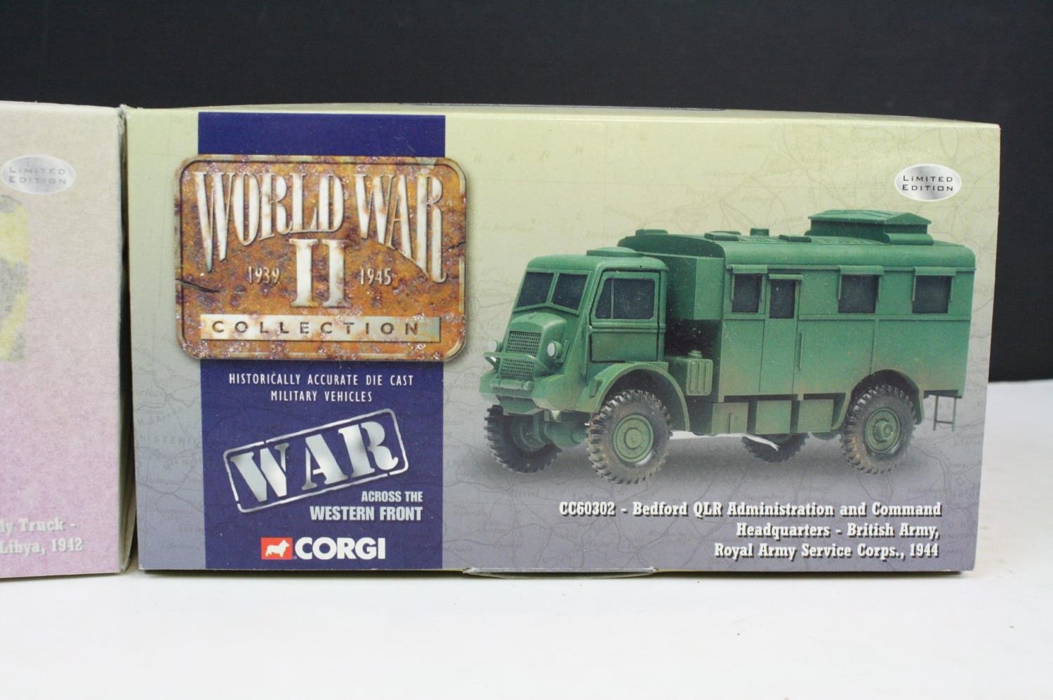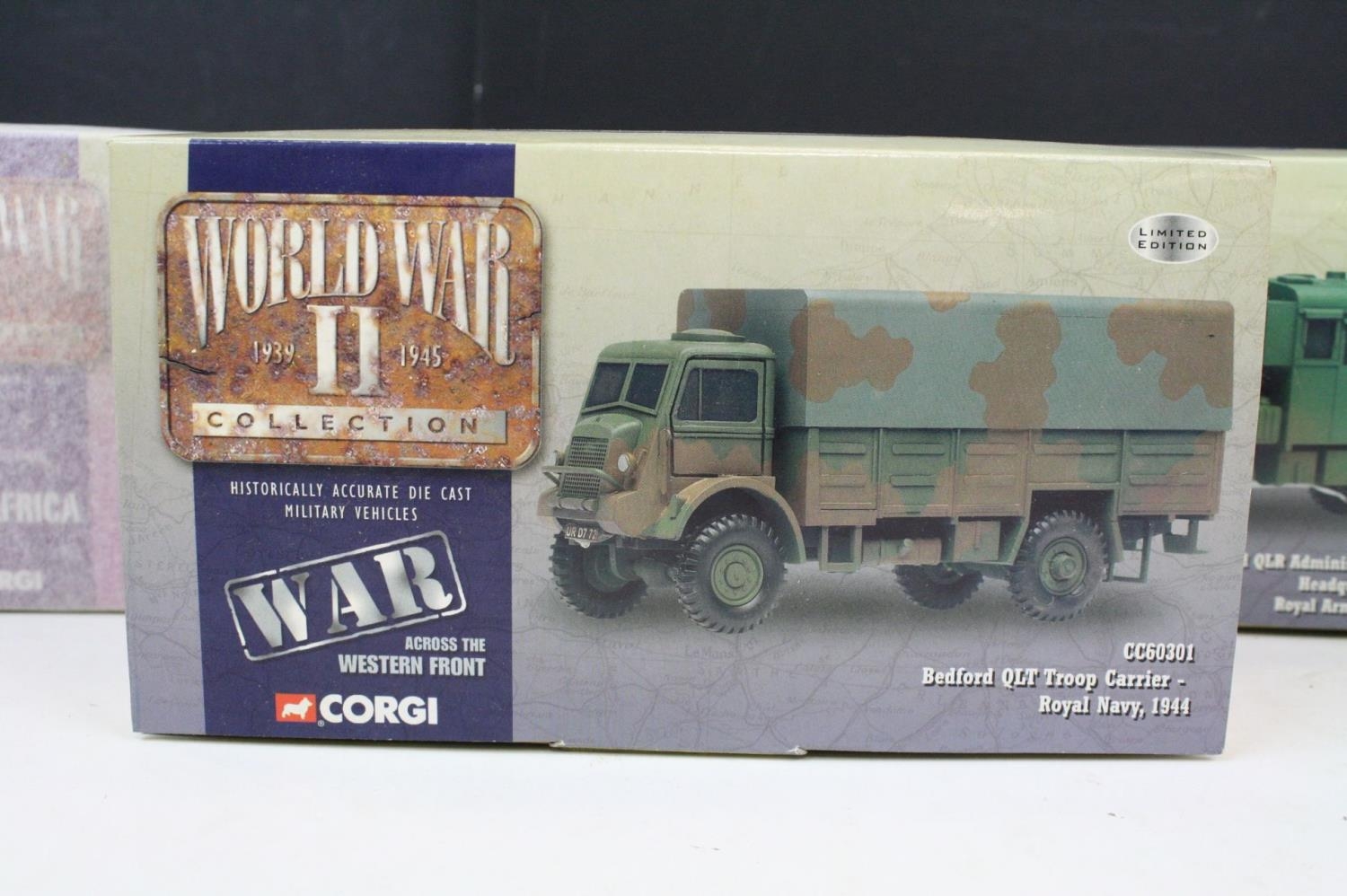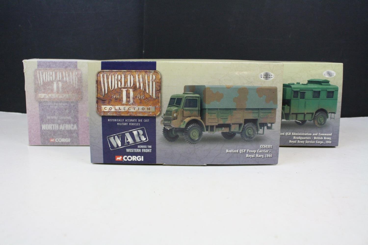 Three boxed Corgi World War II Collection to include CC60301 Bedford QLT Troop Carrier -