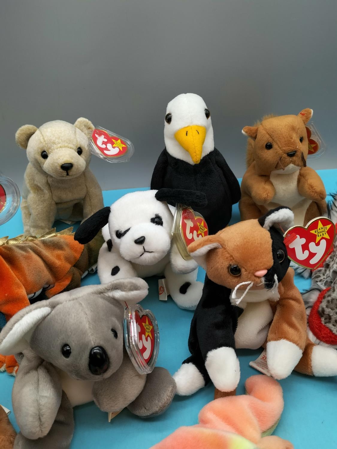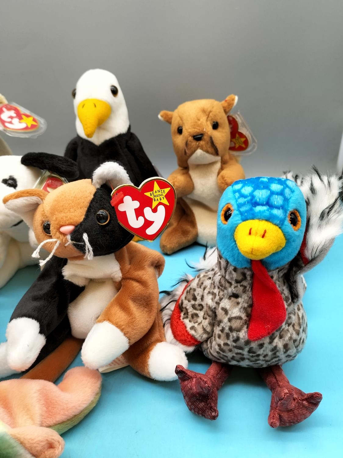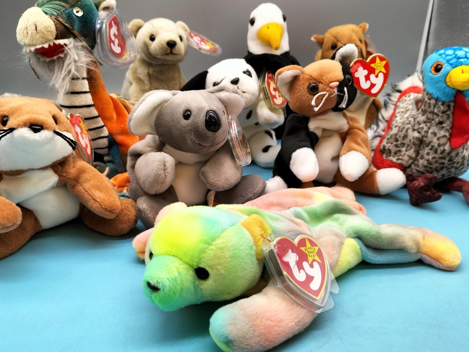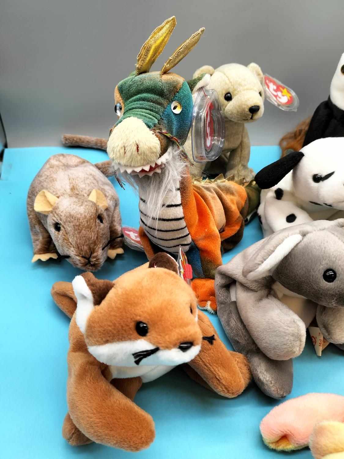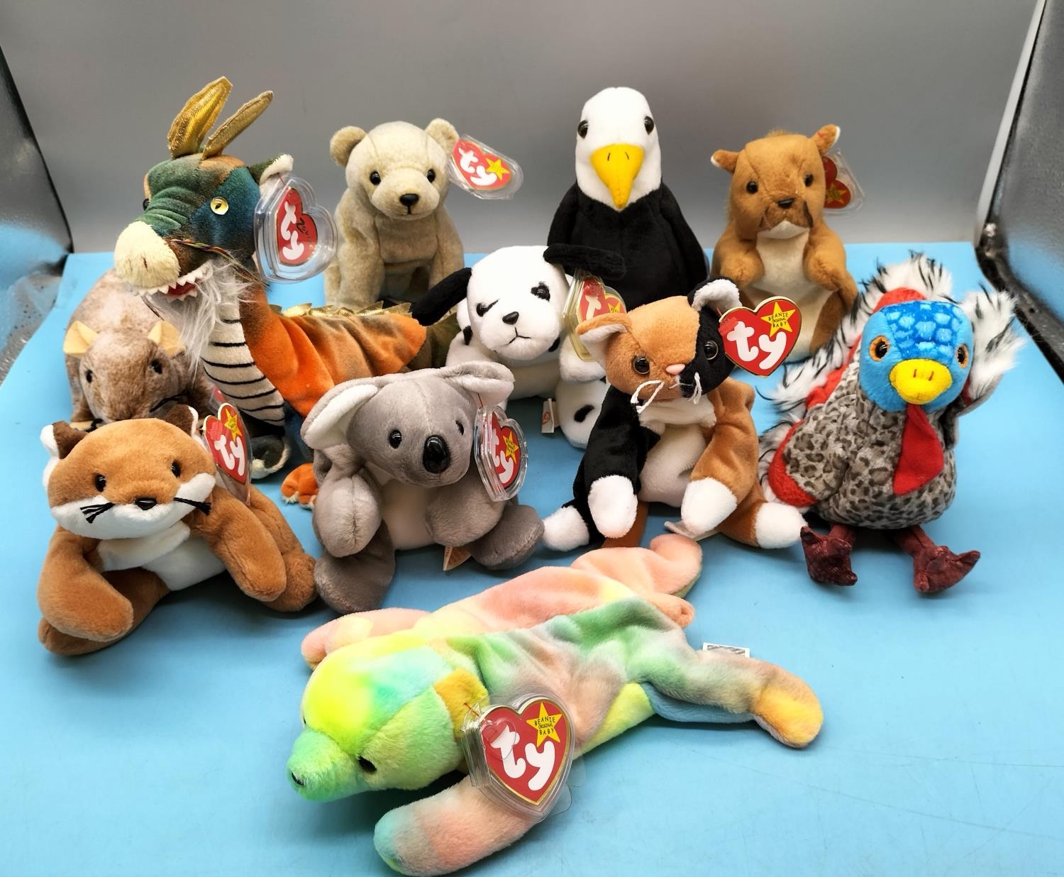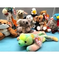 11 x TY Beanie Babies to include Sammy, Lurkey, Dragon, Dotty, Chip, Tiptoe, etc.