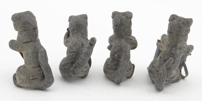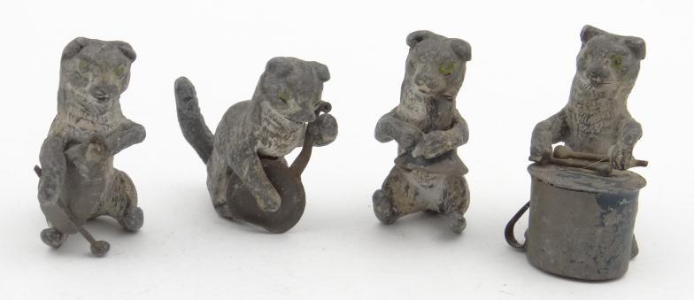 Four cast metal novelty dog musicians, each 4cm high